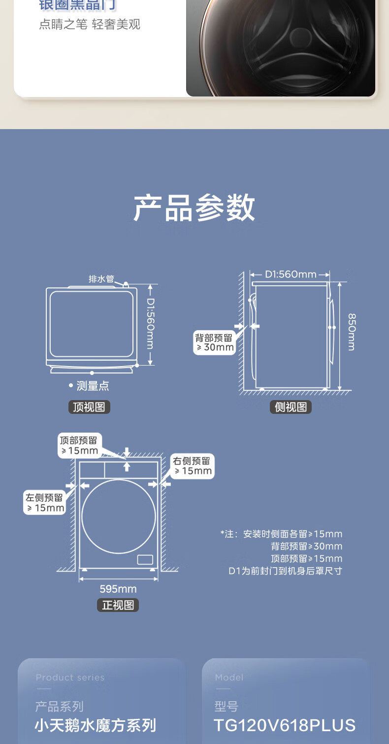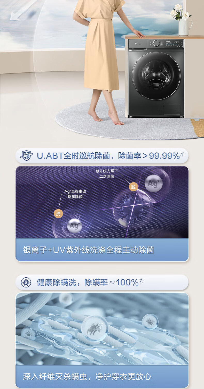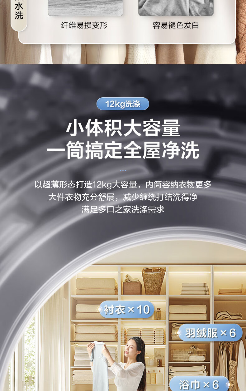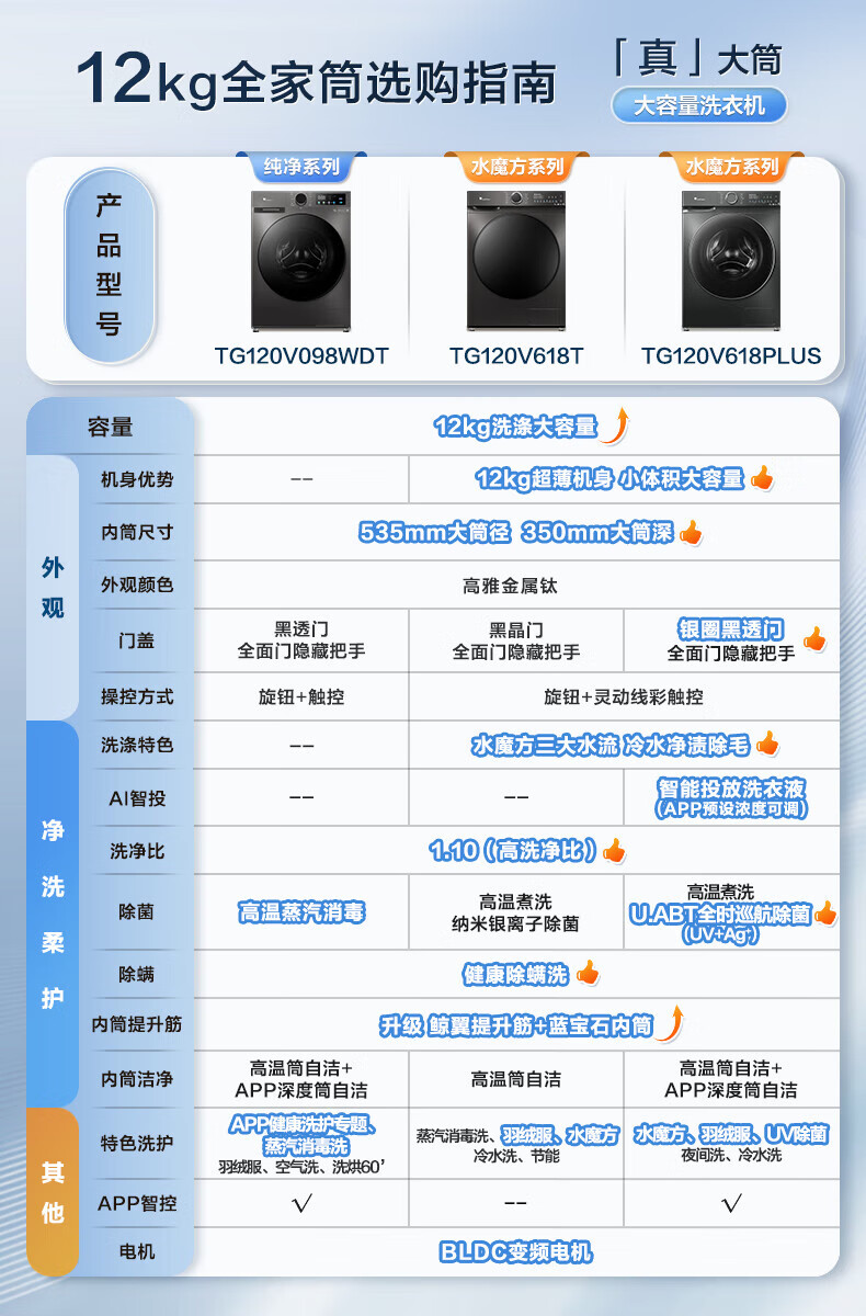 小天鹅(LittleSwan)12公斤大容量滚筒洗衣机全自动 水魔方护色护形 全时巡航除菌 1.1洗净比国家补贴20%一级能效 TG120V618PLUS