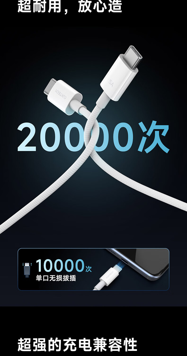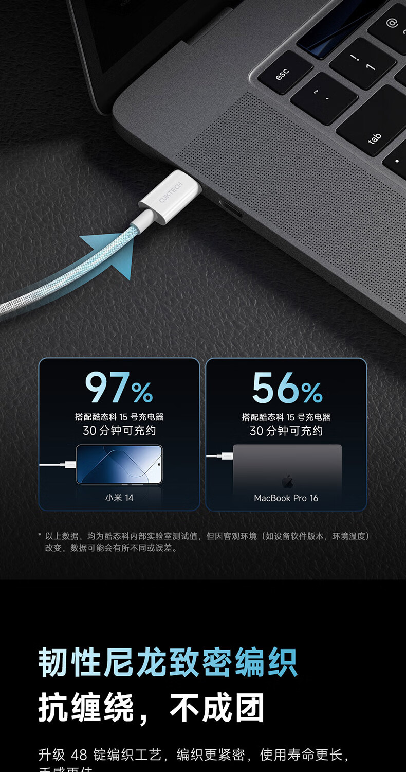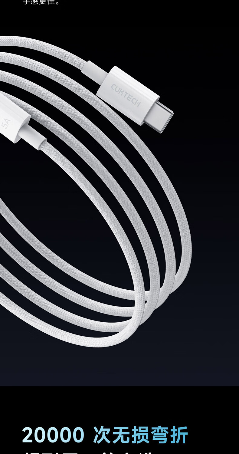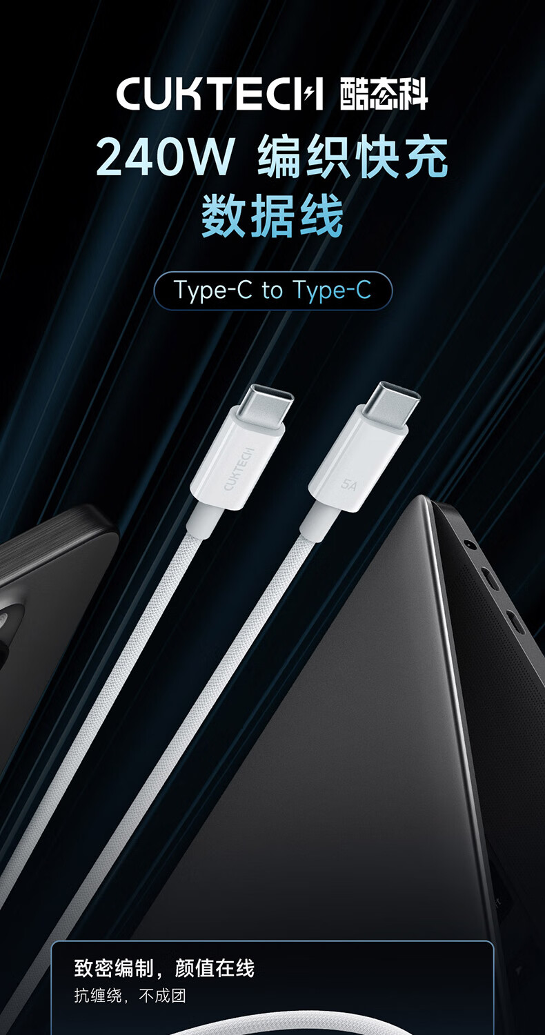 CUKTECH酷态科苹果17充电线type-c数据线240W大功率PD3.1快充5A高速数据传输ctoc编织适用iPhone16/15小米