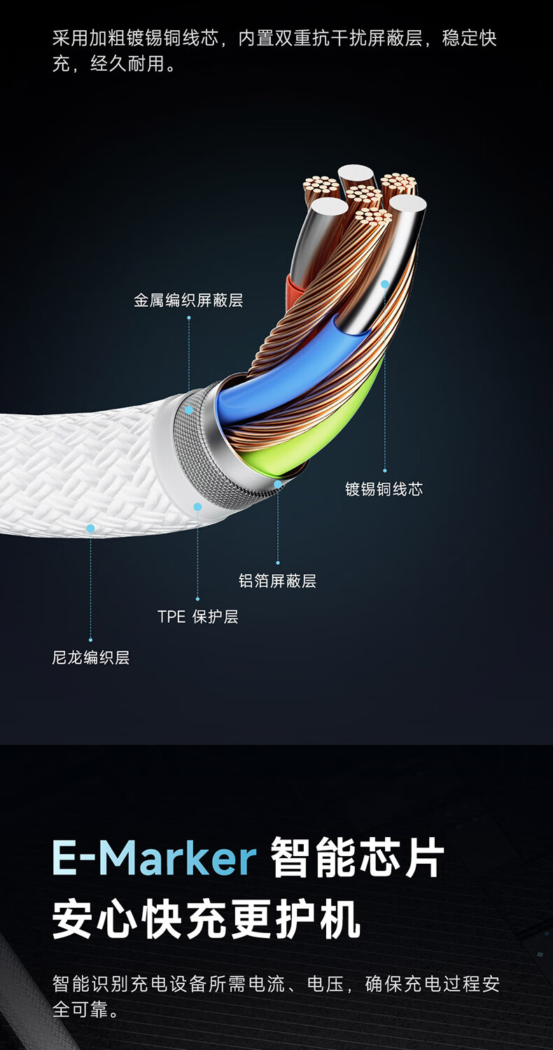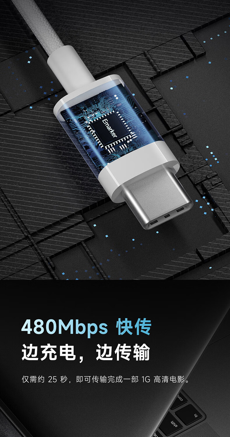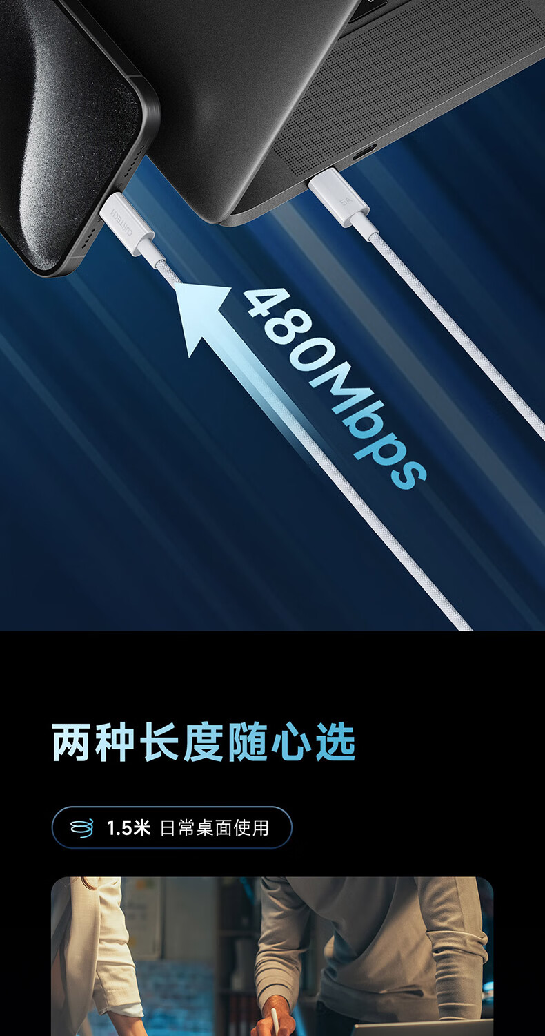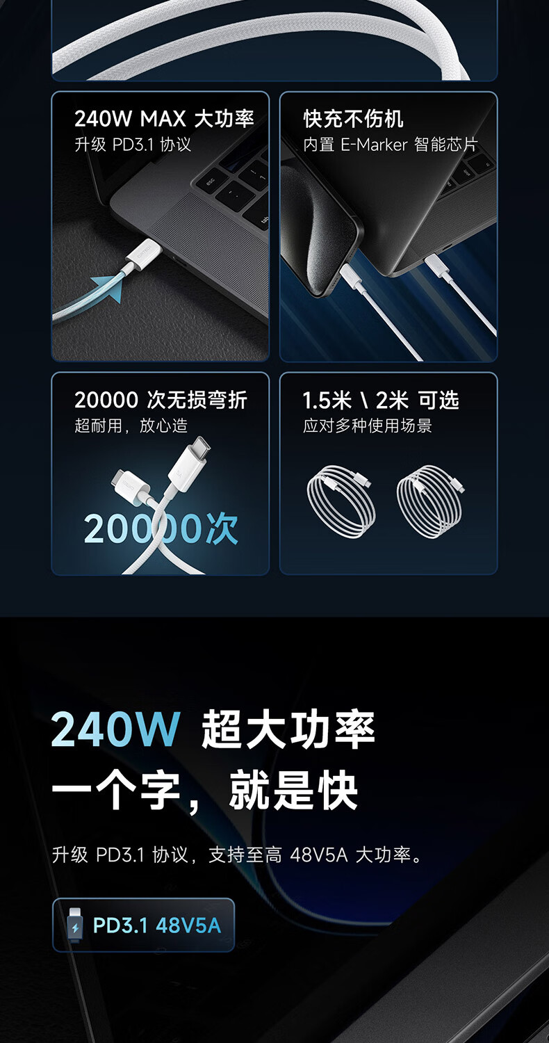 CUKTECH酷态科苹果17充电线type-c数据线240W大功率PD3.1快充5A高速数据传输ctoc编织适用iPhone16/15小米