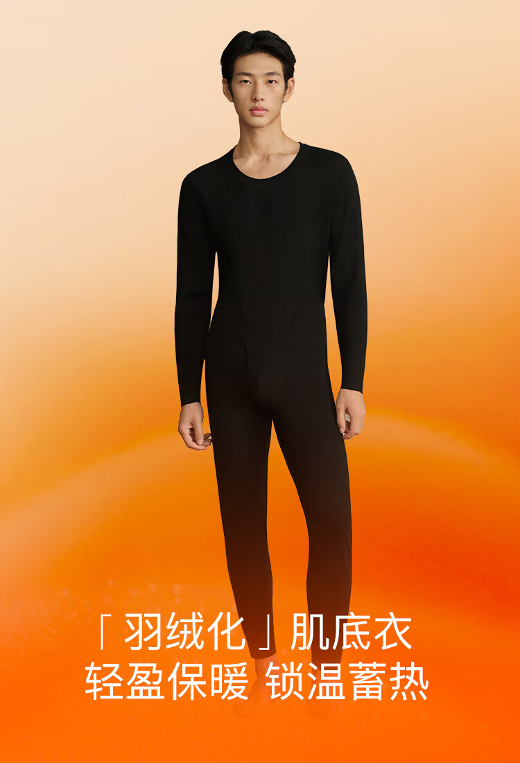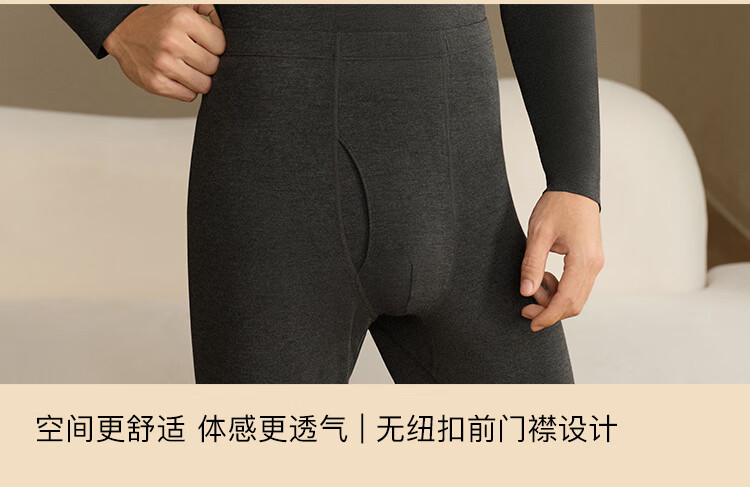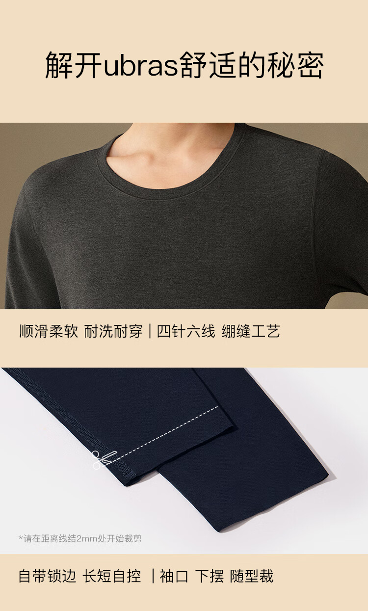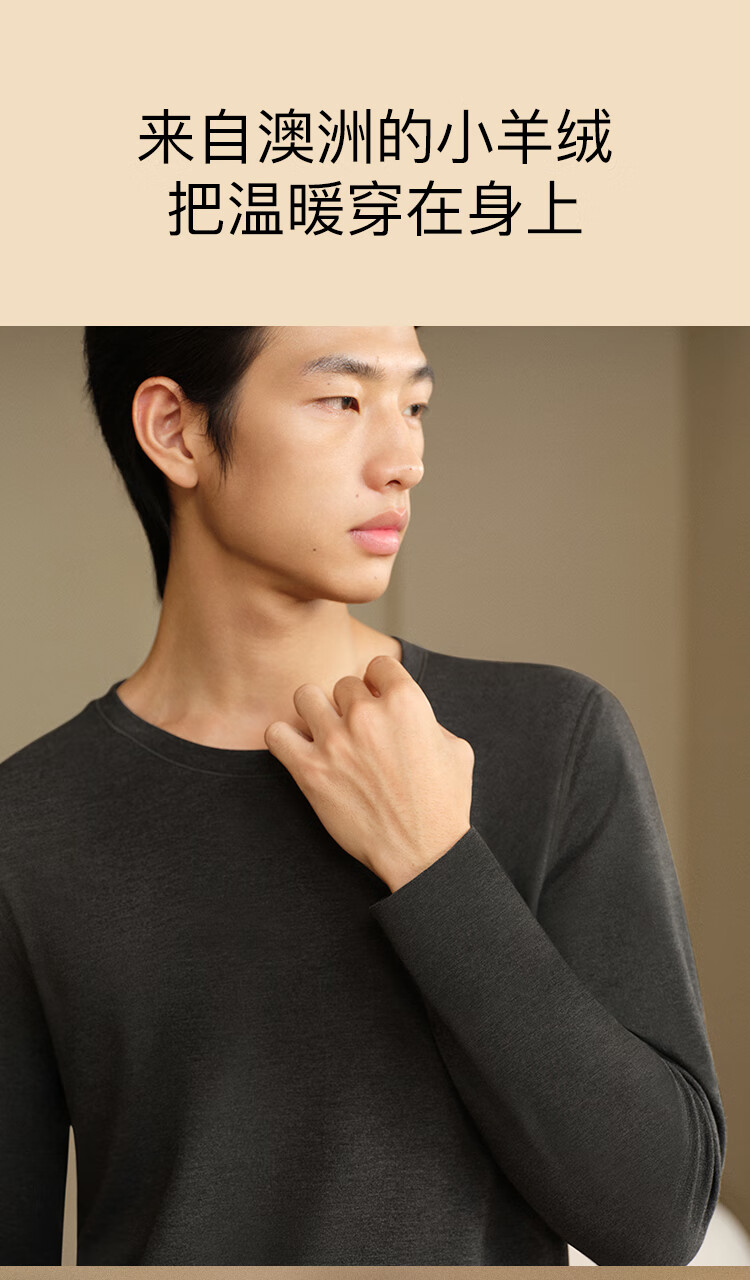 ubras羽绒化科技羊毛肌底衣保暖套装锁温打底衫男秋衣秋裤花深灰色倍暖