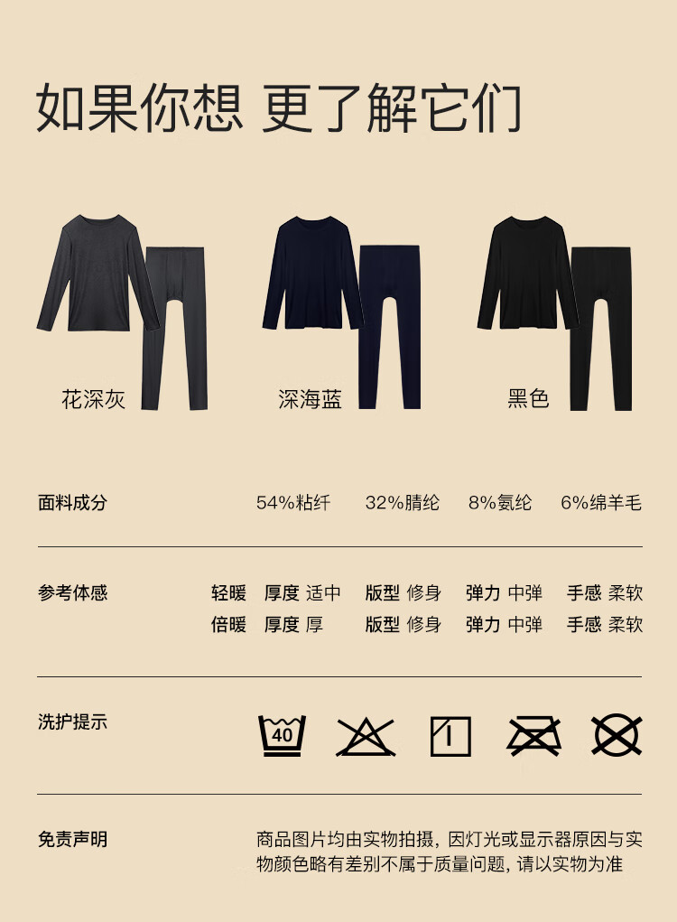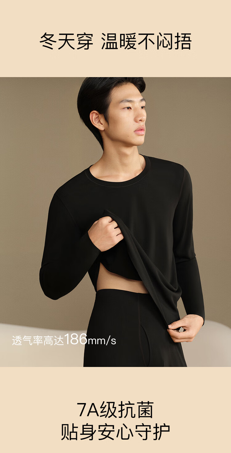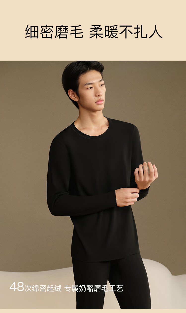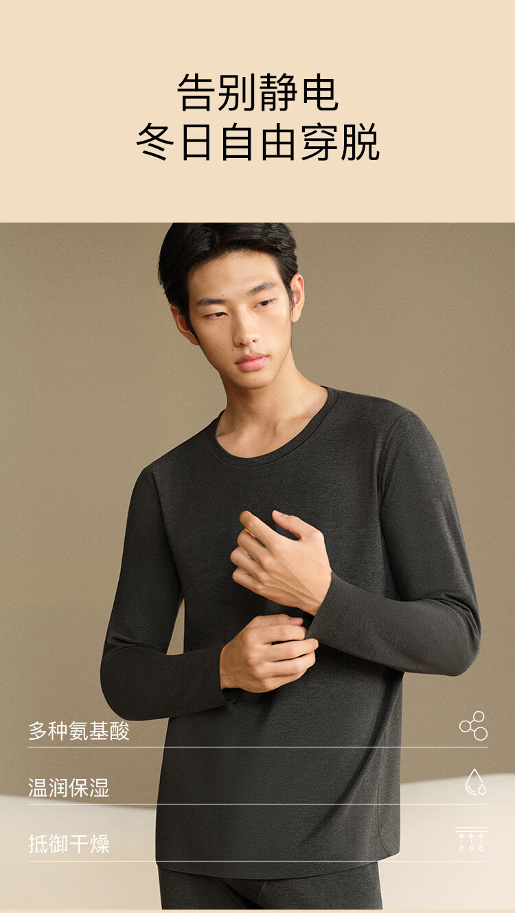 ubras羽绒化科技羊毛肌底衣保暖套装锁温打底衫男秋衣秋裤花深灰色倍暖