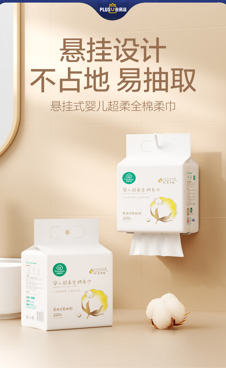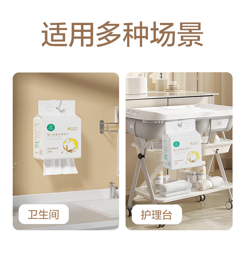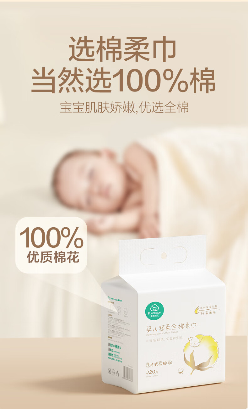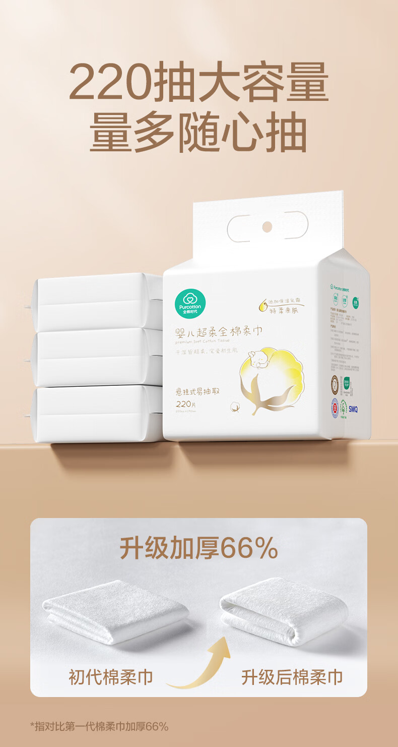 全棉时代【孙颖莎同款】婴儿棉柔巾洗脸巾纯棉悬挂乳霜干湿两用 220抽*2包