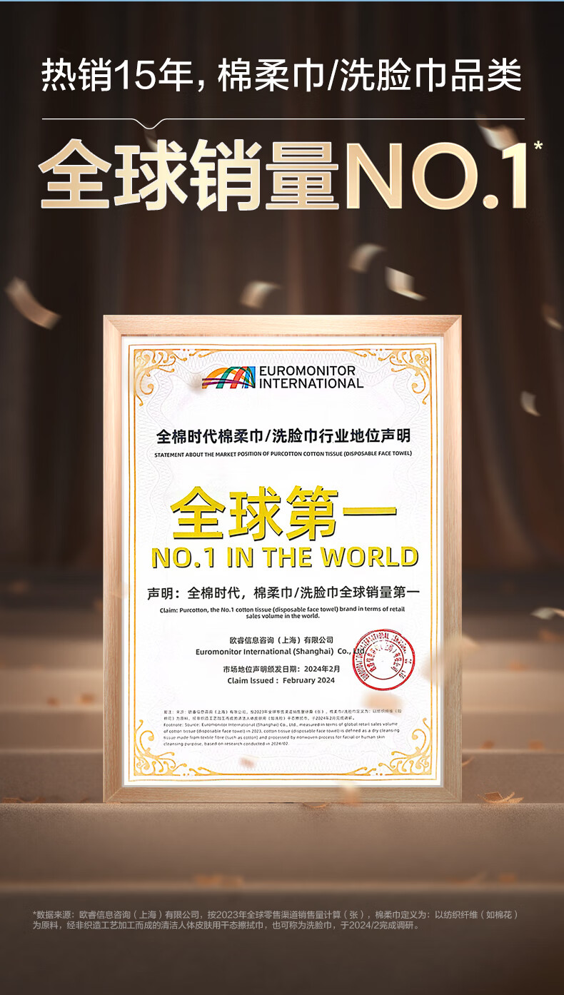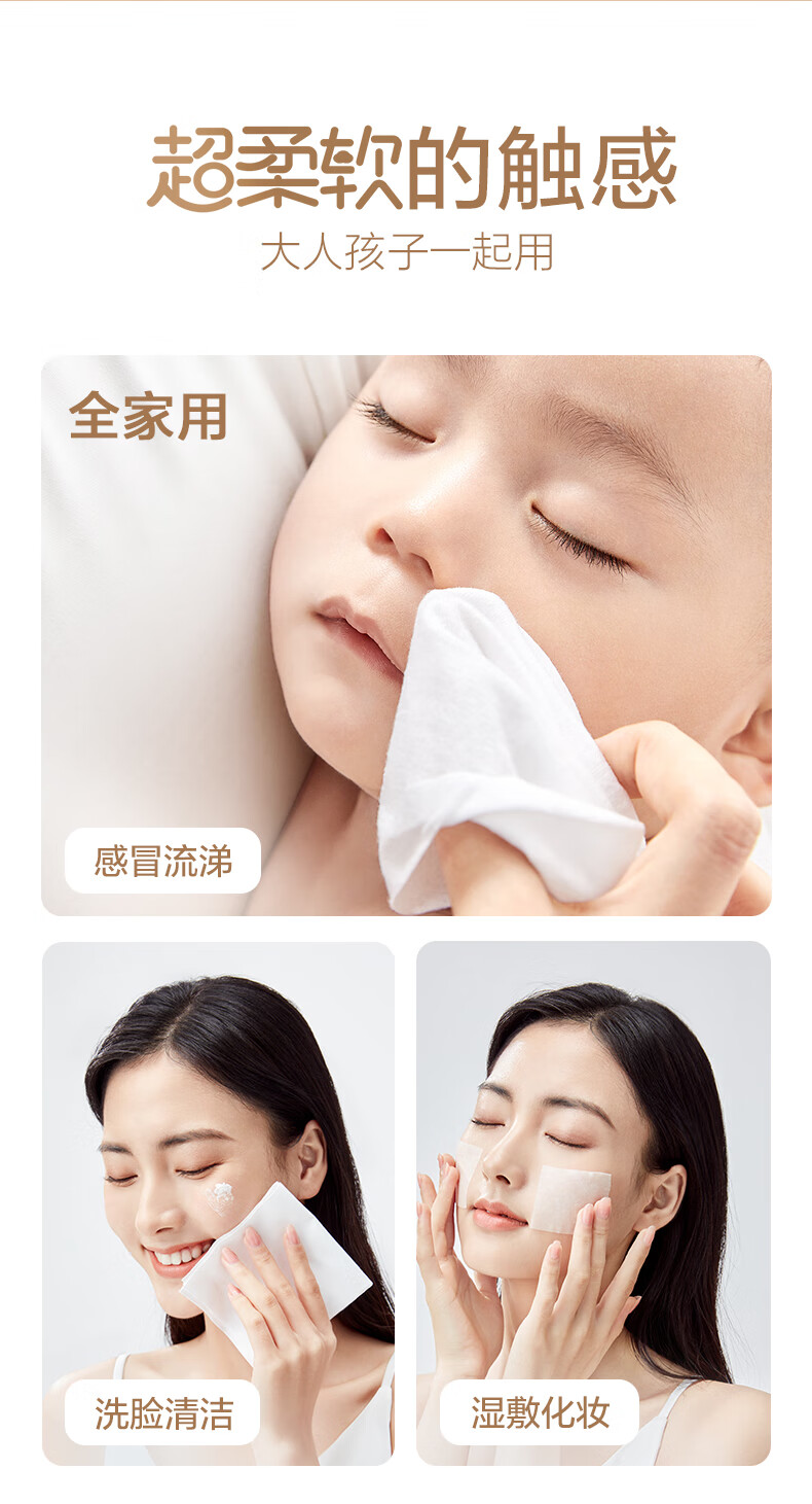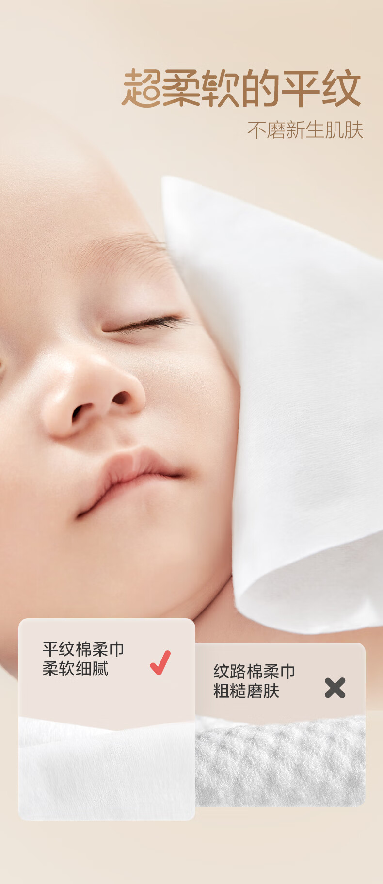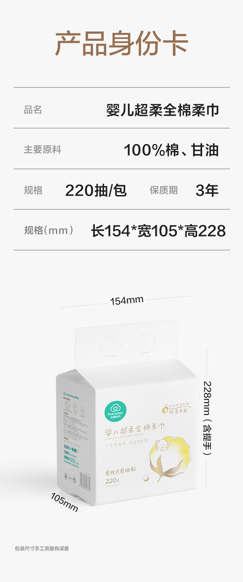 全棉时代【孙颖莎同款】婴儿棉柔巾洗脸巾纯棉悬挂乳霜干湿两用 220抽*2包