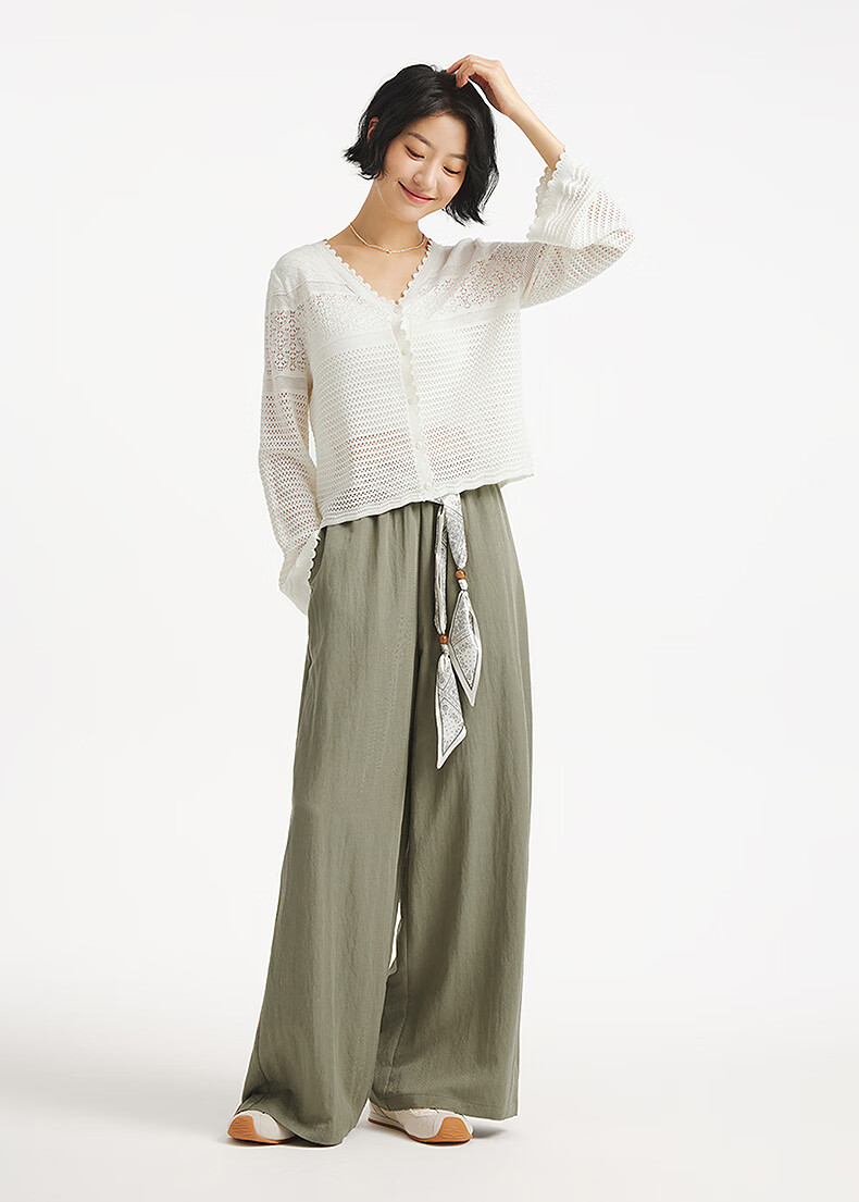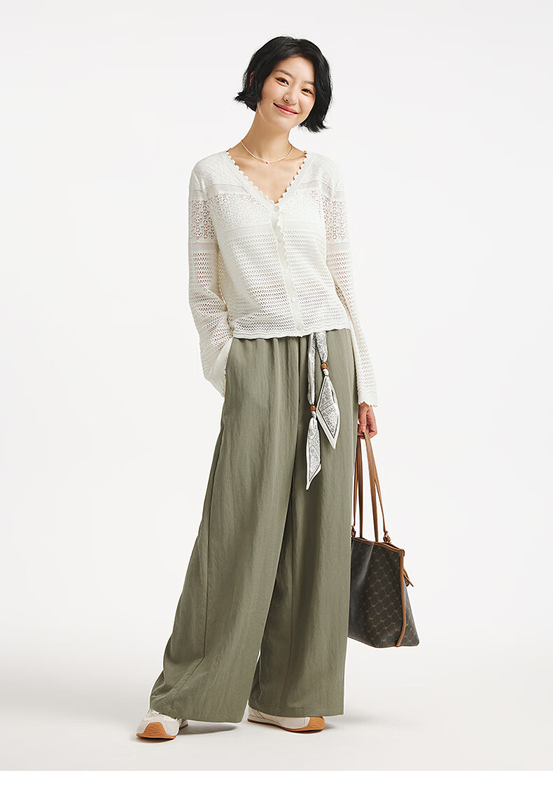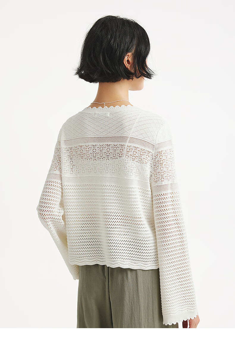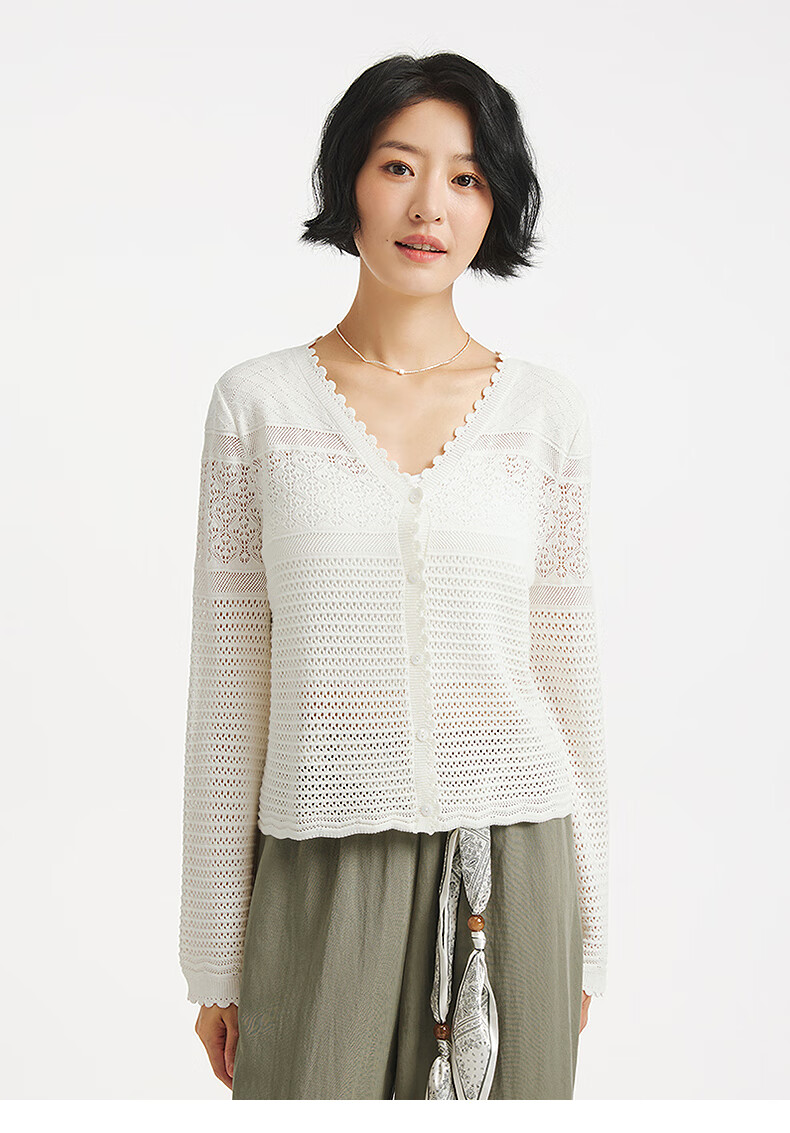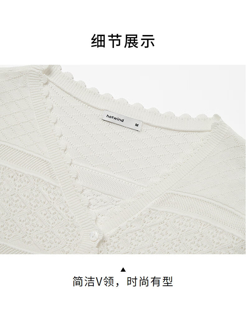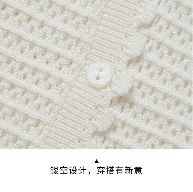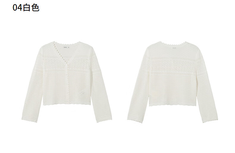 热风【商场同款】女士罩衫上衣2025年秋新款度假镂空微透钩针针织开衫 04白色 S
