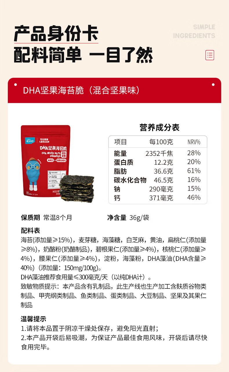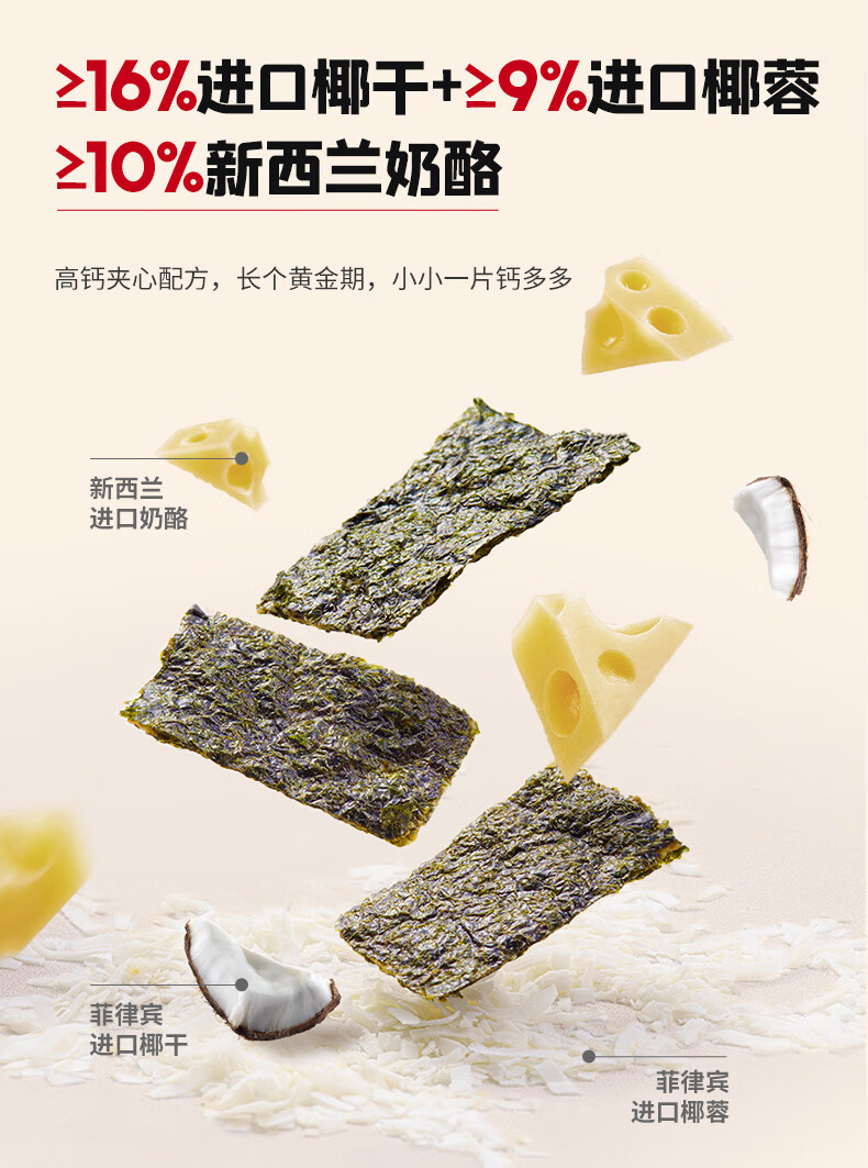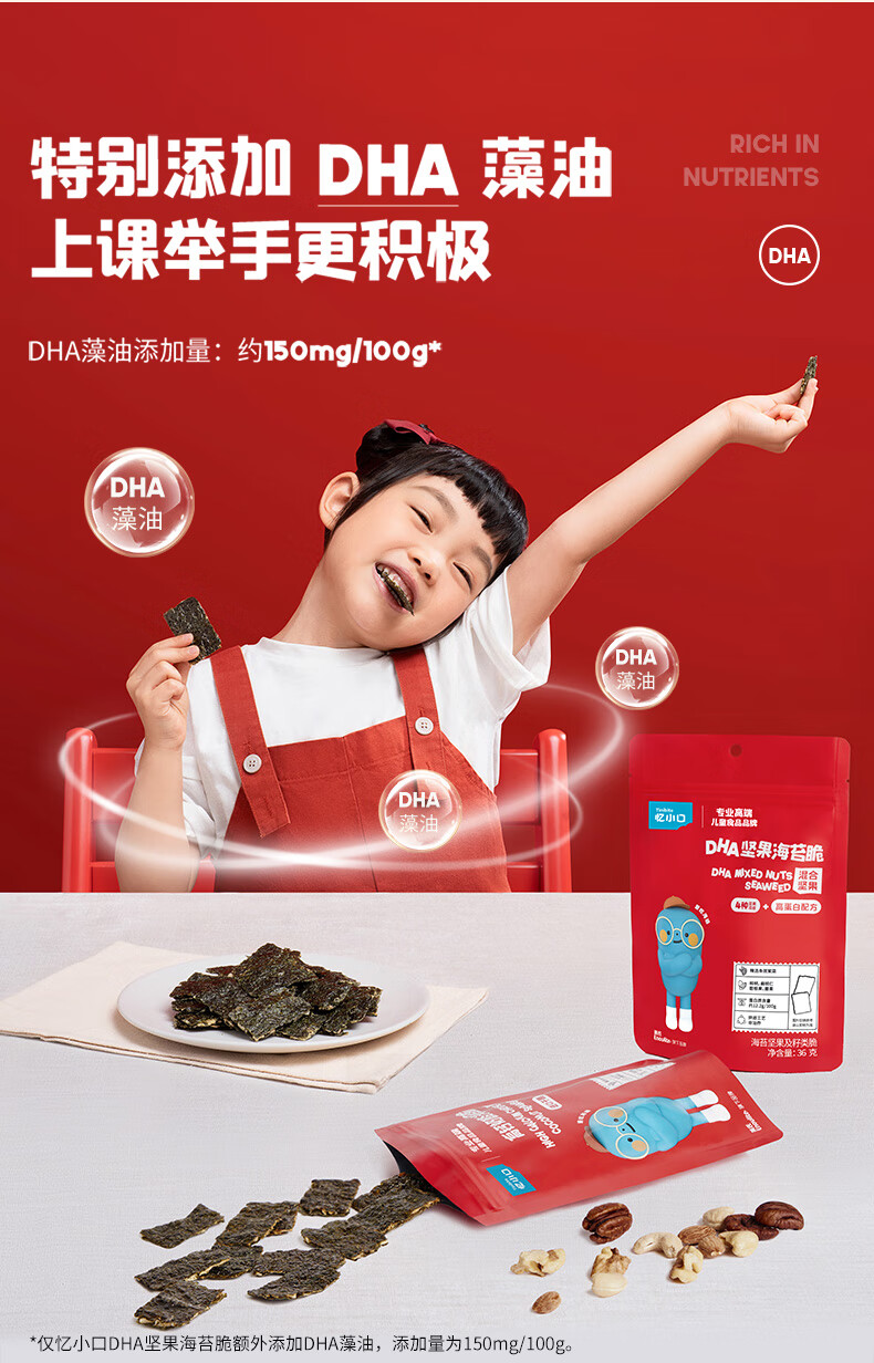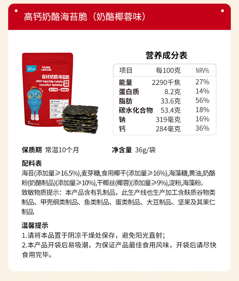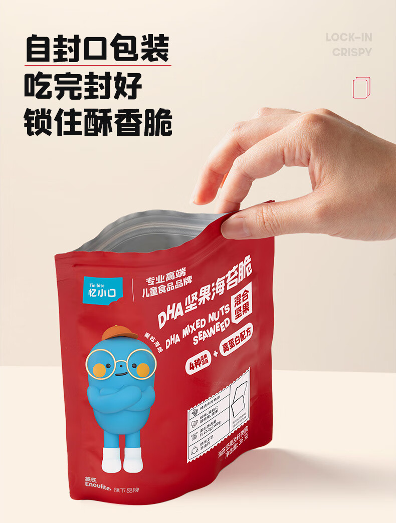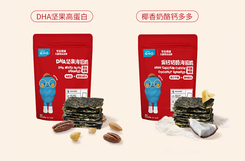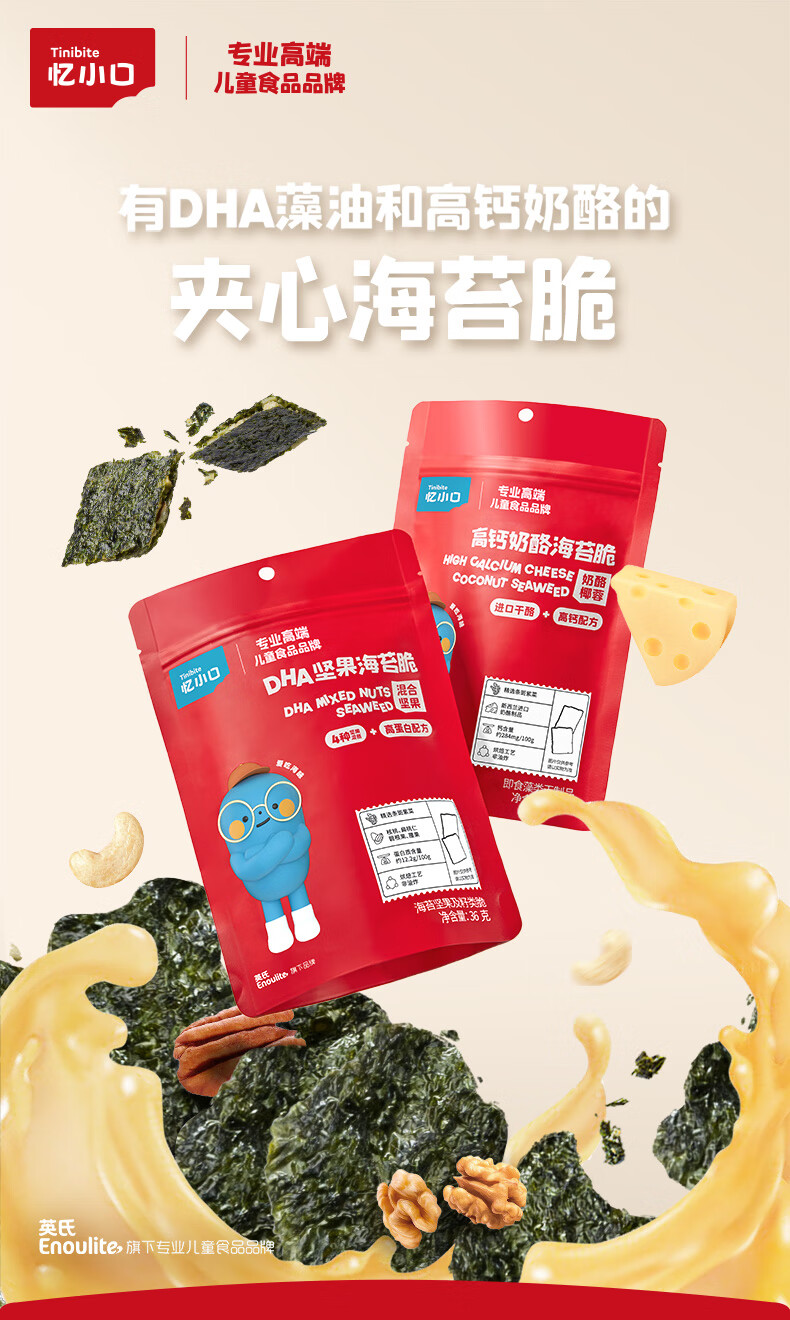 英氏(Engnice)忆小口儿童零食夹心海苔脆高钙奶酪海苔即食零食海苔碎含DHA紫菜 【划算4袋】奶酪椰蓉2+混合坚果2
