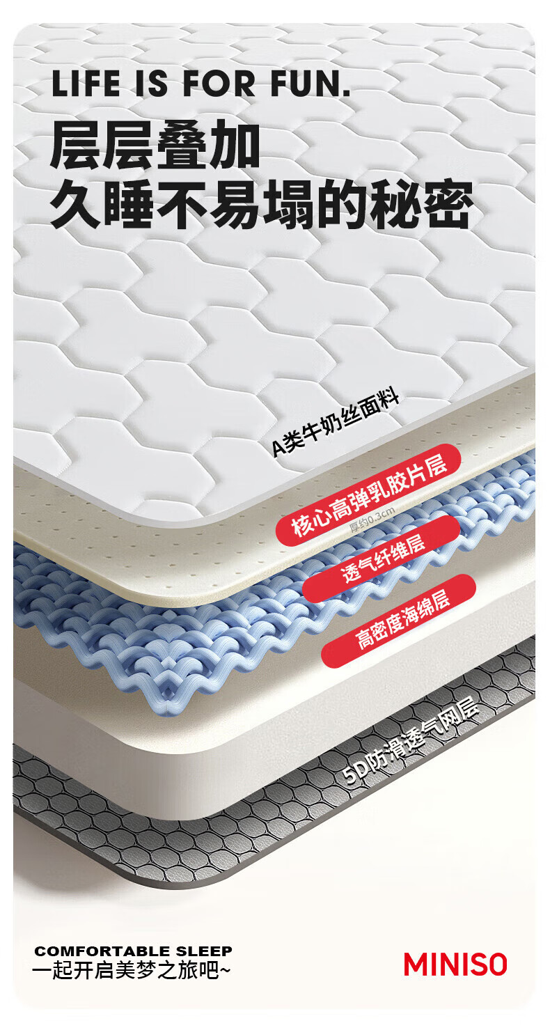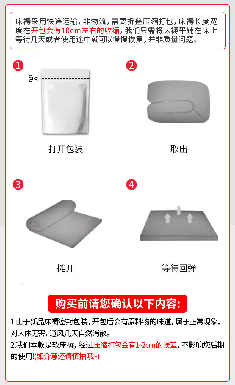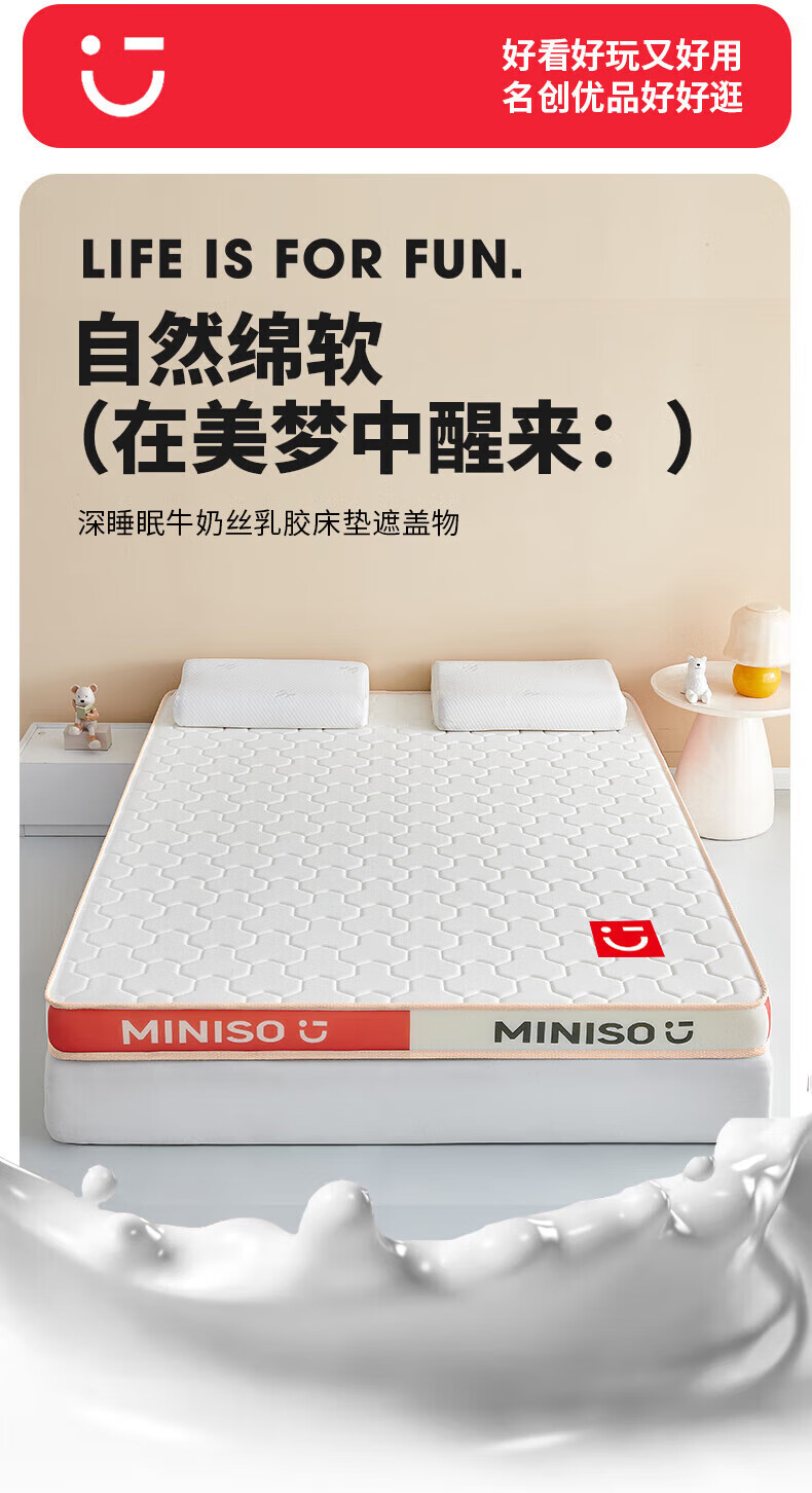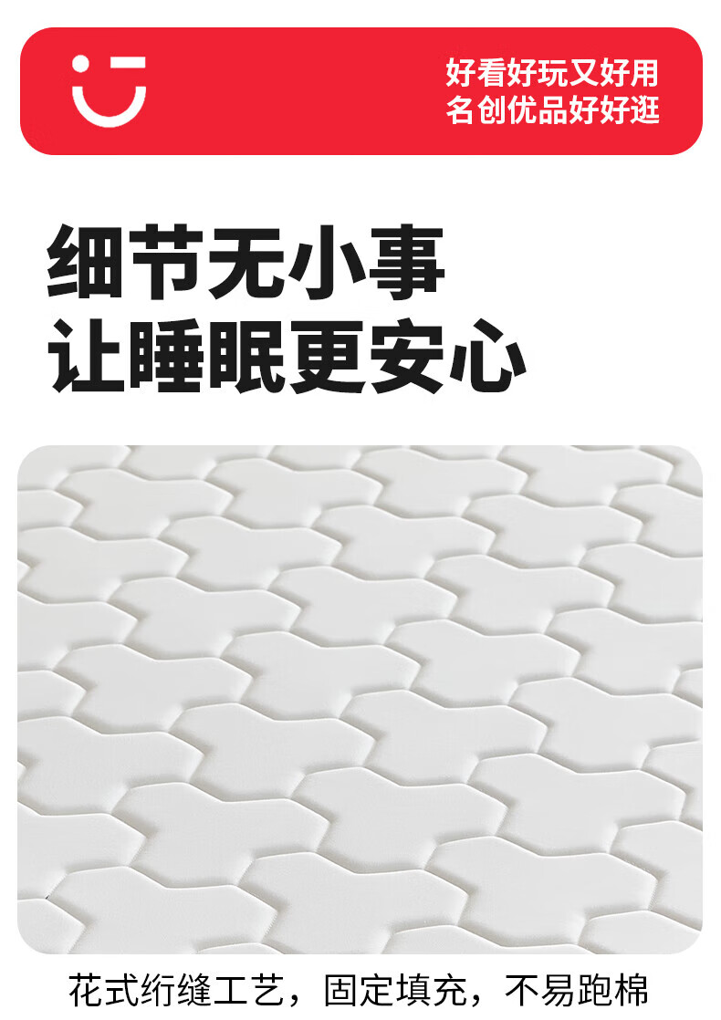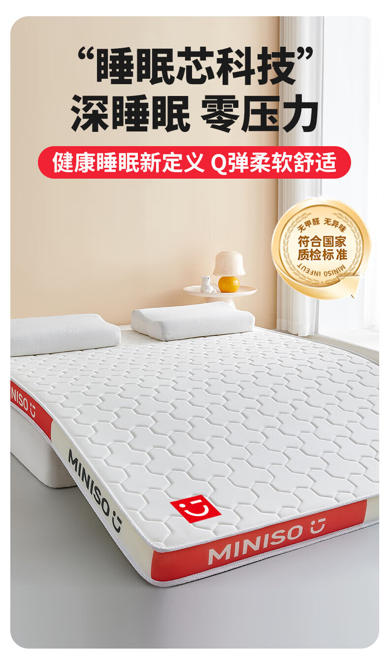 名创优品10cm加厚乳胶床垫遮盖物1.8x2米记忆海绵床褥软垫子单人学生宿舍 名创优品笑脸-红白【厚约10cm】 180cm*200cm-优质乳胶 塌陷包赔