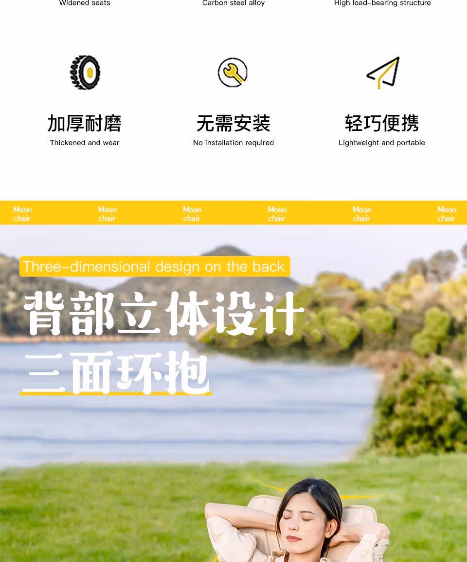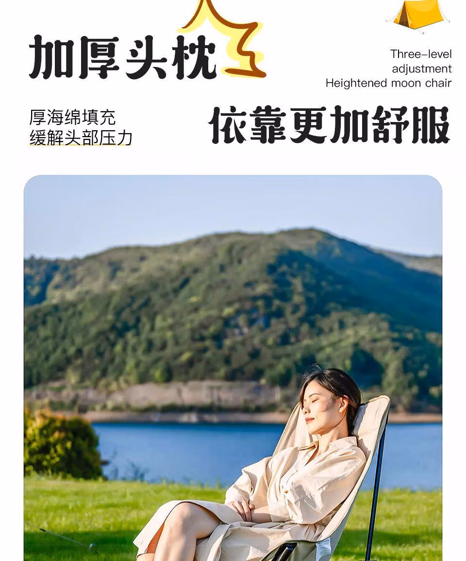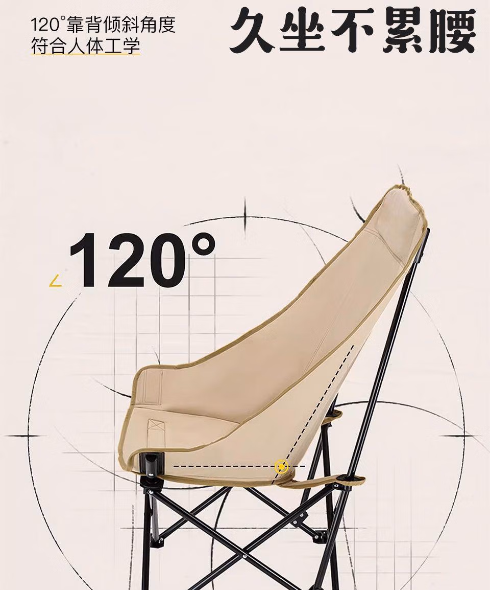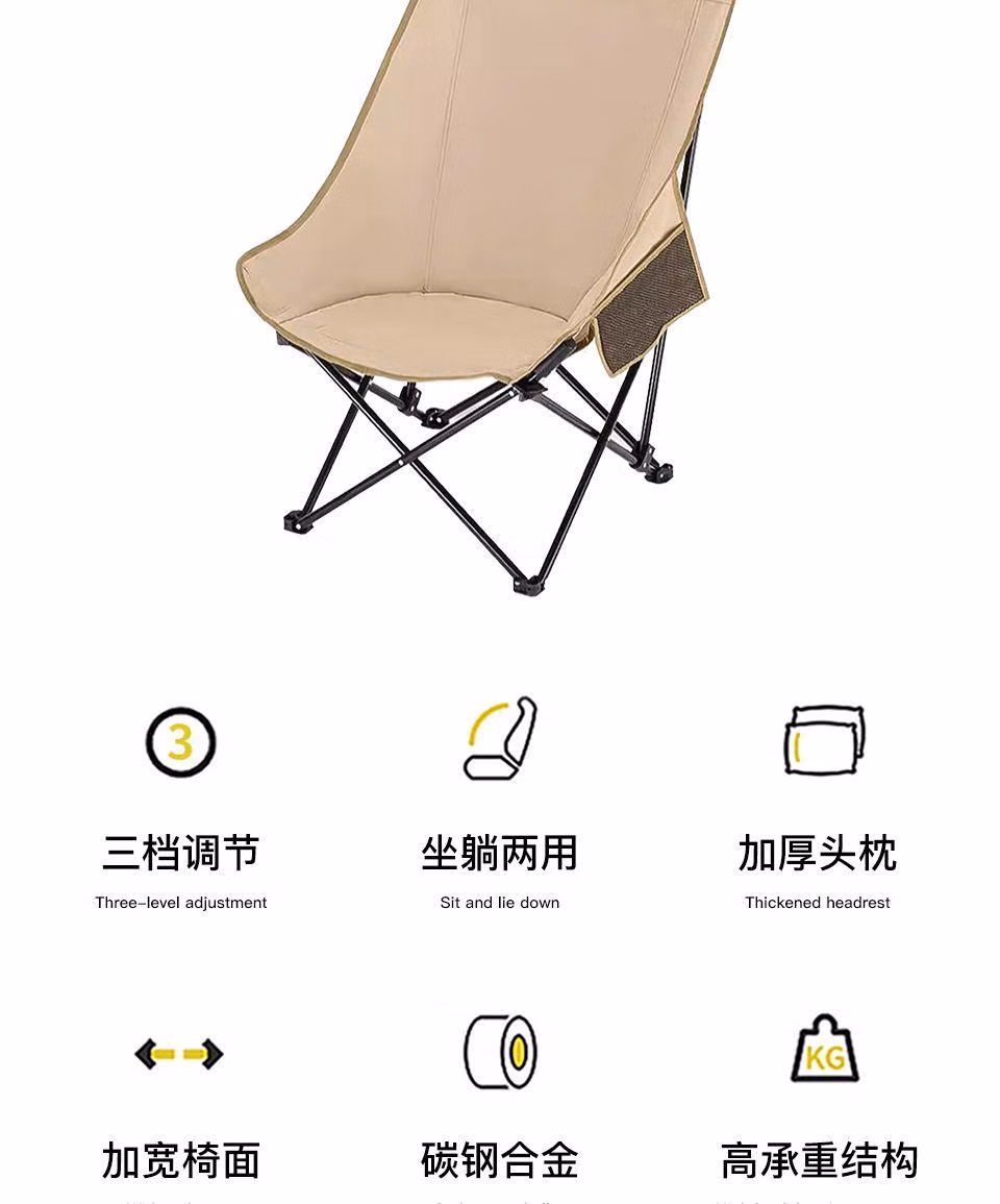 DEATKN德国高端户外折叠躺椅三档调节便携野餐露营椅月亮椅 碳钢加厚支架【承重400】洁【白】无暇