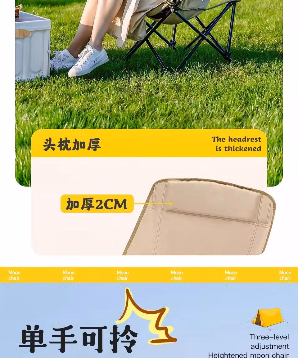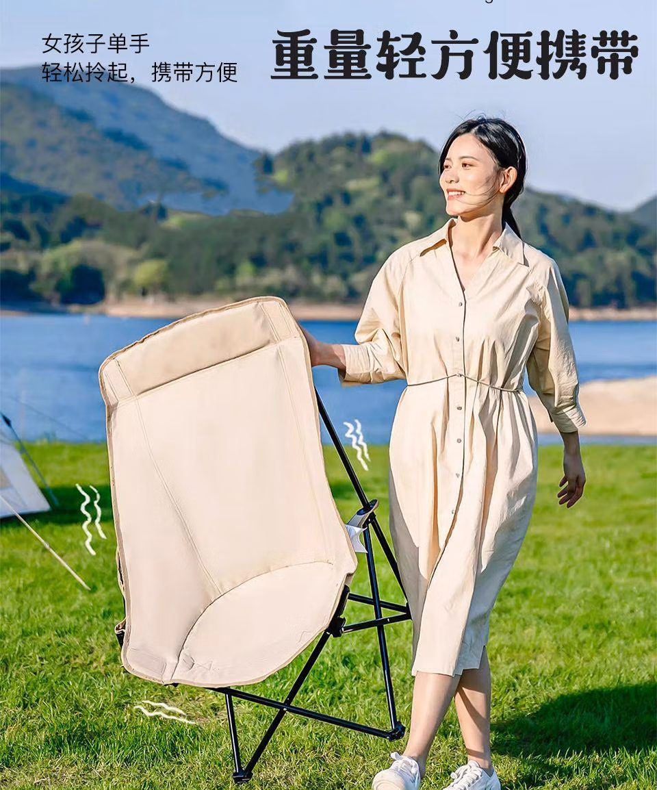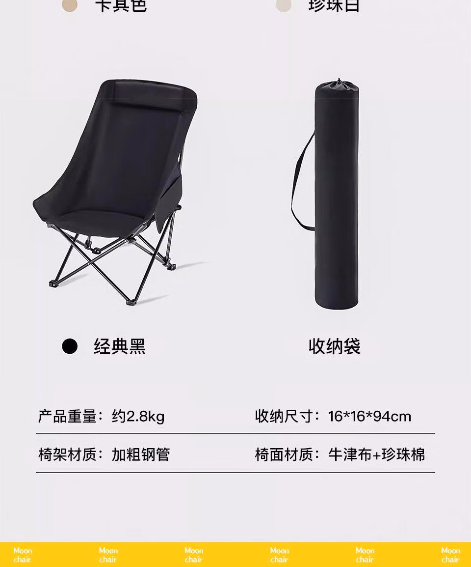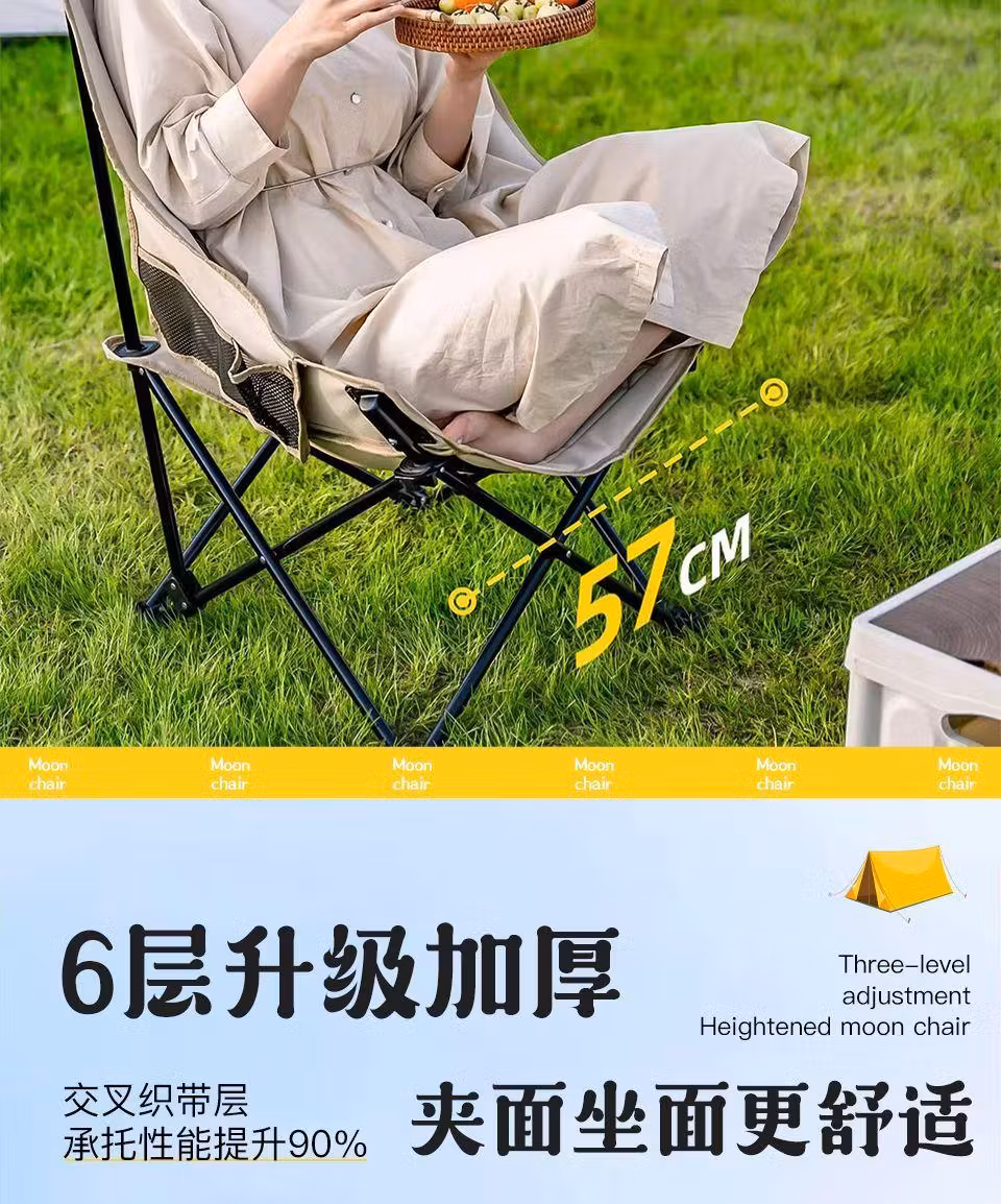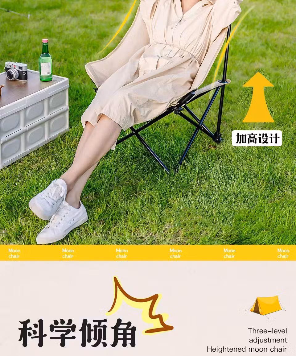 DEATKN德国高端户外折叠躺椅三档调节便携野餐露营椅月亮椅 碳钢加厚支架【承重400】洁【白】无暇