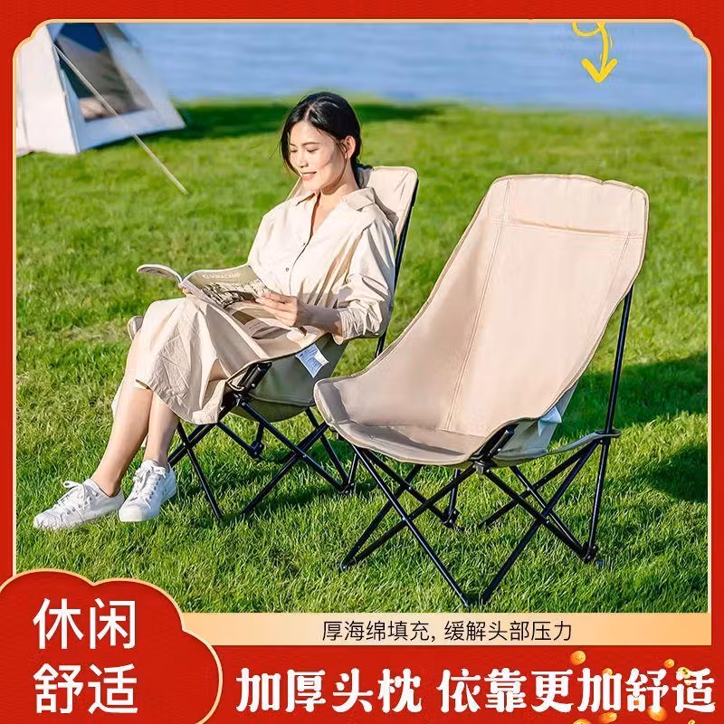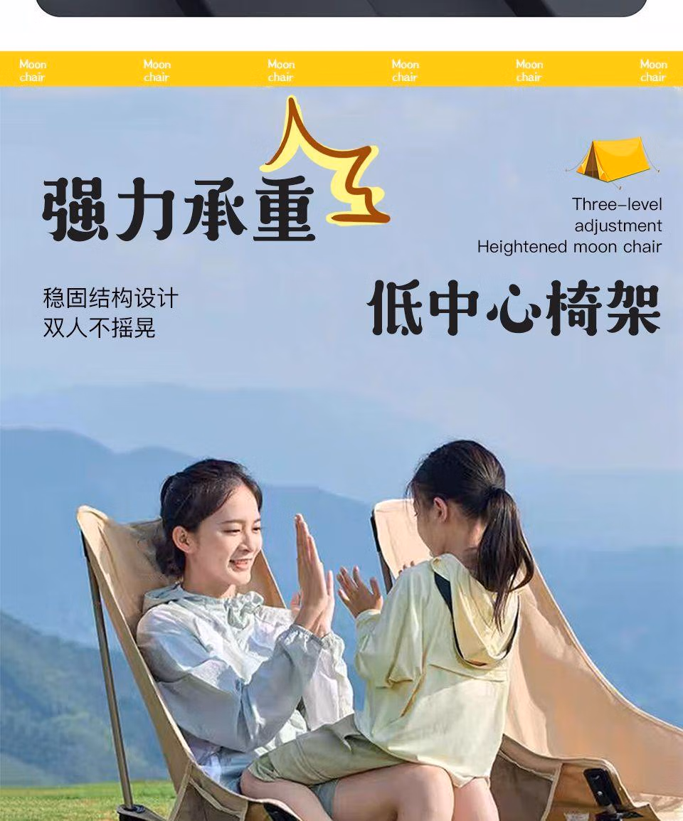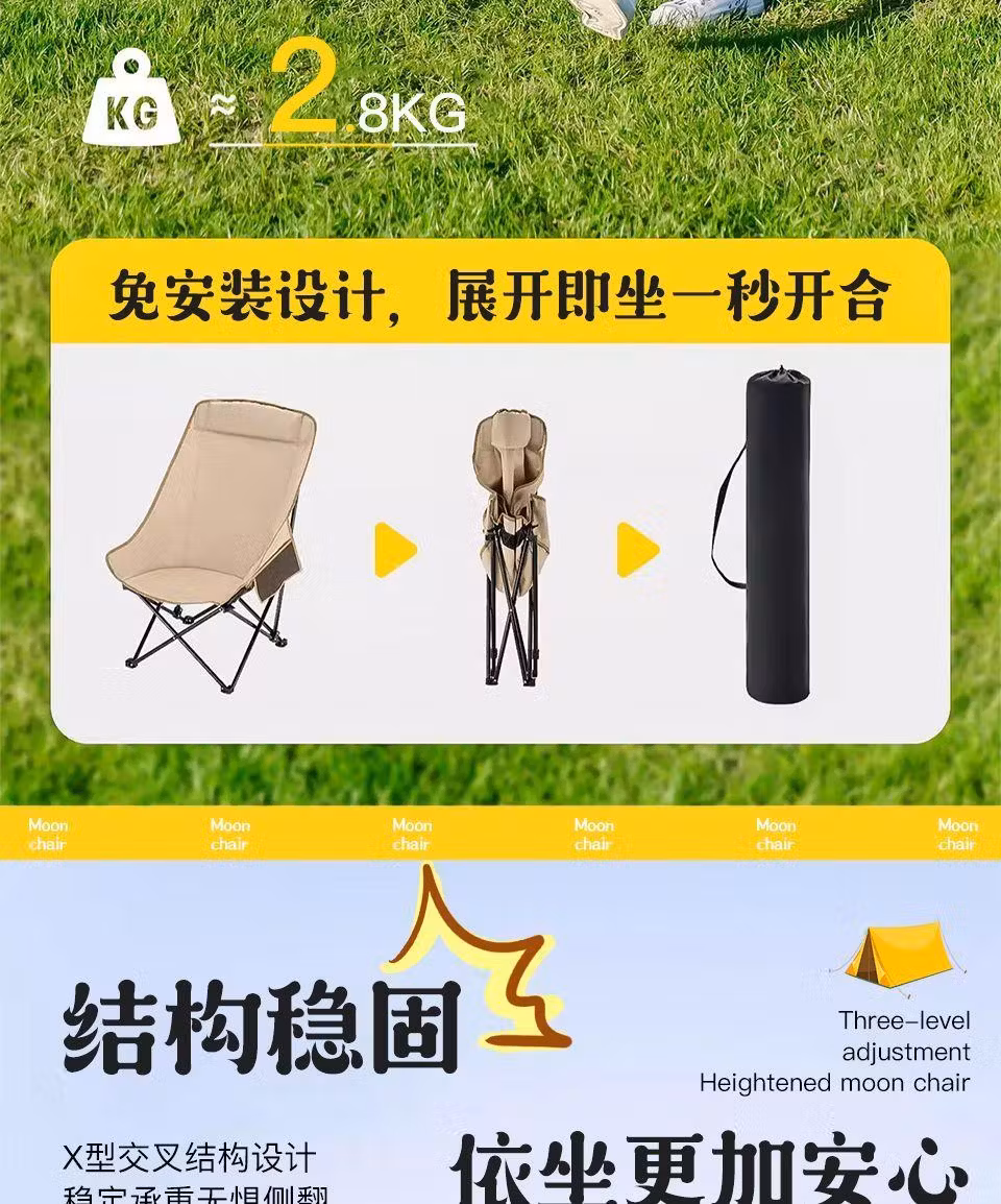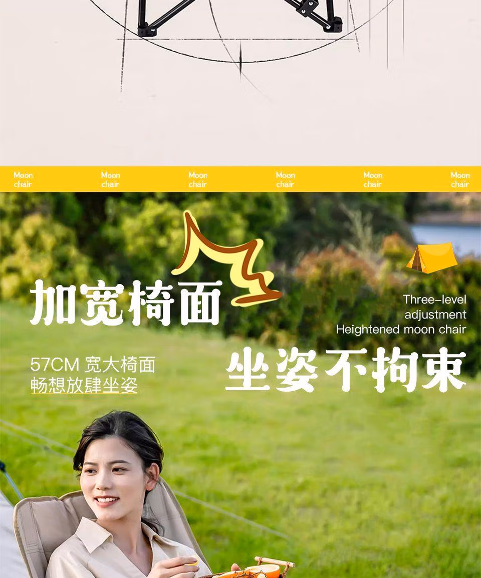 DEATKN德国高端户外折叠躺椅三档调节便携野餐露营椅月亮椅 碳钢加厚支架【承重400】洁【白】无暇