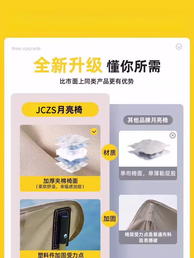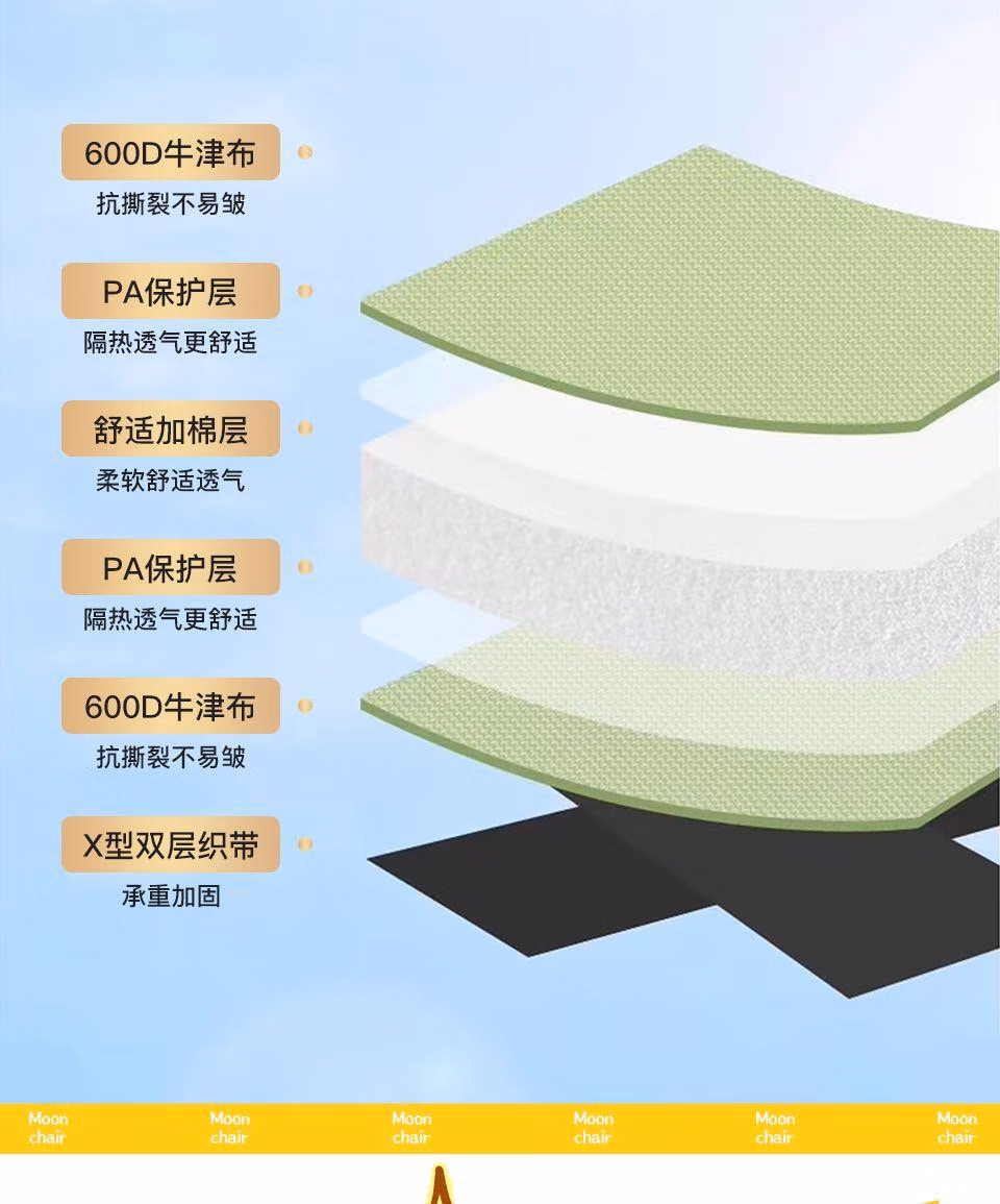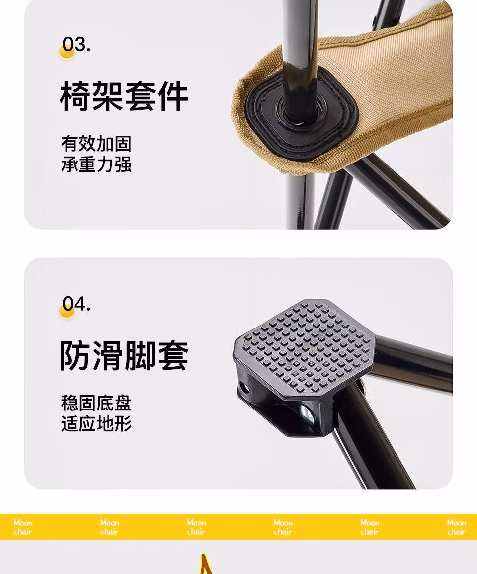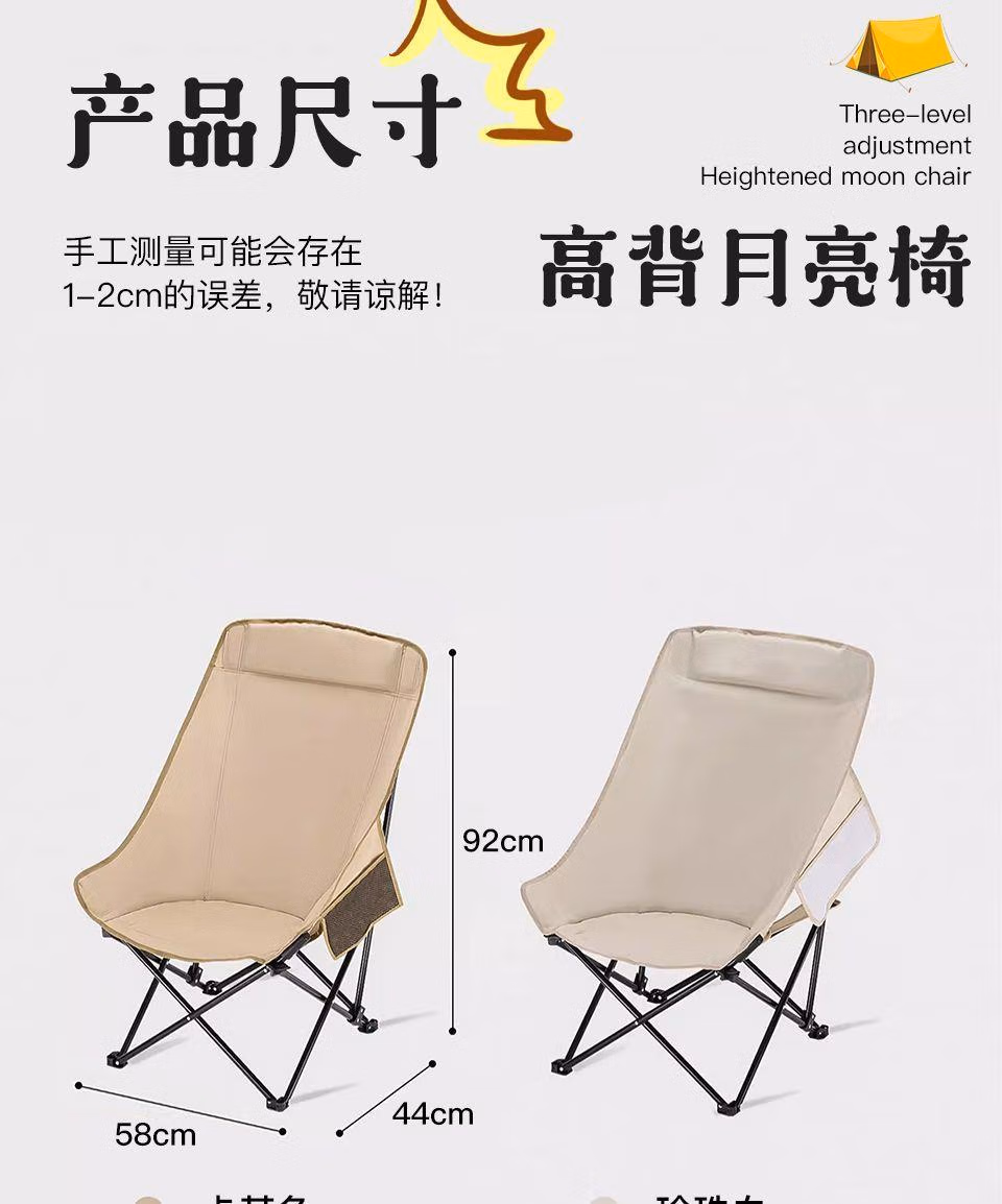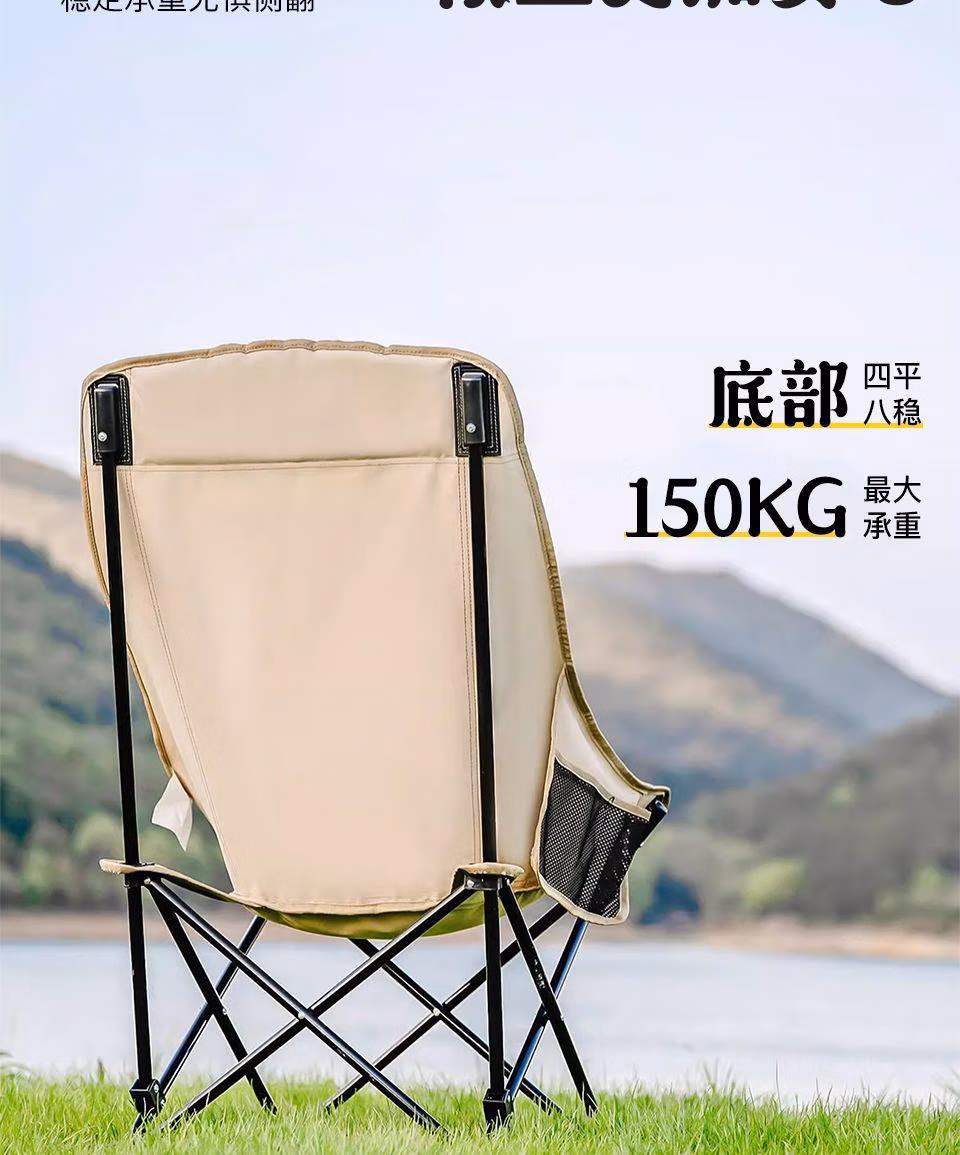 DEATKN德国高端户外折叠躺椅三档调节便携野餐露营椅月亮椅 碳钢加厚支架【承重400】洁【白】无暇