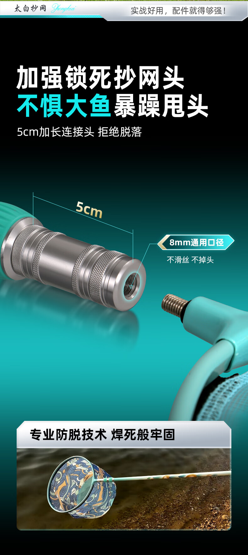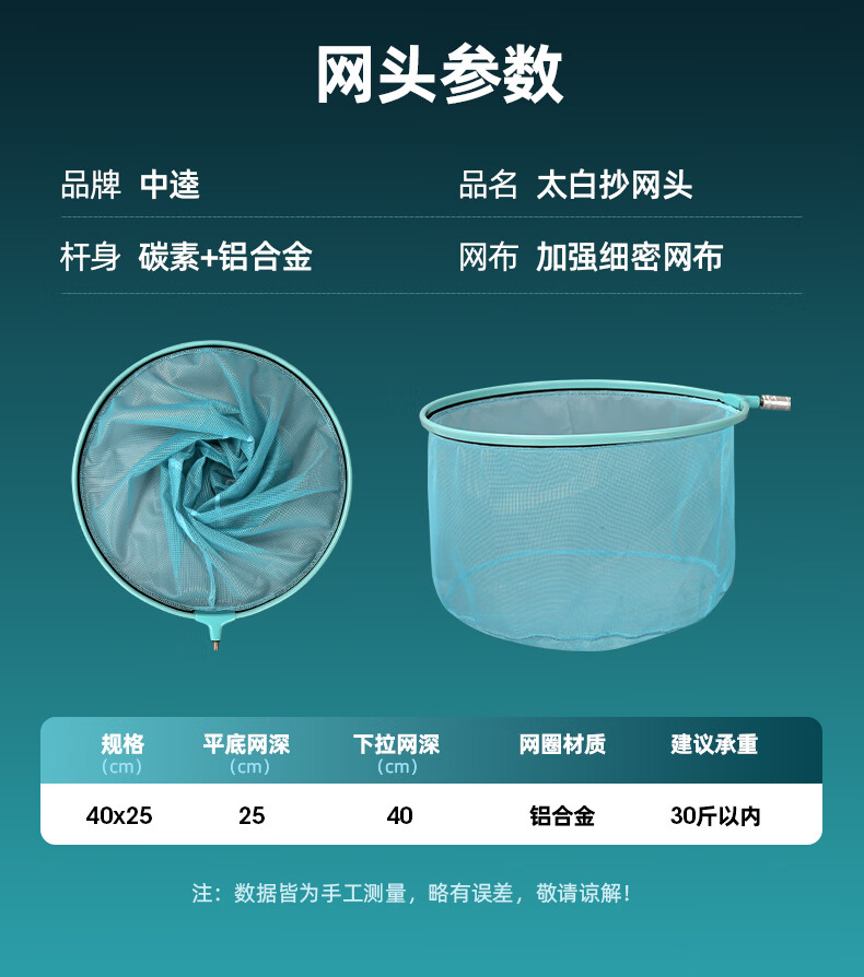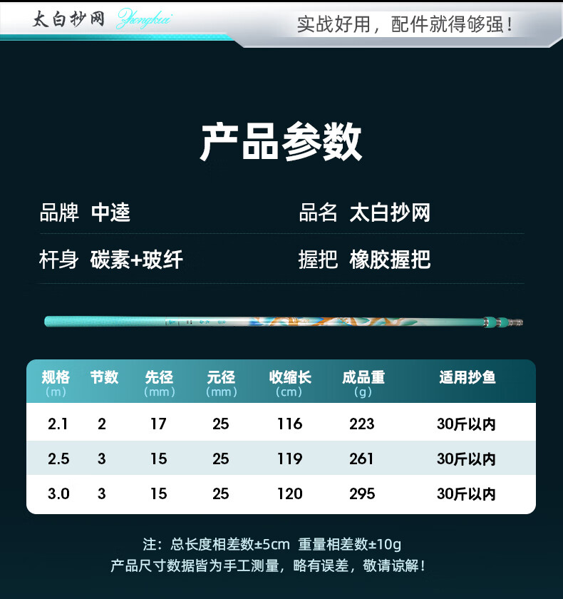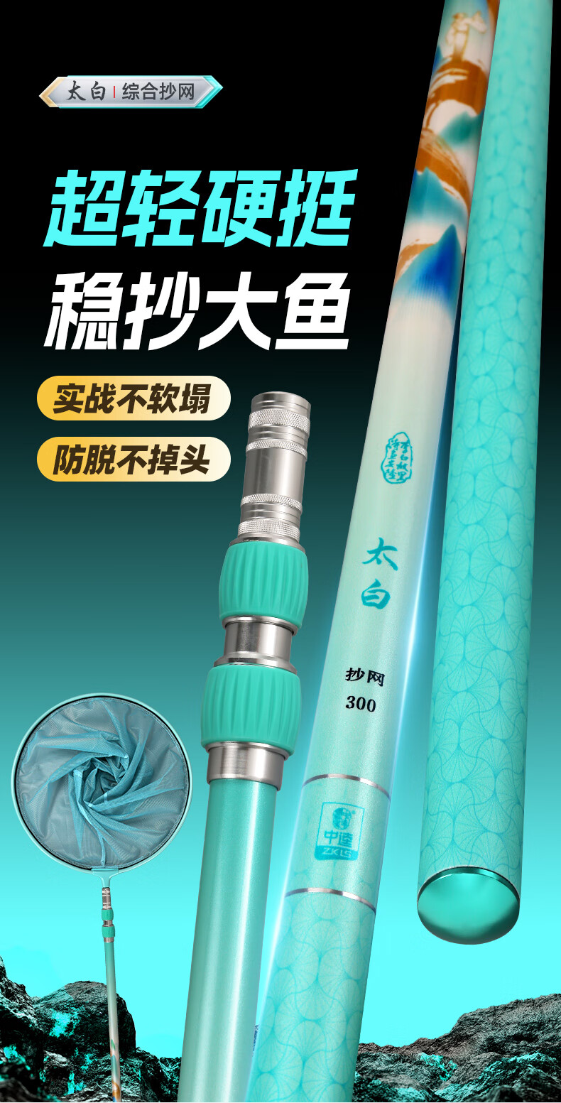 中逵太白超轻碳素伸缩杆一体抄网竿大物抄鱼竿 2.1m 套装(杆子+40网头)