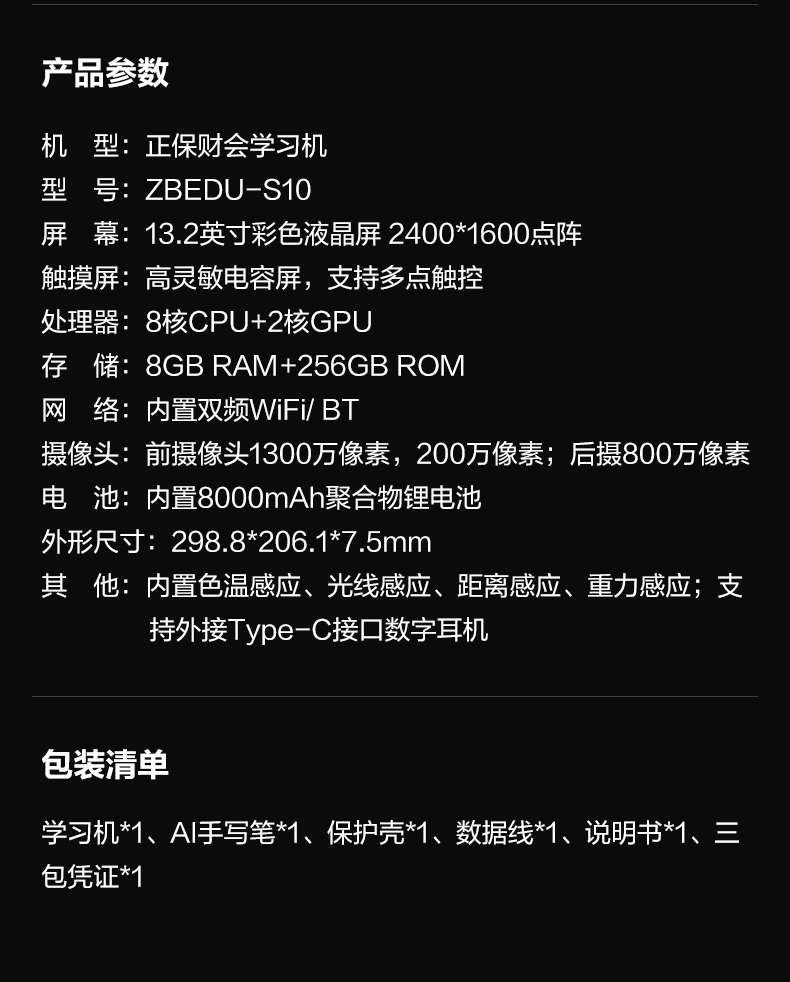 正保会计网校 财会学习机Z2 13.2大屏 256G大内存 初级中级注会cpa税务师高会实操 学练学习机