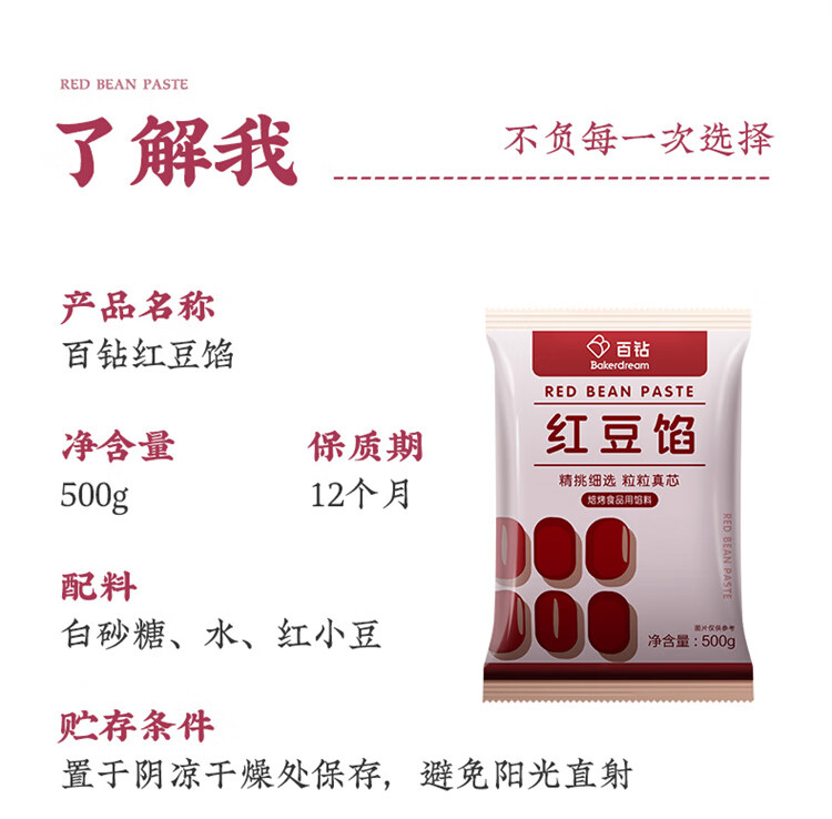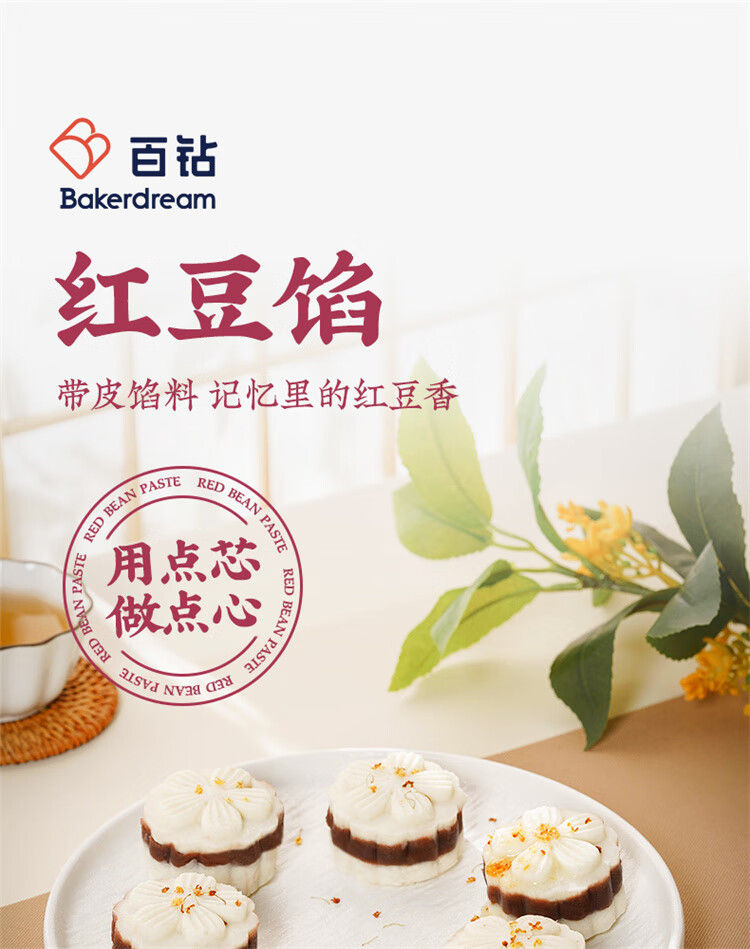 百钻红豆馅500g家用烘焙红豆沙泥粽子豆沙包面包驴打滚蛋黄酥原料