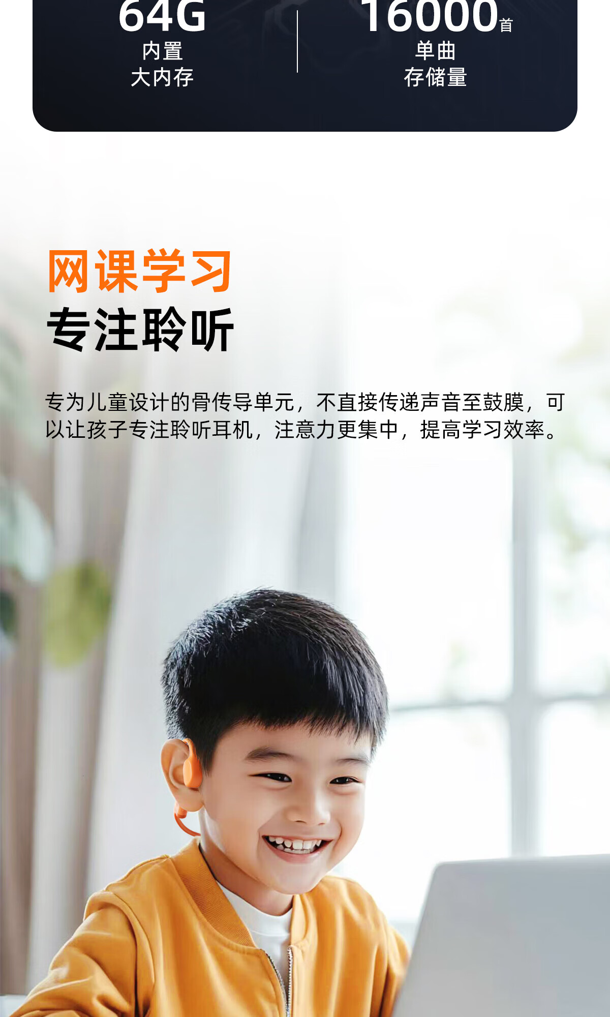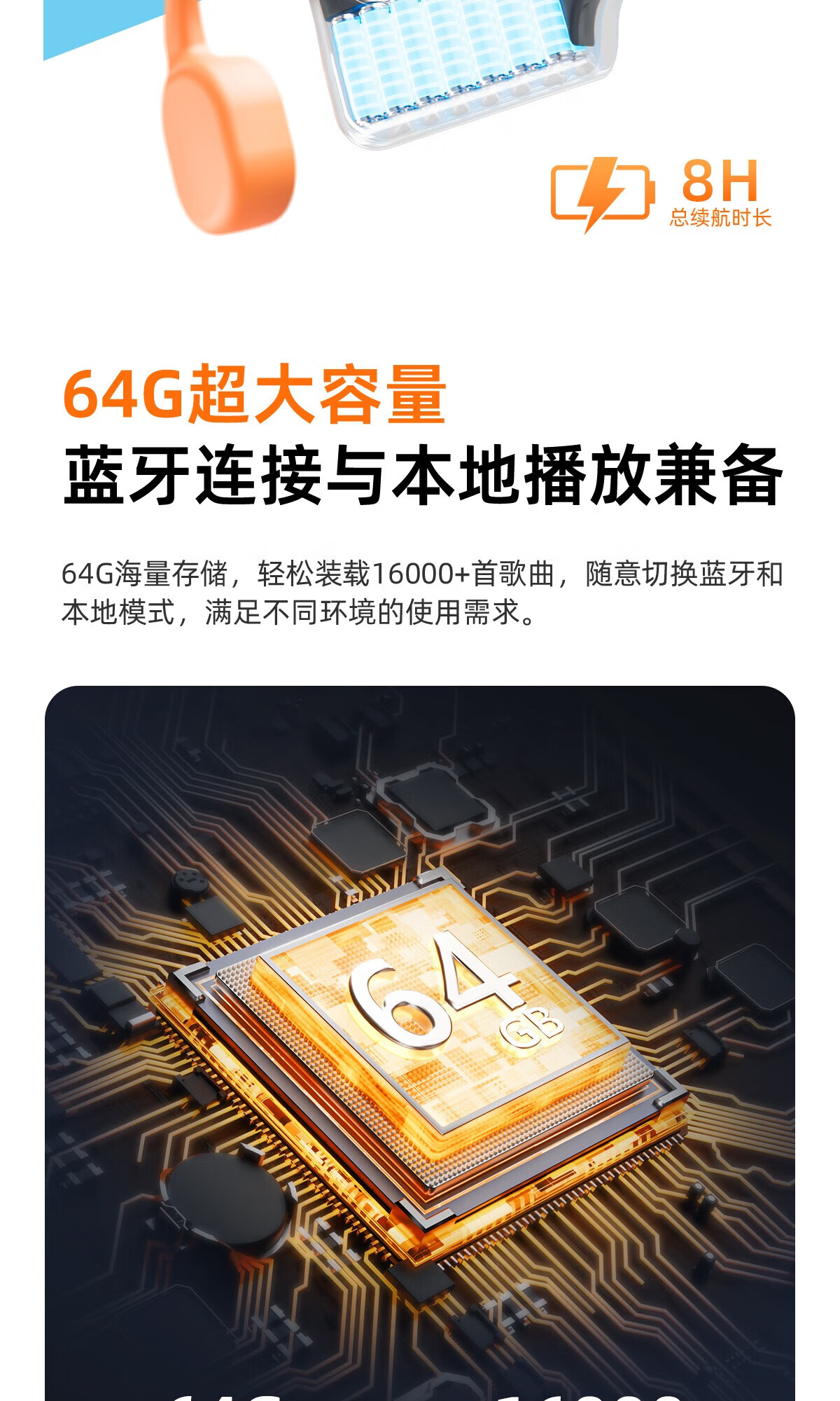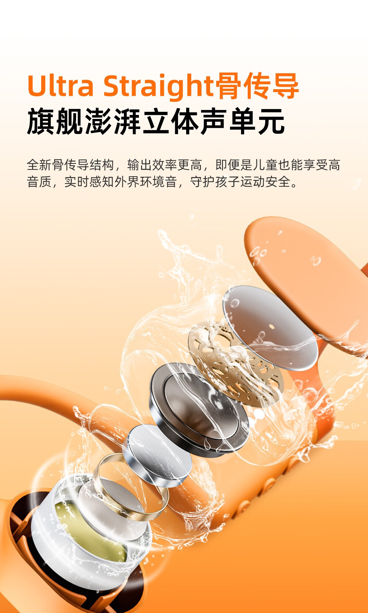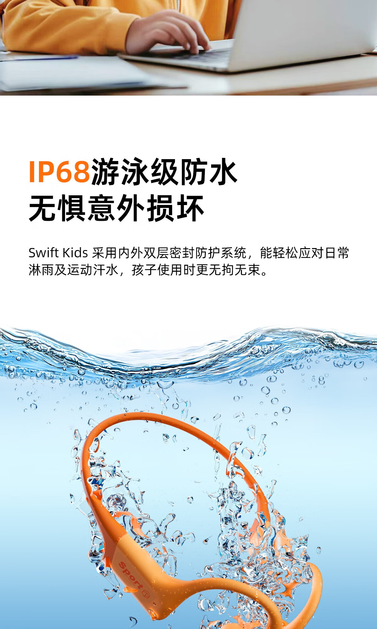 弱水时砂【国家补贴】踏浪Swift骨传导耳机游泳运动蓝牙开放式挂耳耳机跑步骑行64GB长续航七夕情人节礼物 【儿童款|活力橙】网课+游泳专用