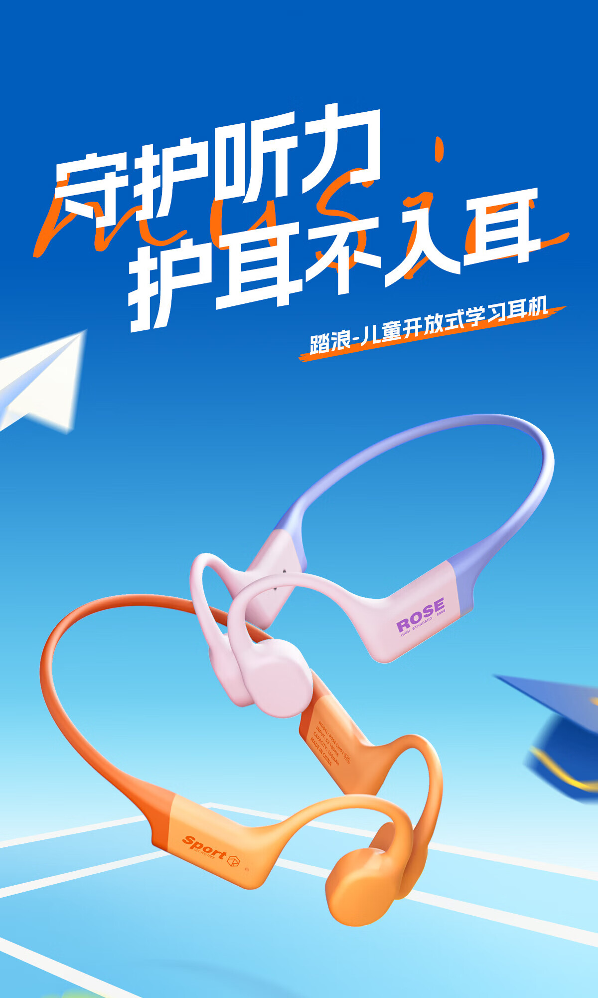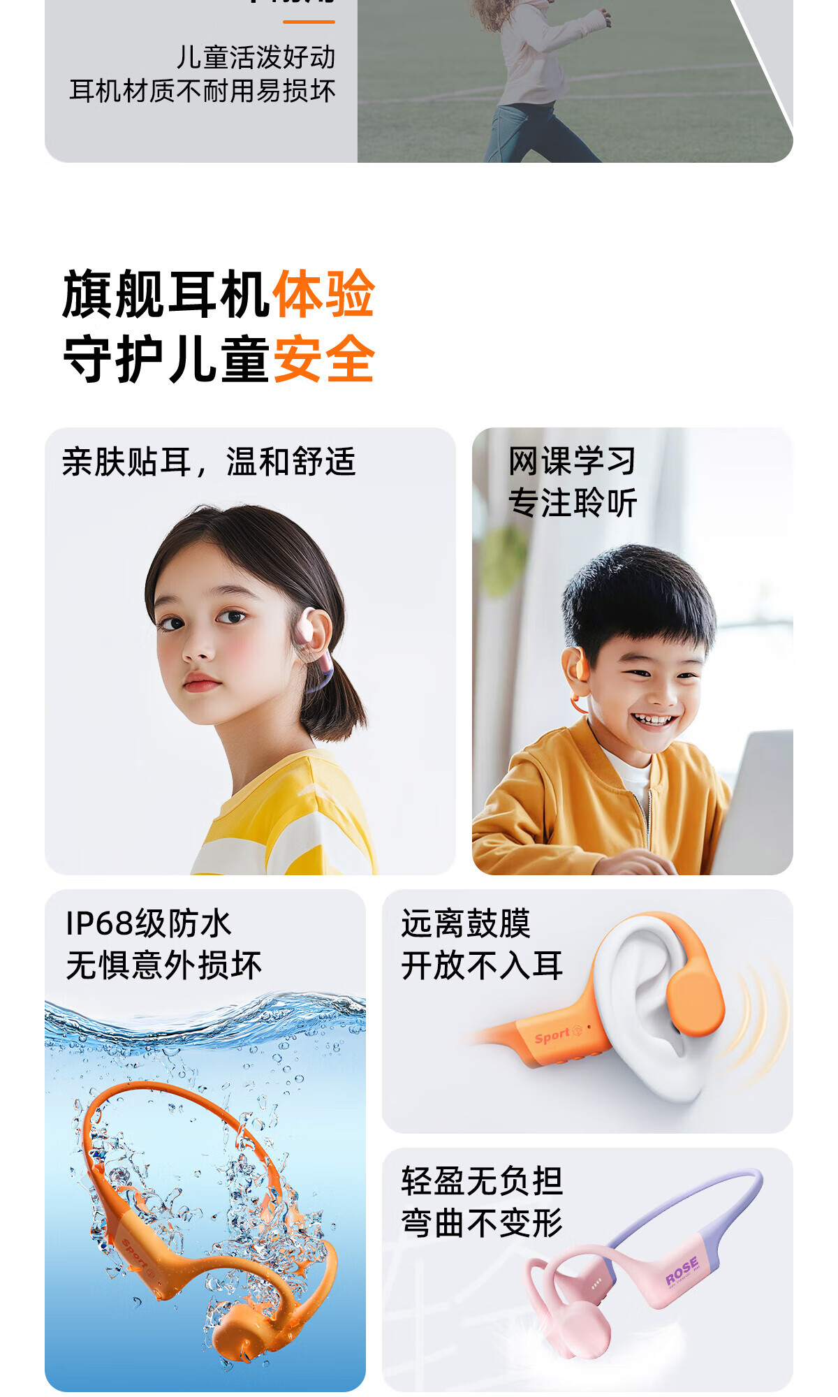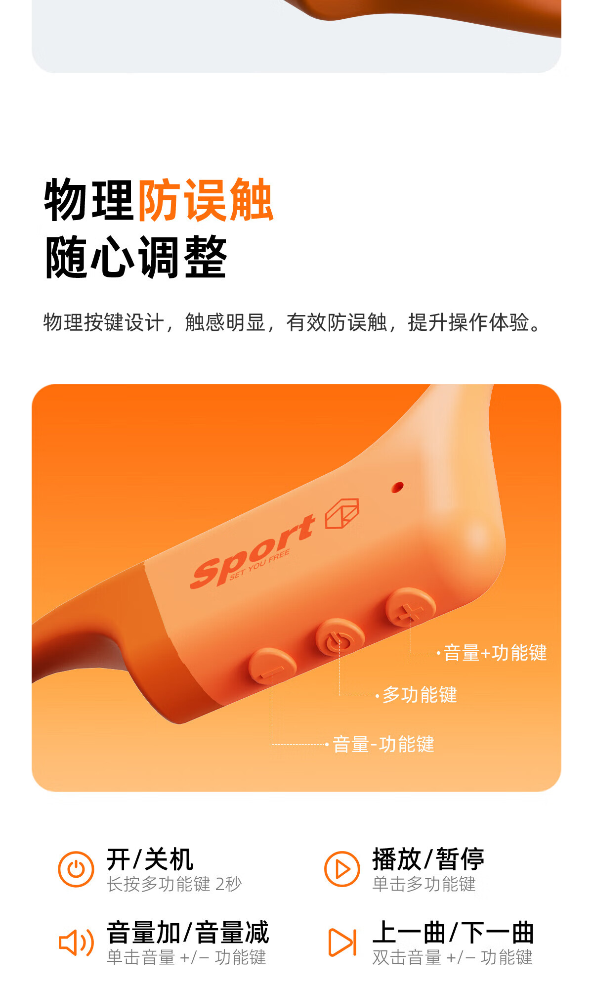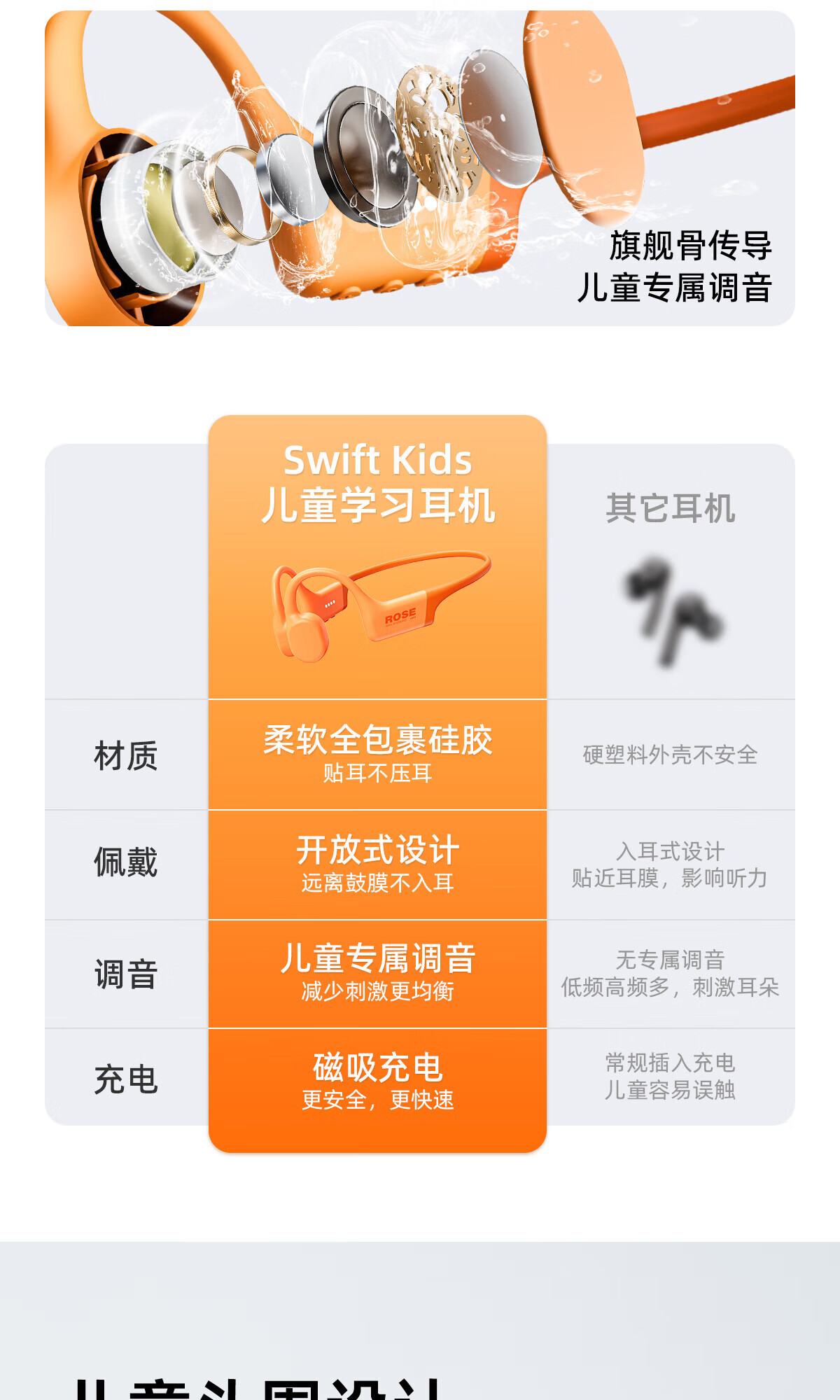 弱水时砂【国家补贴】踏浪Swift骨传导耳机游泳运动蓝牙开放式挂耳耳机跑步骑行64GB长续航七夕情人节礼物 【儿童款|活力橙】网课+游泳专用