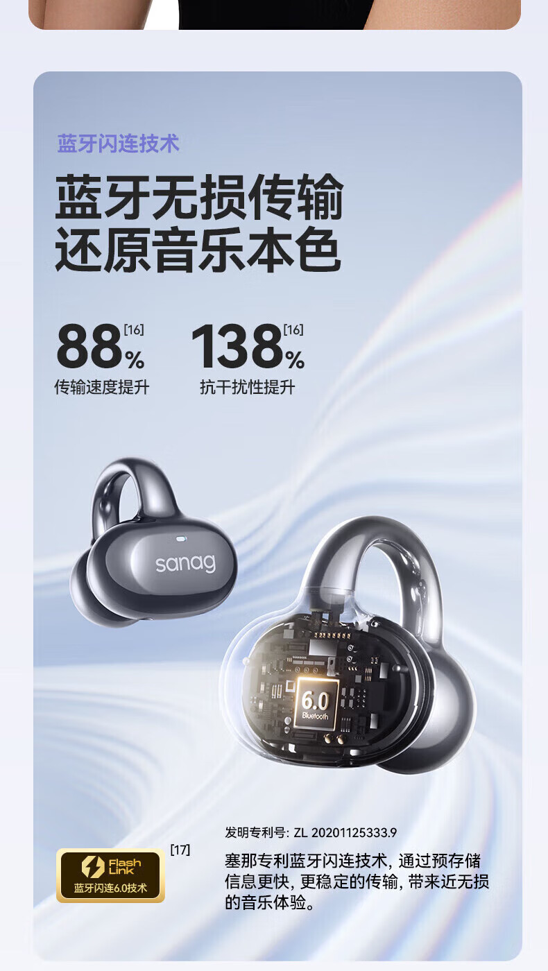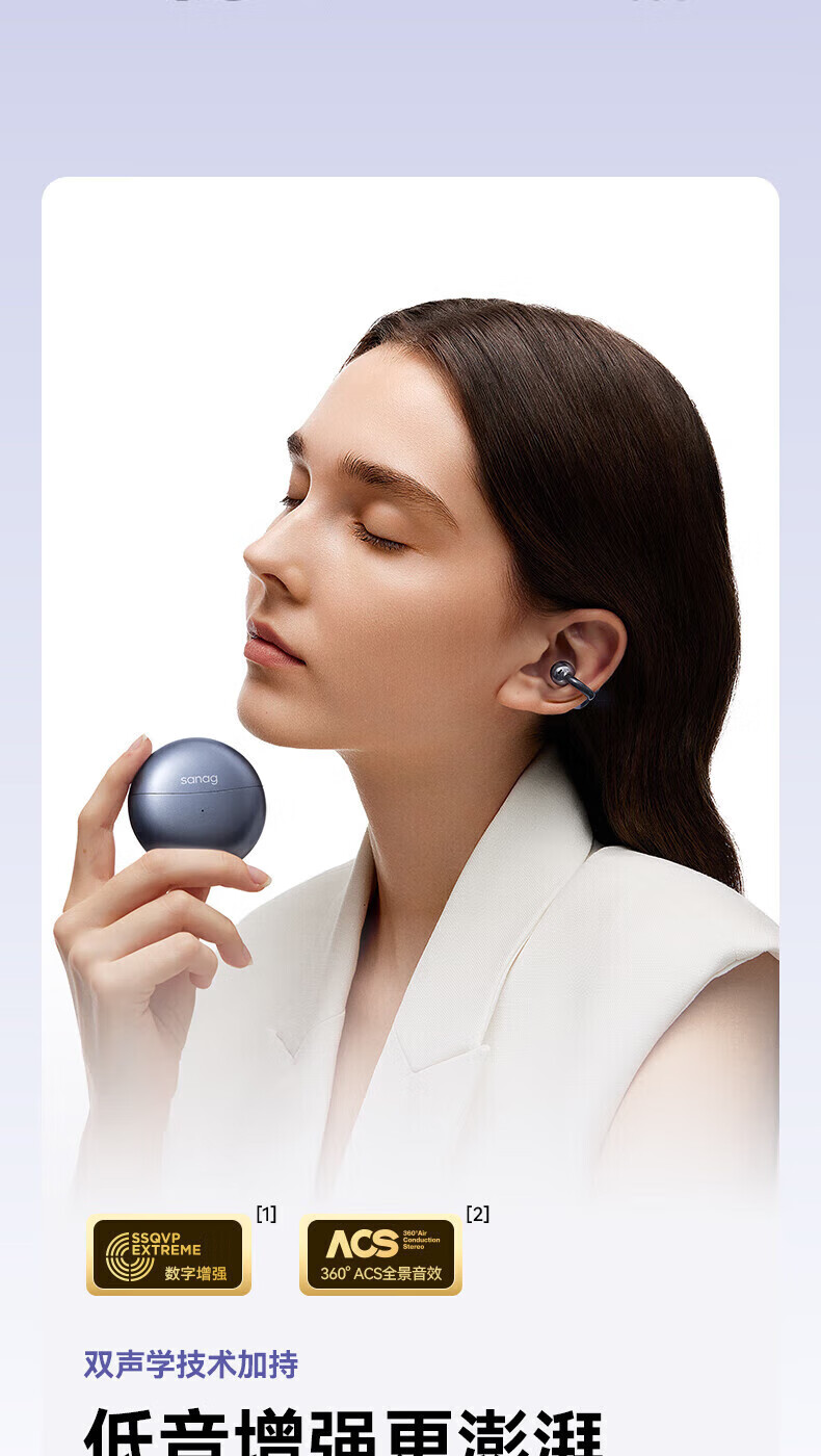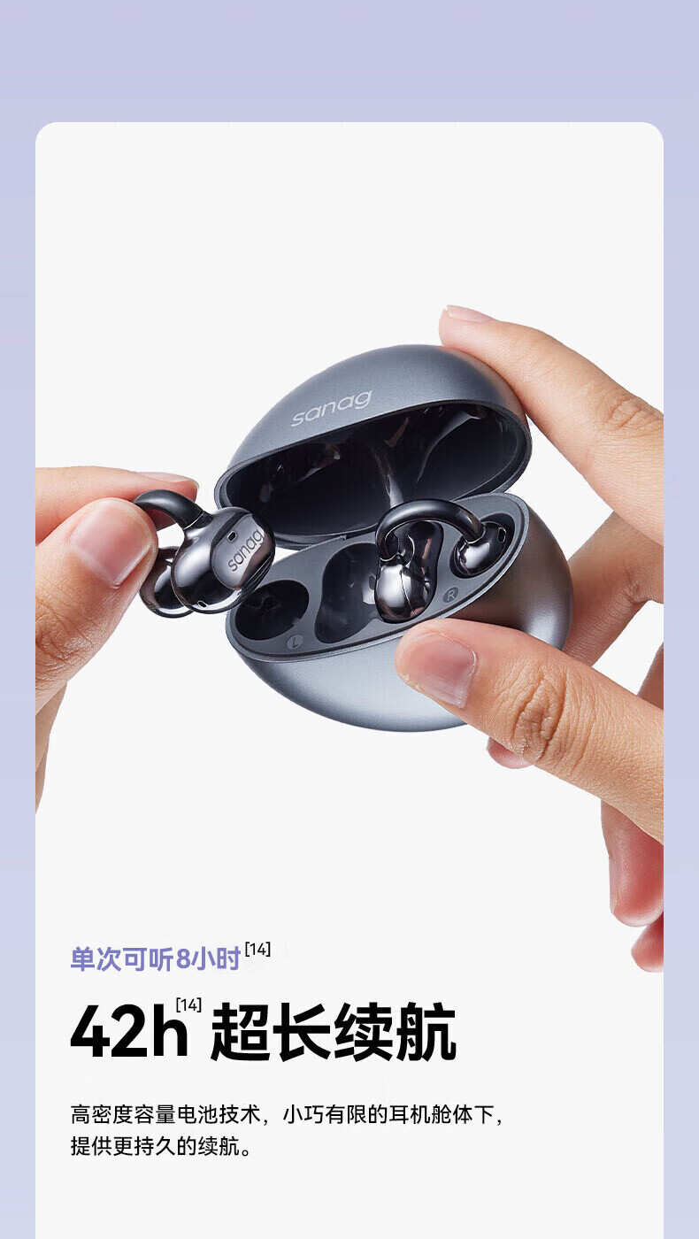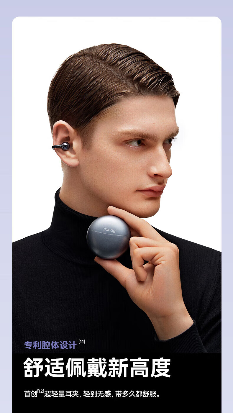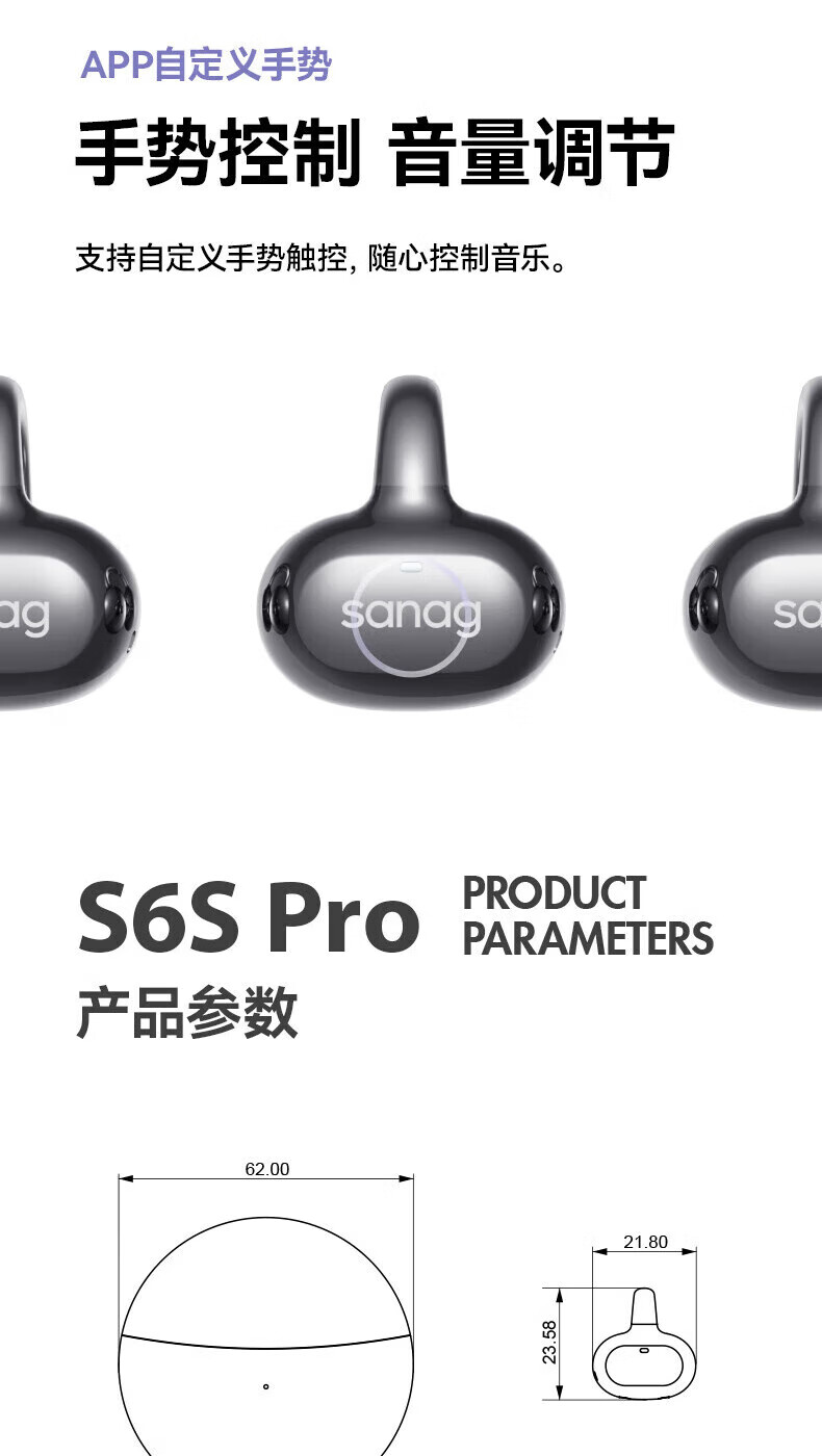SANAG塞那S6S Pro蓝牙耳机耳夹骨传导概念开放式无线夹耳式不入耳听力保护运动跑步通话降噪耳夹耳机