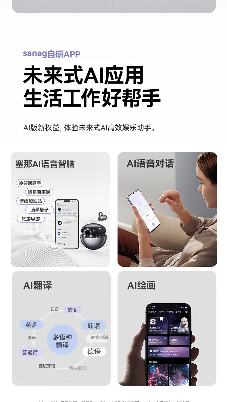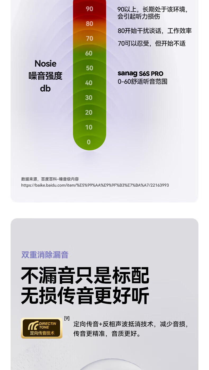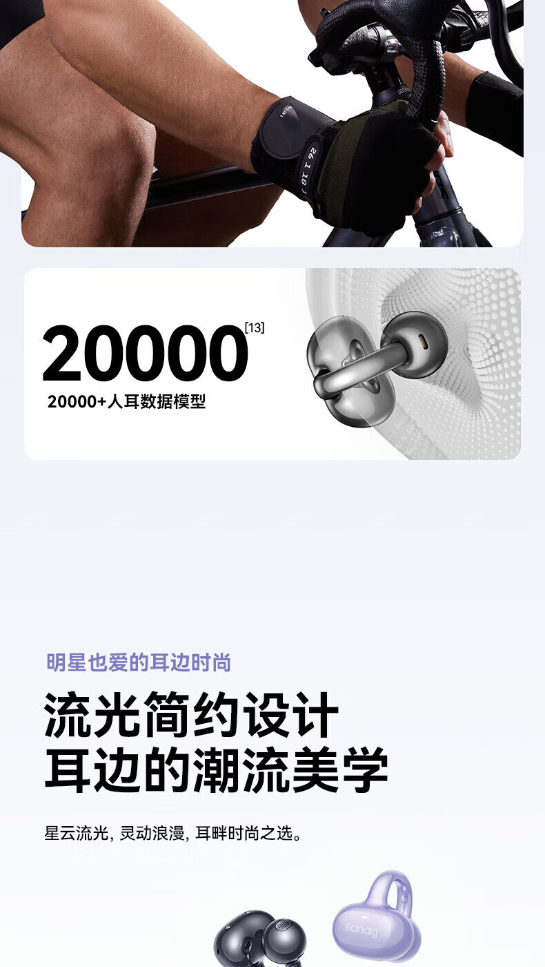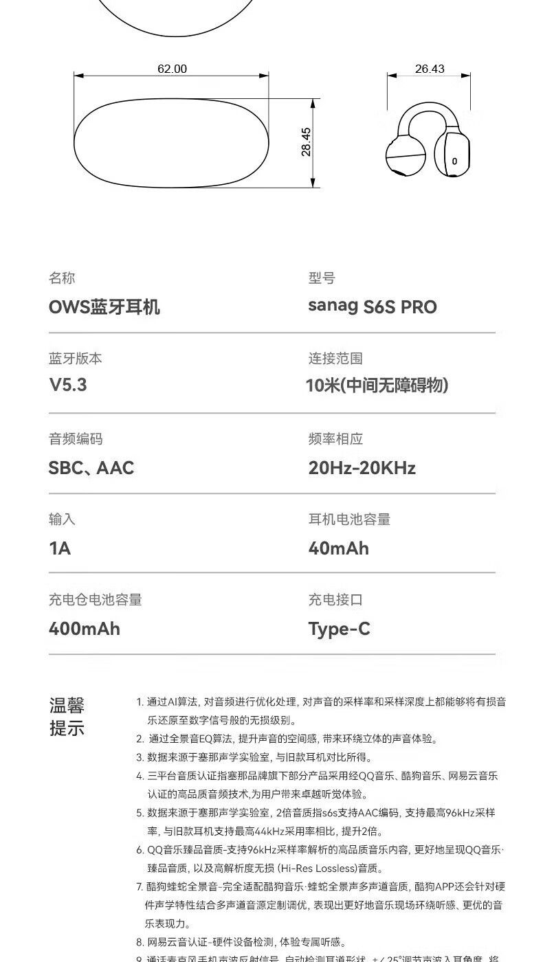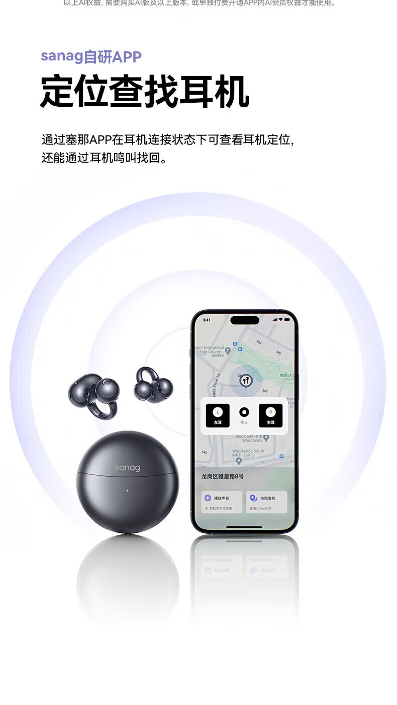SANAG塞那S6S Pro蓝牙耳机耳夹骨传导概念开放式无线夹耳式不入耳听力保护运动跑步通话降噪耳夹耳机