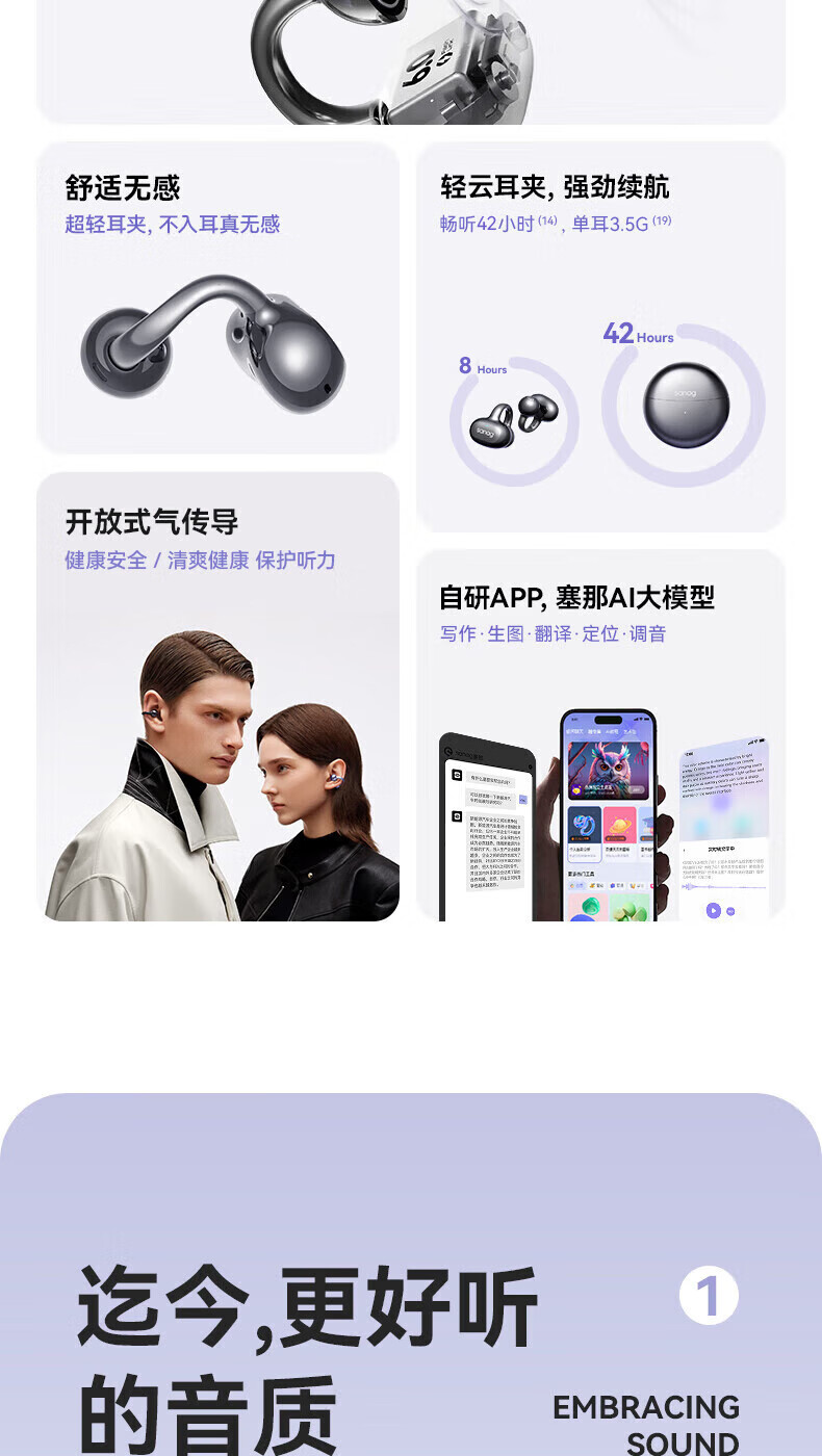 漫步者(EDIFIER)【2025新款】Comfo SE 开放式真无线蓝牙耳机 蓝牙V6.1 AI翻译 不入耳 运动跑步耳机 优雅白