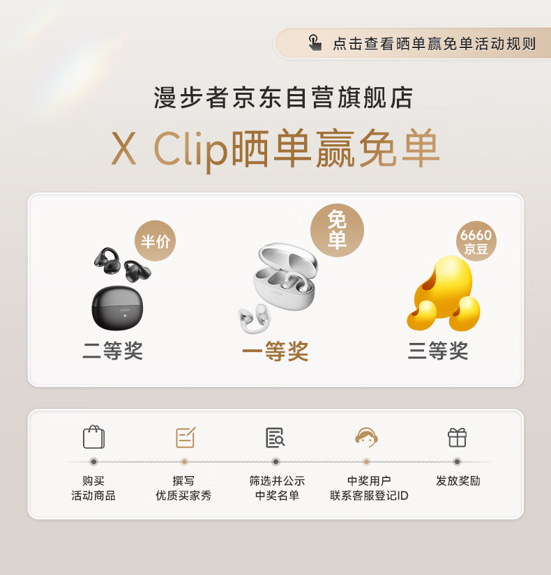 漫步者(EDIFIER)【2025年新款】X Clip耳夹式蓝牙耳机 AI翻译 开放式 跑步运动耳机 蓝牙6.0 月岩白