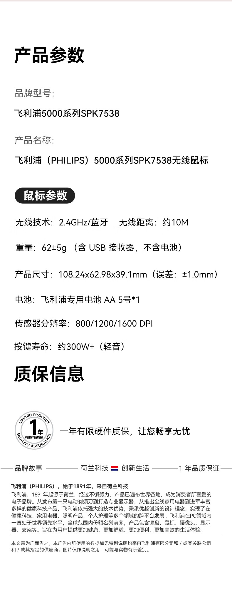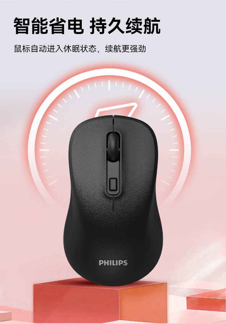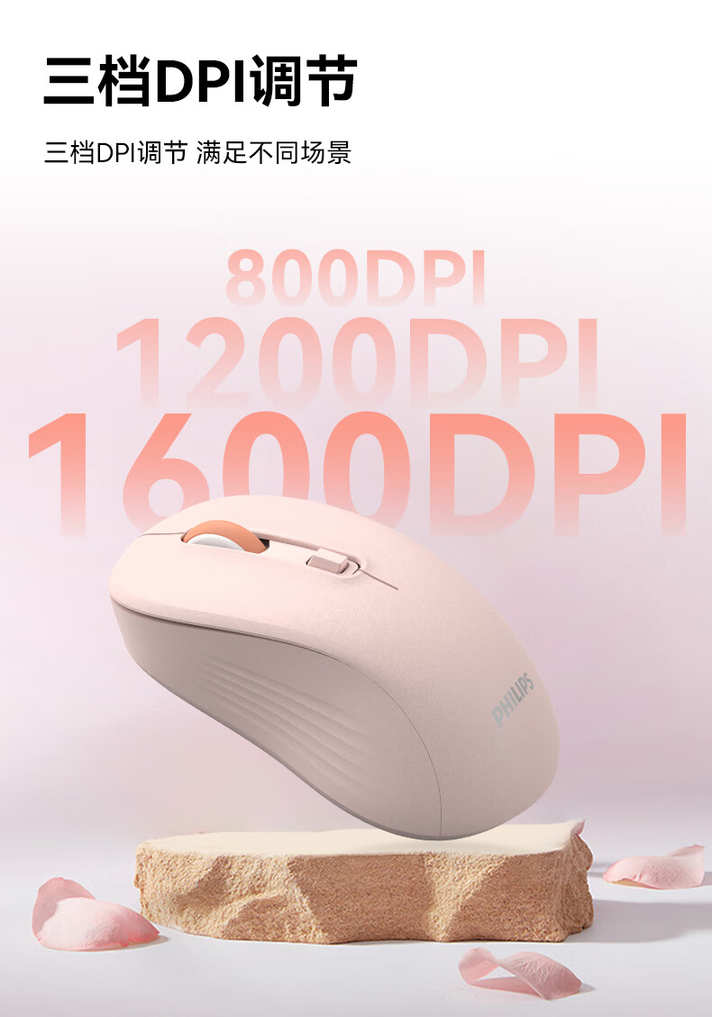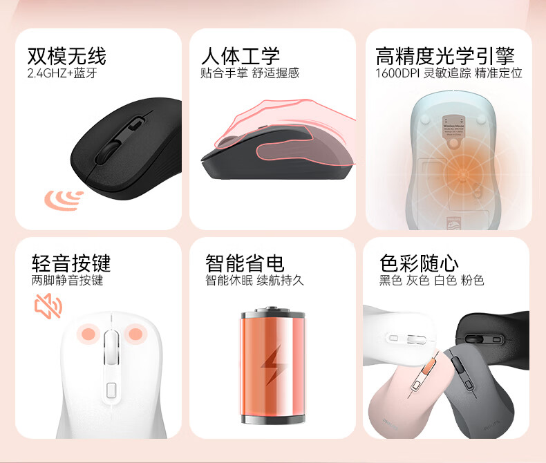 飞利浦(PHILIPS)SPK7538无线蓝牙鼠标双模轻音办公鼠标人体工学苹果mac台式电脑笔记本通用企业采购 粉色
