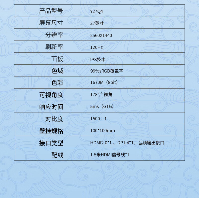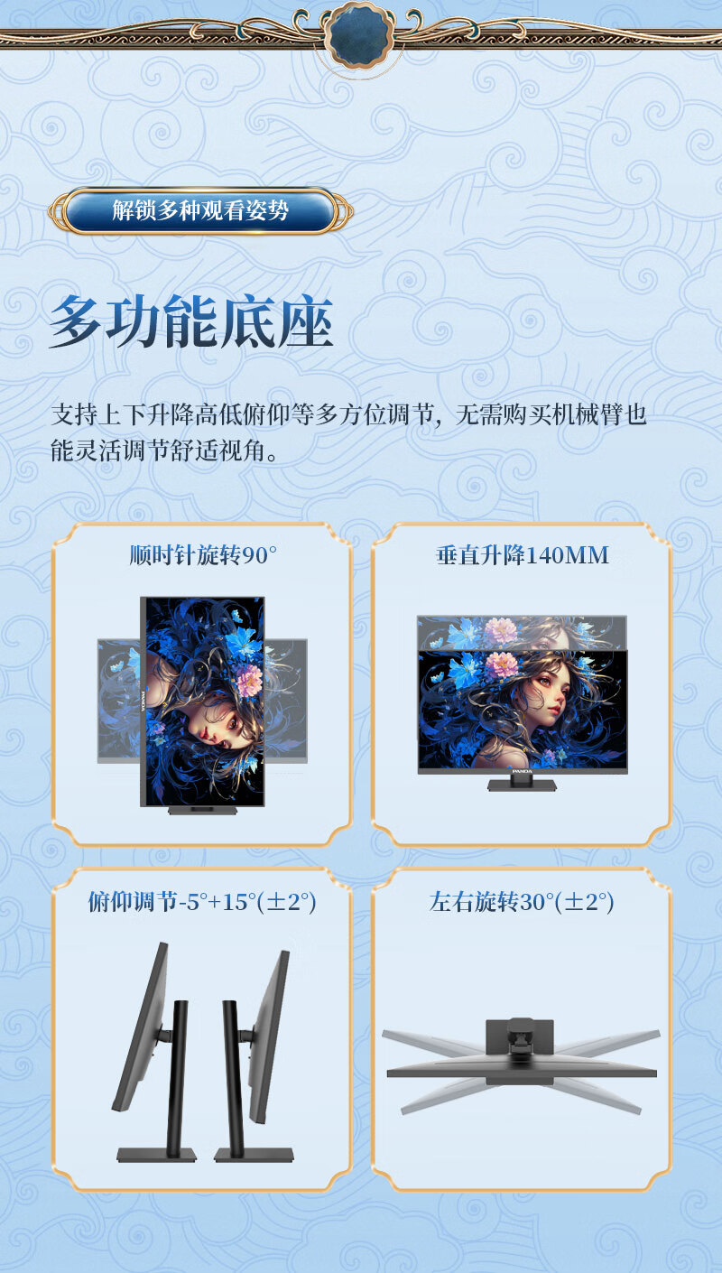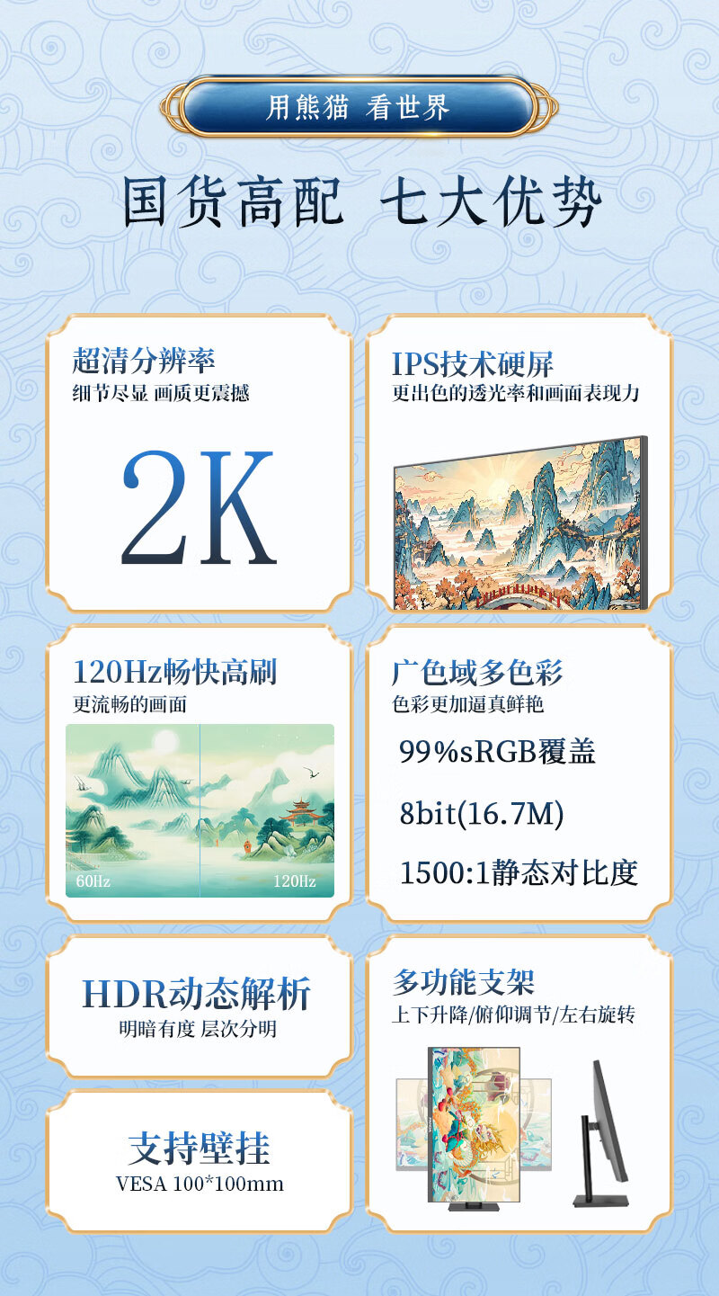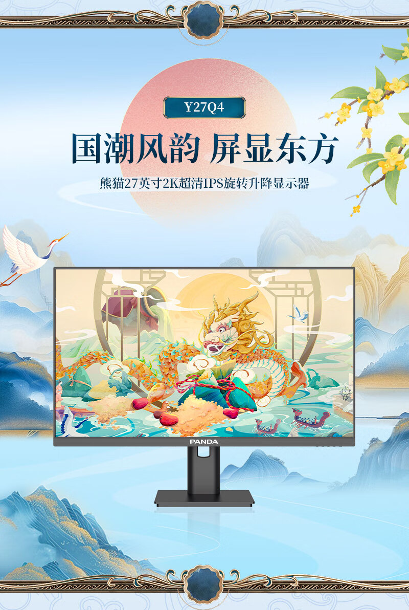 熊猫PANDA 27英寸 2K高清 原生100超120Hz高刷 IPS技术屏 旋转升降 设计办公轻电竞电脑显示器 Y27Q4