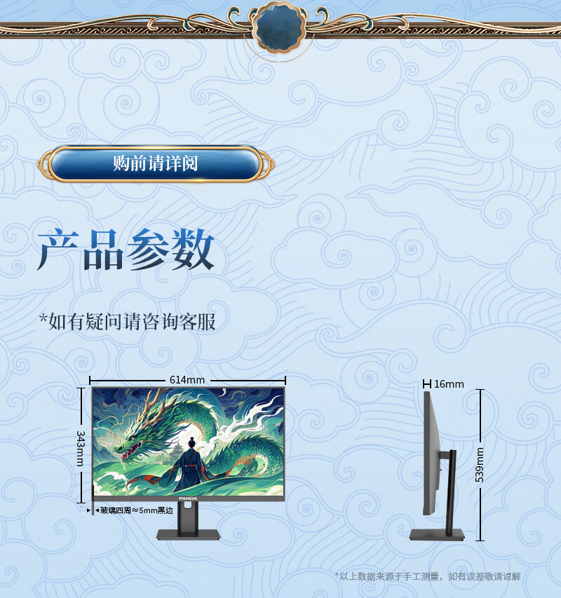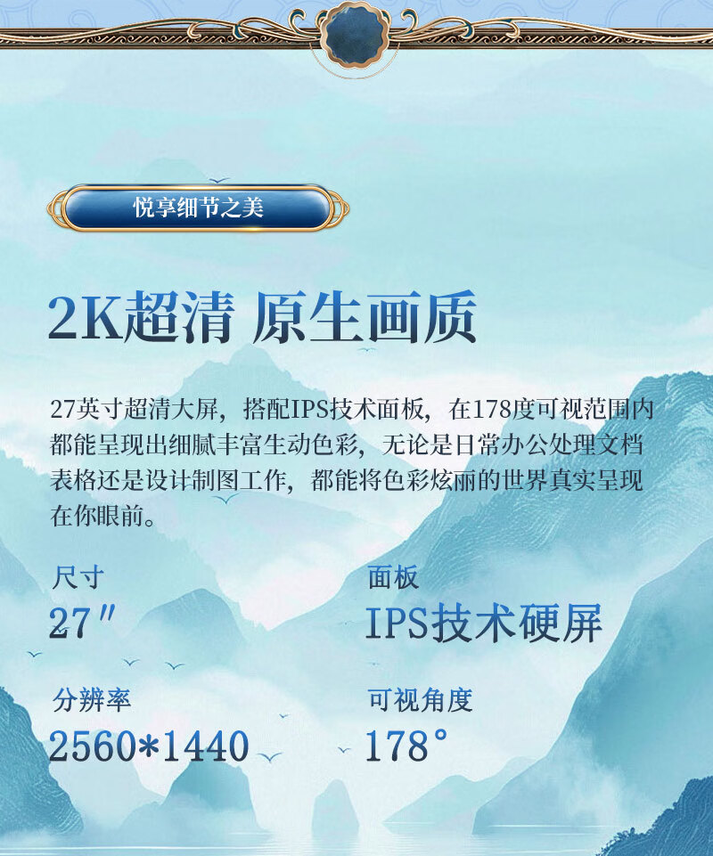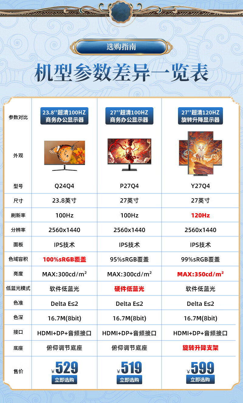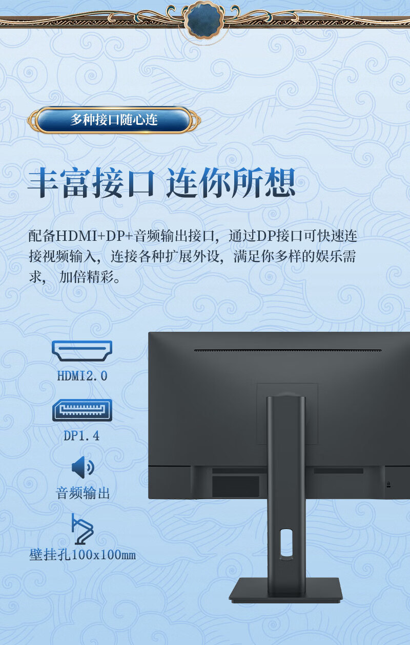 熊猫PANDA 27英寸 2K高清 原生100超120Hz高刷 IPS技术屏 旋转升降 设计办公轻电竞电脑显示器 Y27Q4