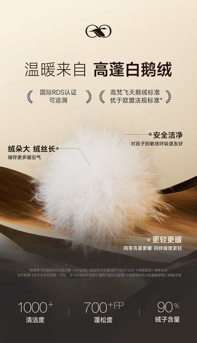 高梵黑金儿童鹅绒服旗舰长款男女童厚款连帽羽绒服 黑色 150