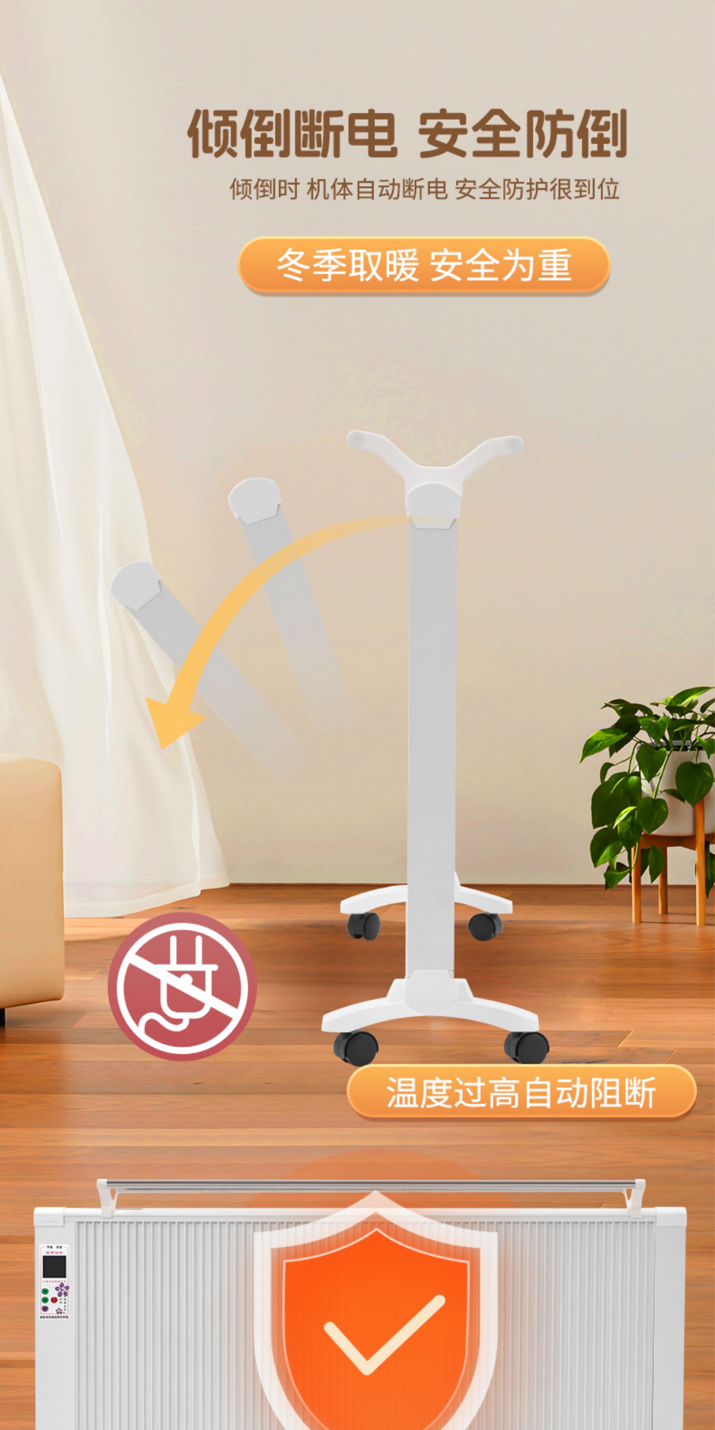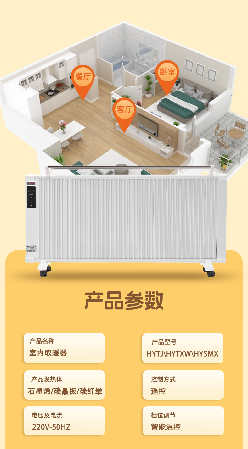 扬子碳纤维电暖器电暖气取暖器家用大功率取暖器智能遥控节能速热客厅大面积加热器卧室壁挂式全屋速暖 碳纤维智能【800W单面】