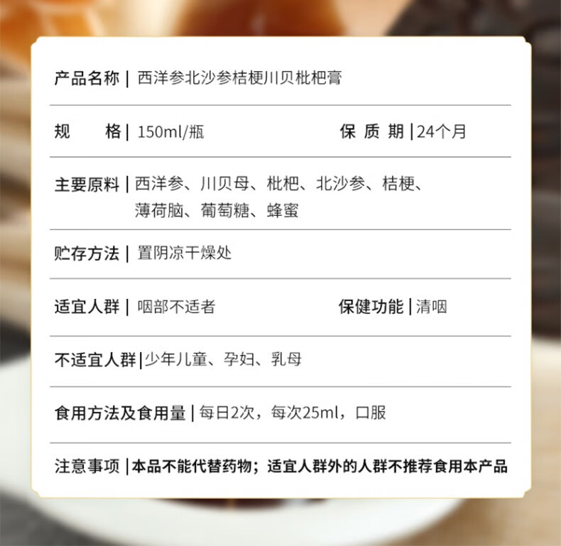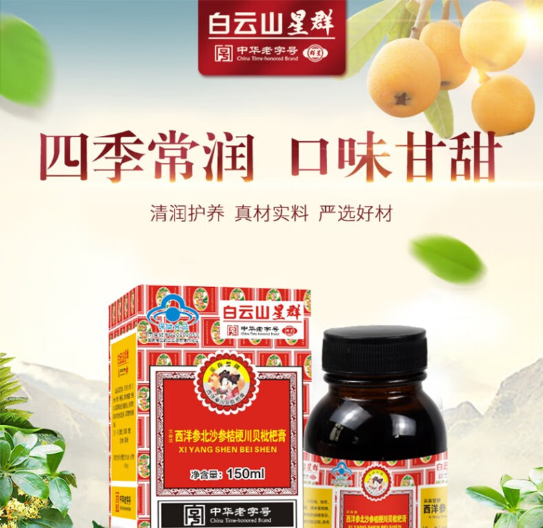 白云山星群广药 西洋参北沙参桔梗 川贝枇杷膏 成人老人润喉清咽 日常保健 1瓶
