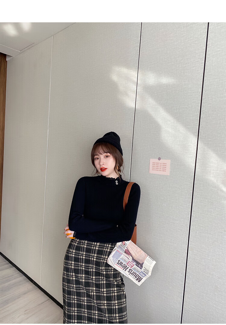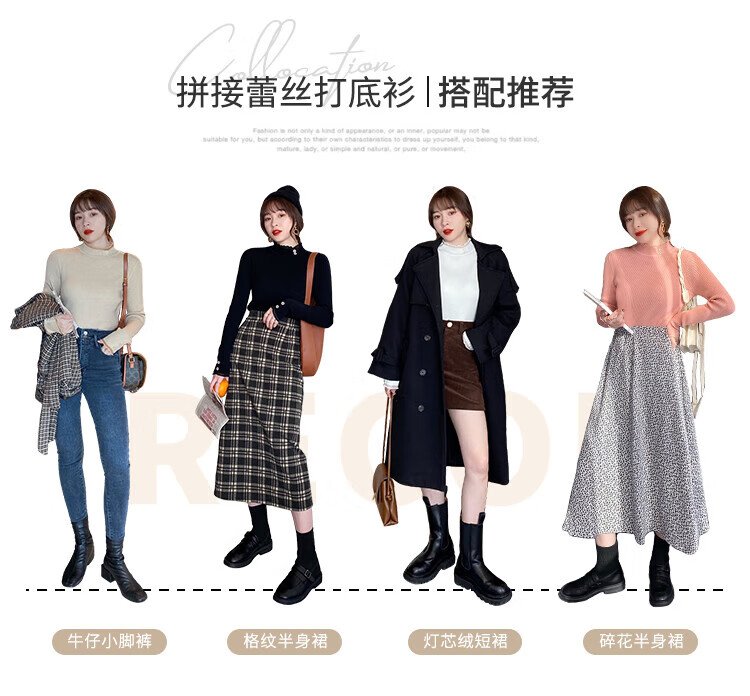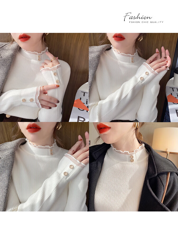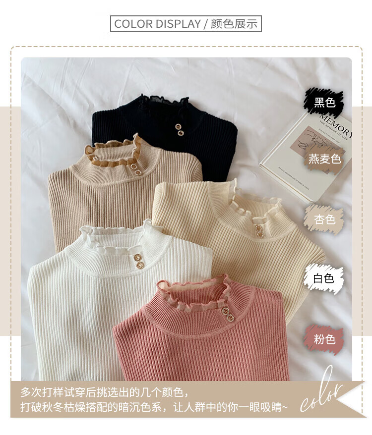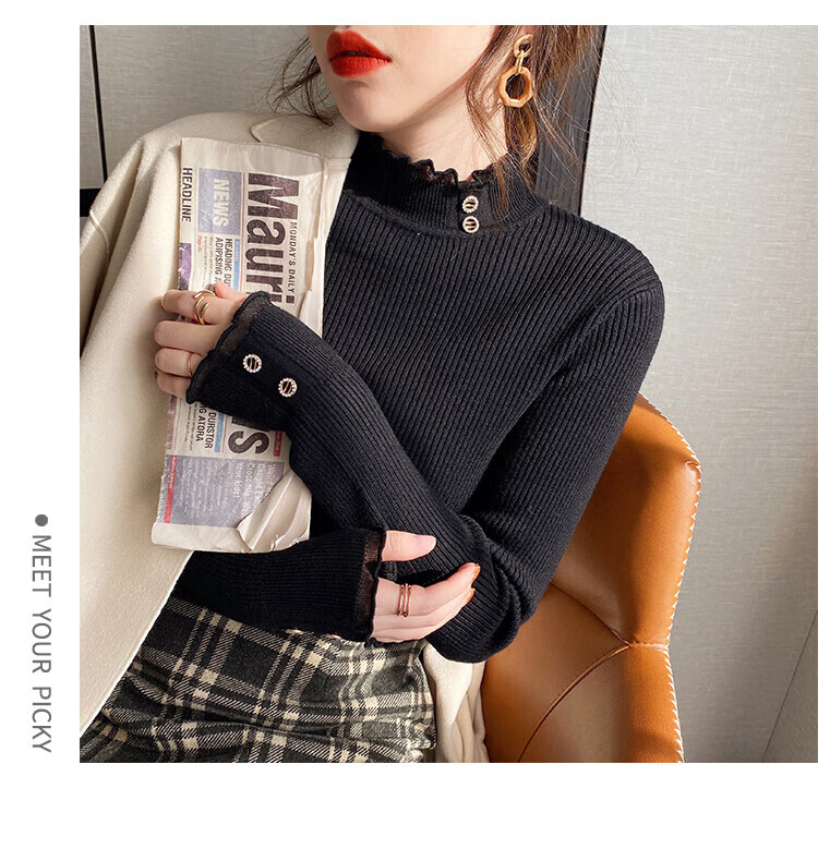 相伊恋人半高领针织衫女外穿25年百搭显瘦内搭蕾丝边打底衫加厚保暖毛衣 黑色【春秋常规款】 均码 【80-140斤】
