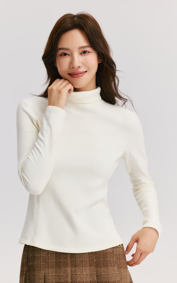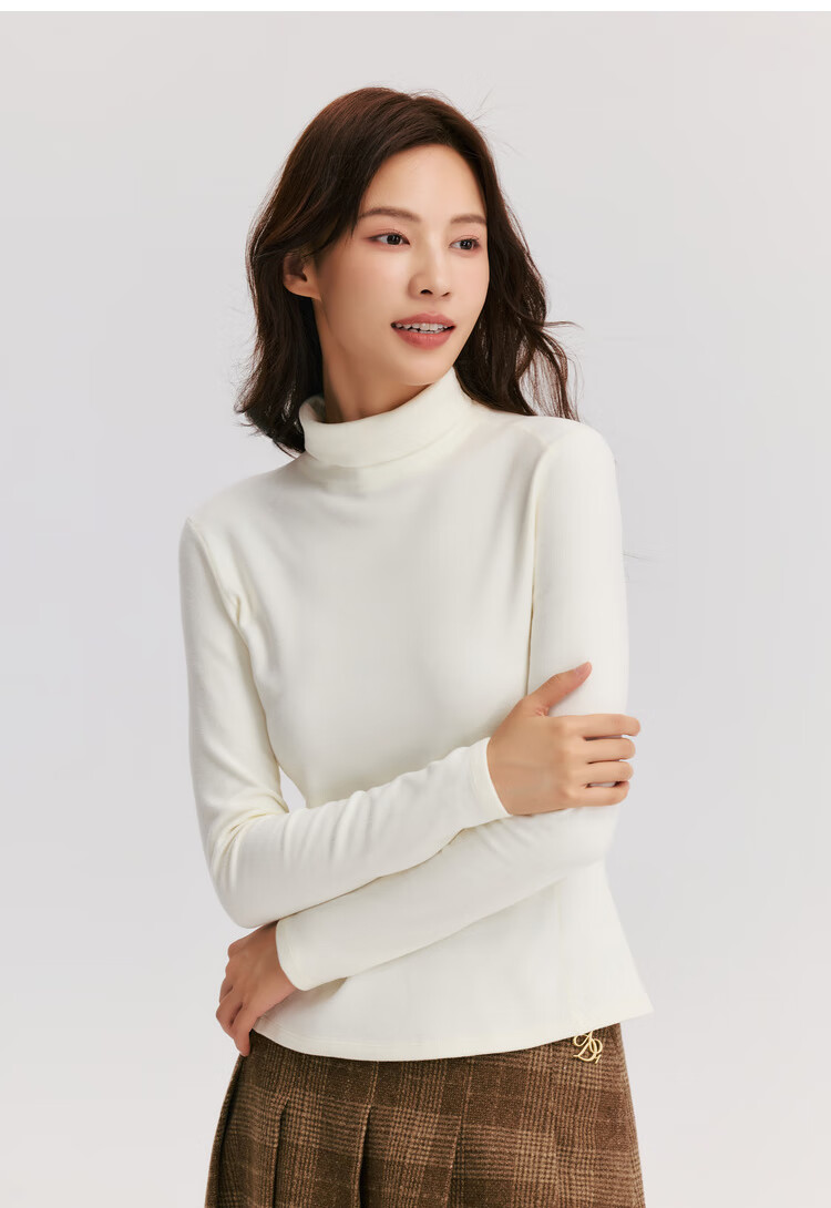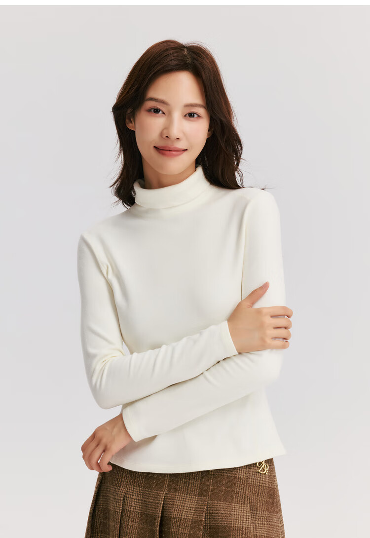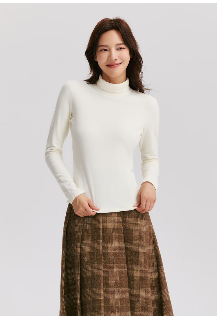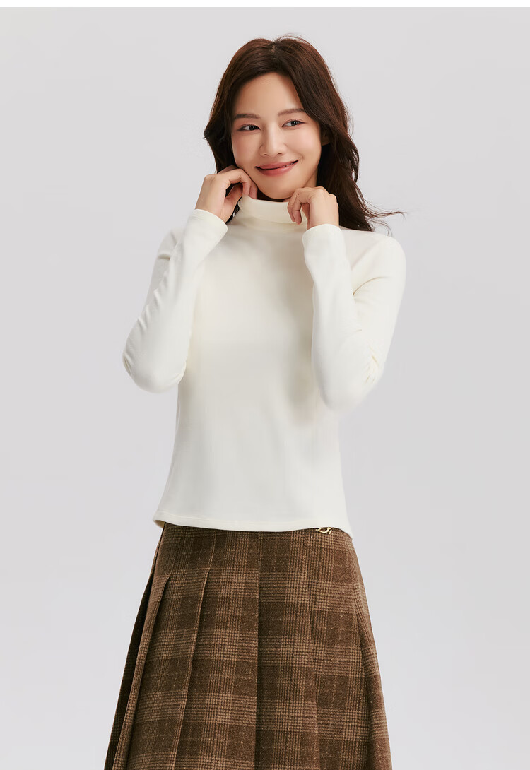 森马(Semir)长袖T恤女发热德绒紧身显瘦2024冬季简约高领打底衫109724101009