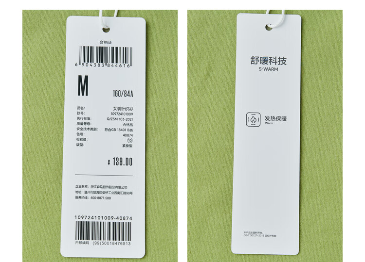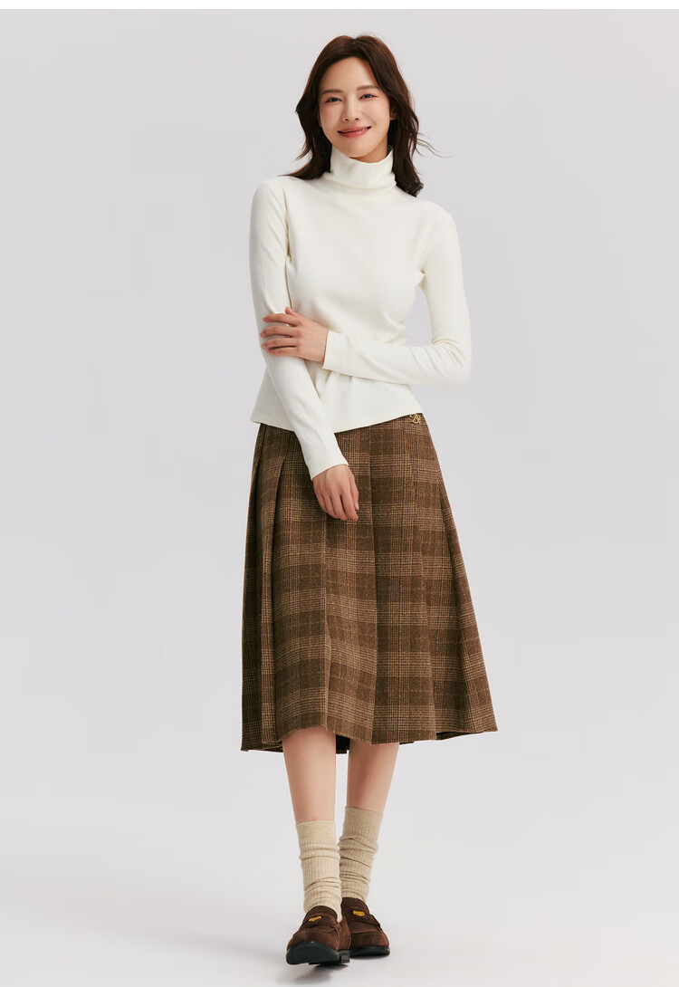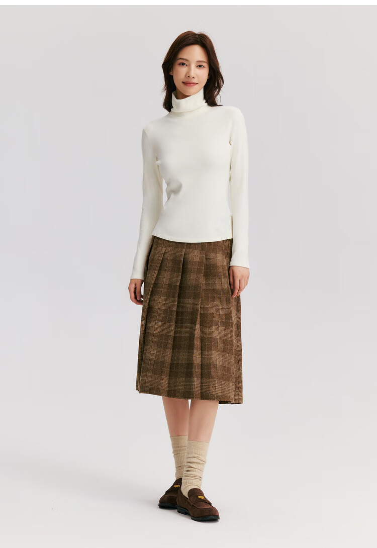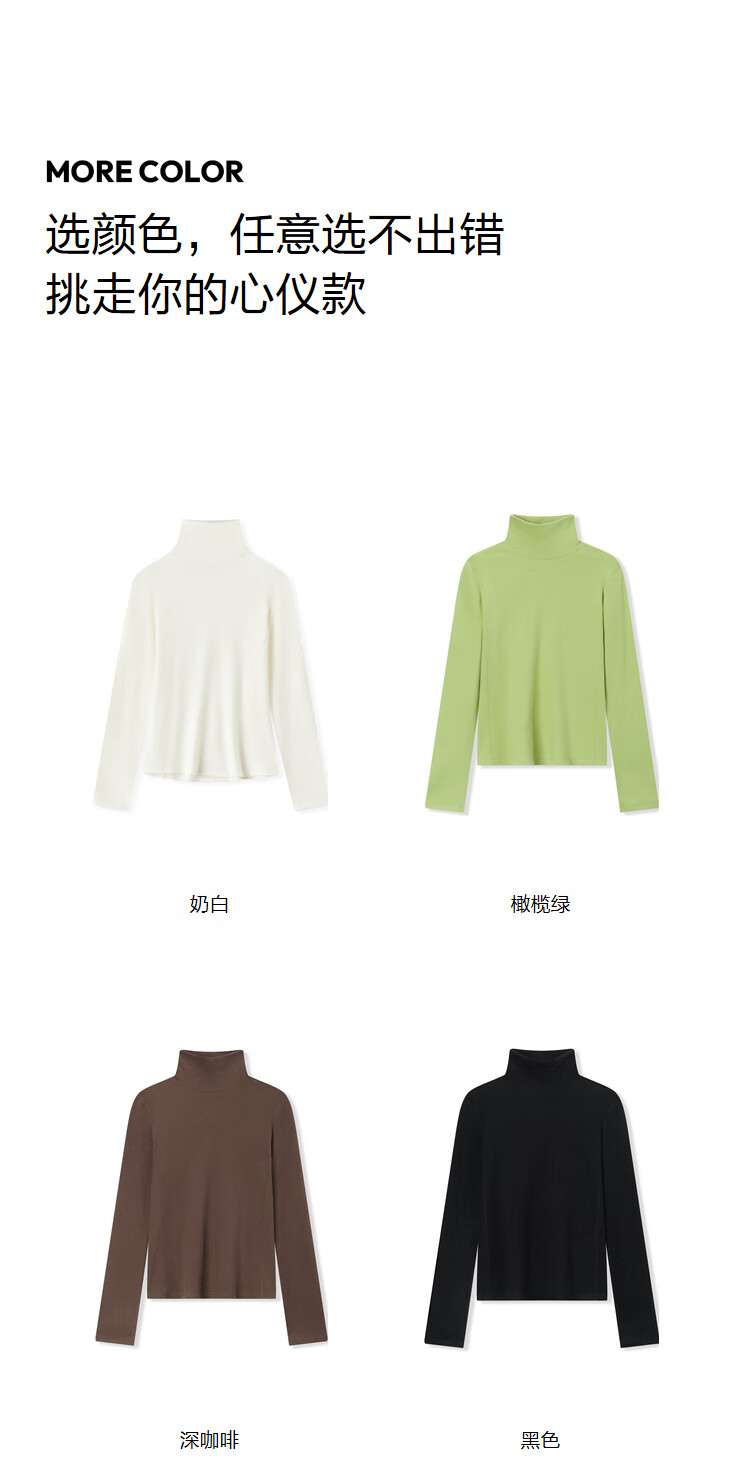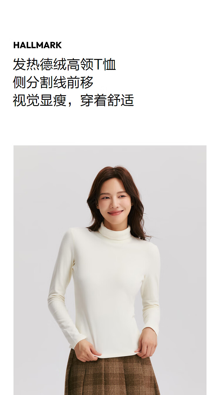 森马(Semir)长袖T恤女发热德绒紧身显瘦2024冬季简约高领打底衫109724101009
