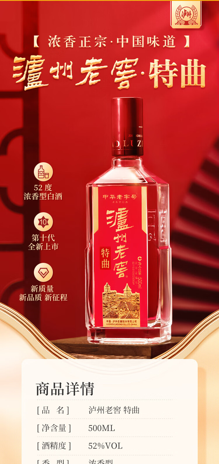 泸州老窖 【金榜严选】第十代特曲 浓香型白酒 52度 2021-22年 500ml*6瓶 原箱老酒【名酒鉴真】