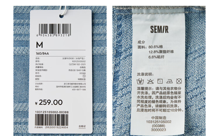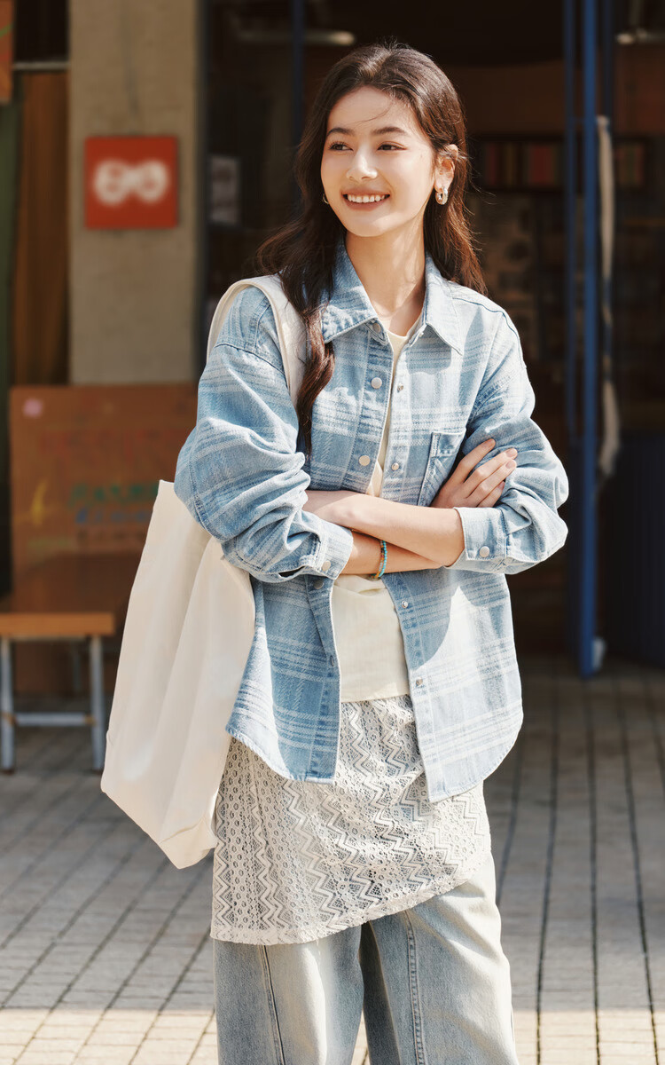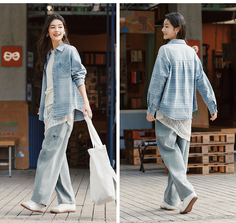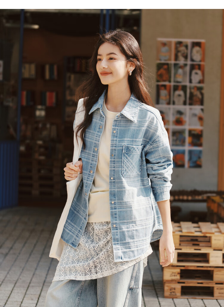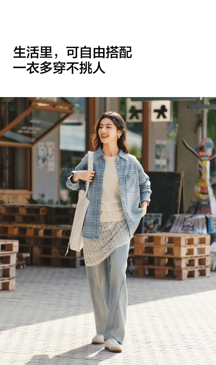 森马(Semir)森柔牛仔|商场同款牛仔衬衫女oversize春季2025衬衣103125105002