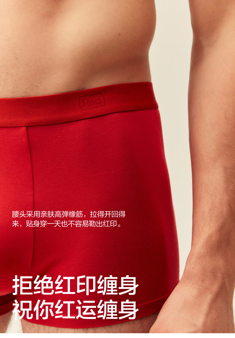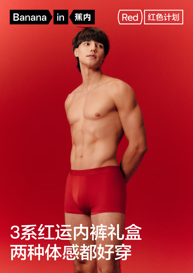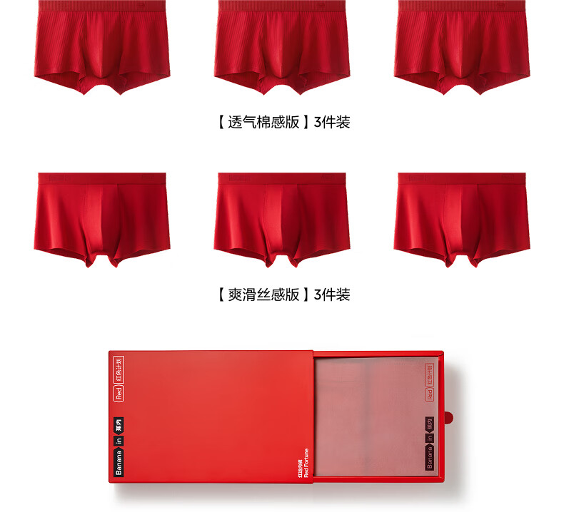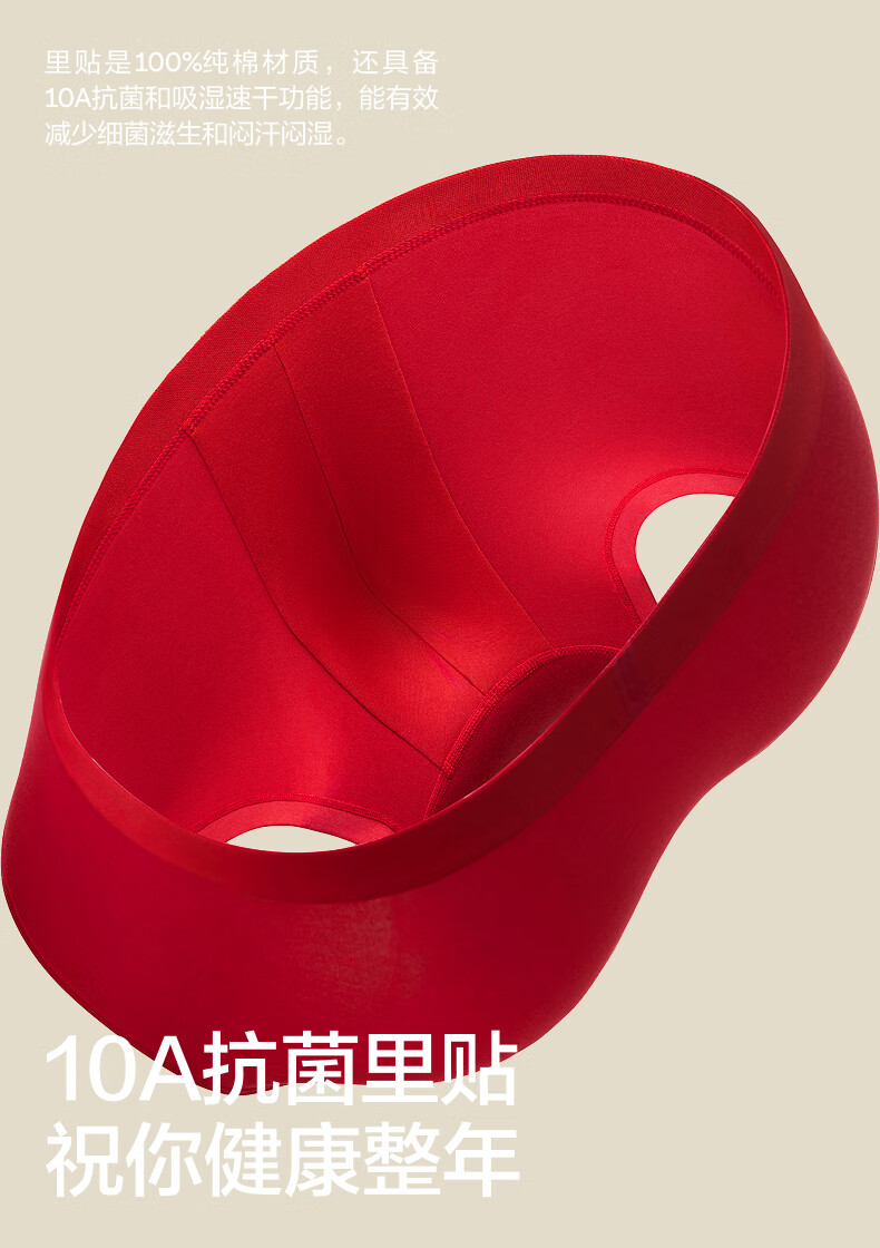 蕉内红色计划3系男士内裤10A抗菌莫代尔平角本命马年结婚红运礼盒3件