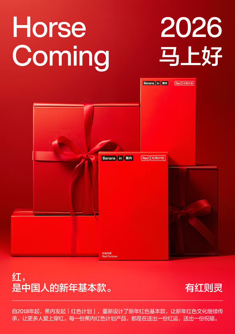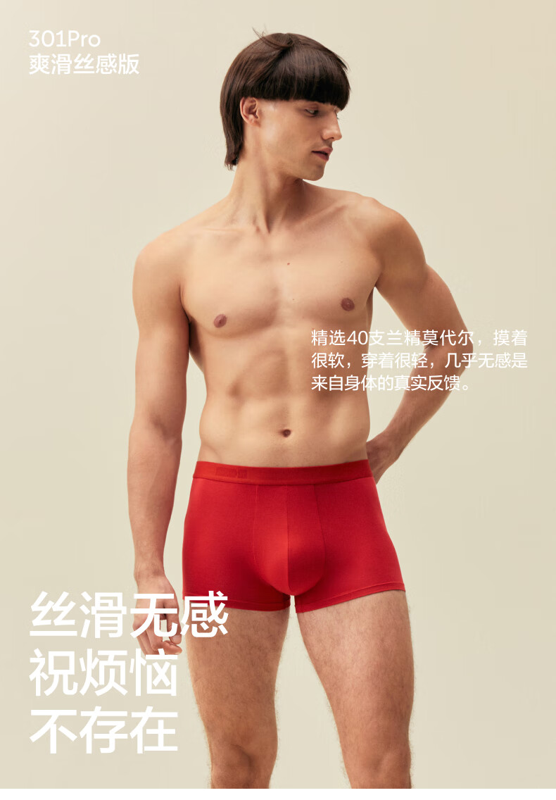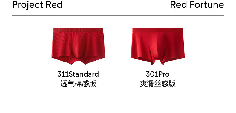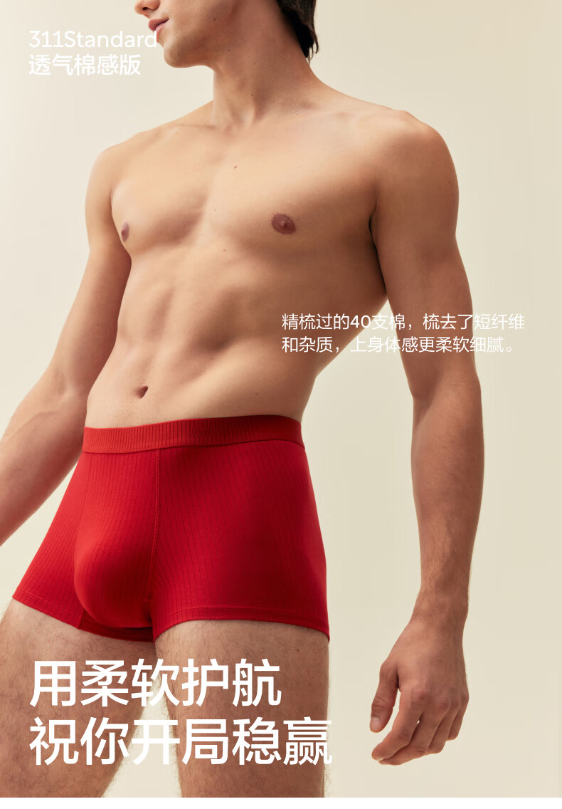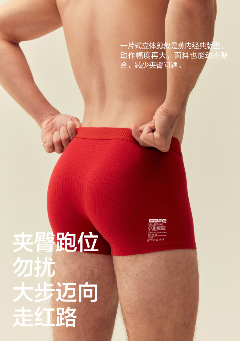 蕉内红色计划3系男士内裤10A抗菌莫代尔平角本命马年结婚红运礼盒3件