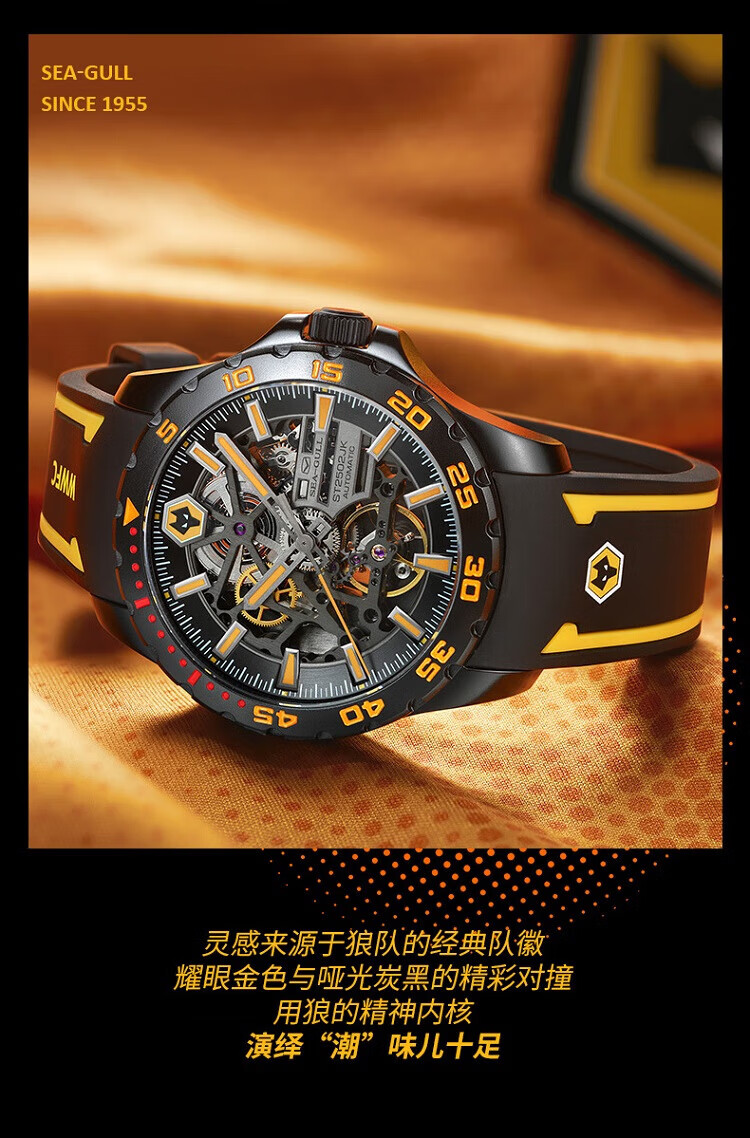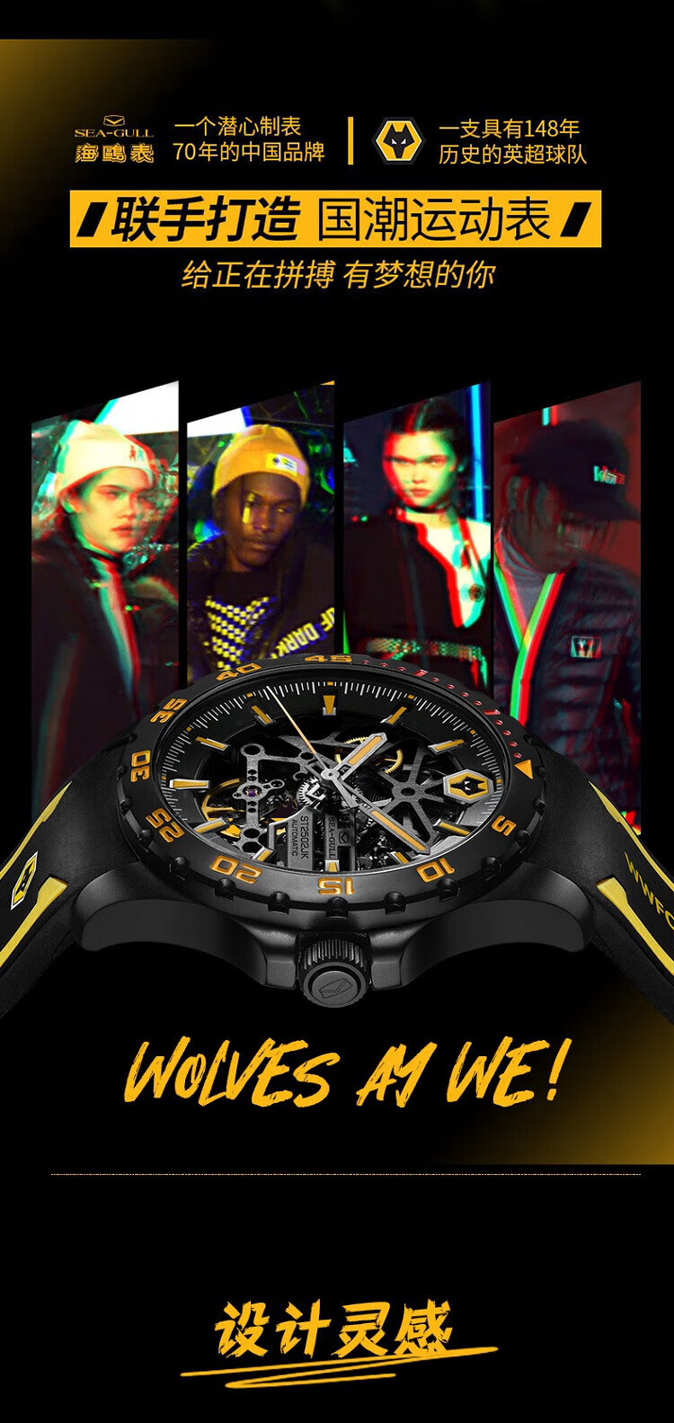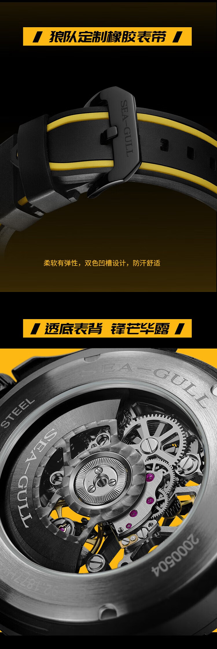 海鸥(SEAGULL)手表男士自动机械表 狼队X海鸥匠心男士手表生日礼物男表联名礼盒