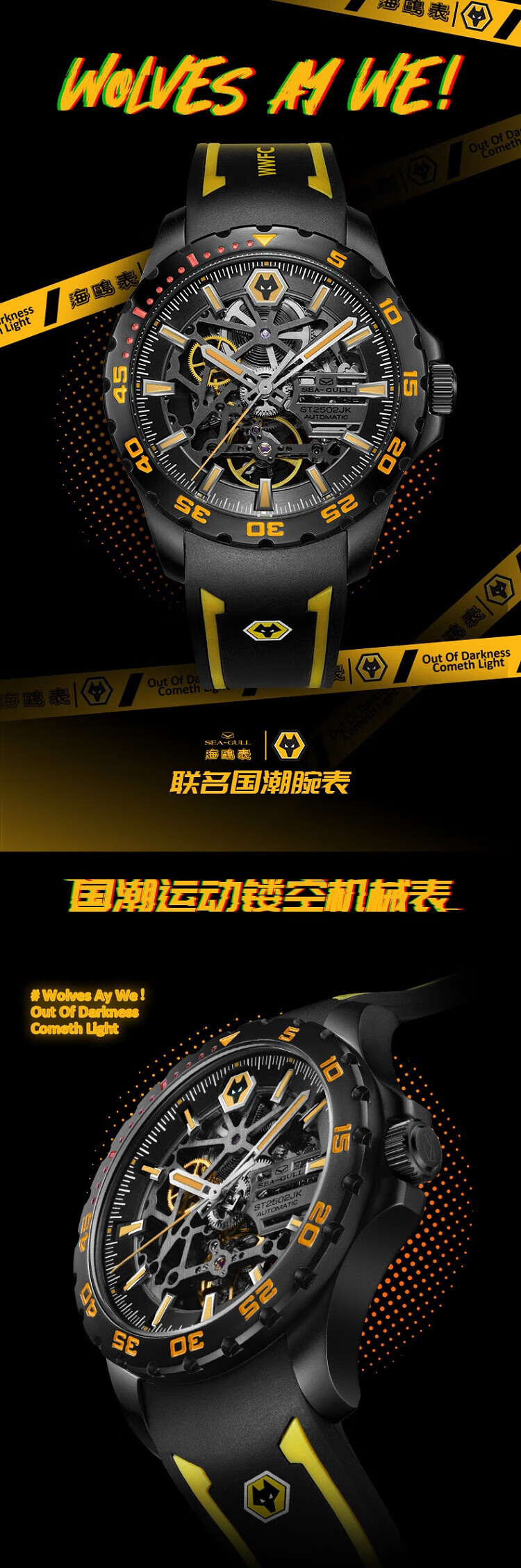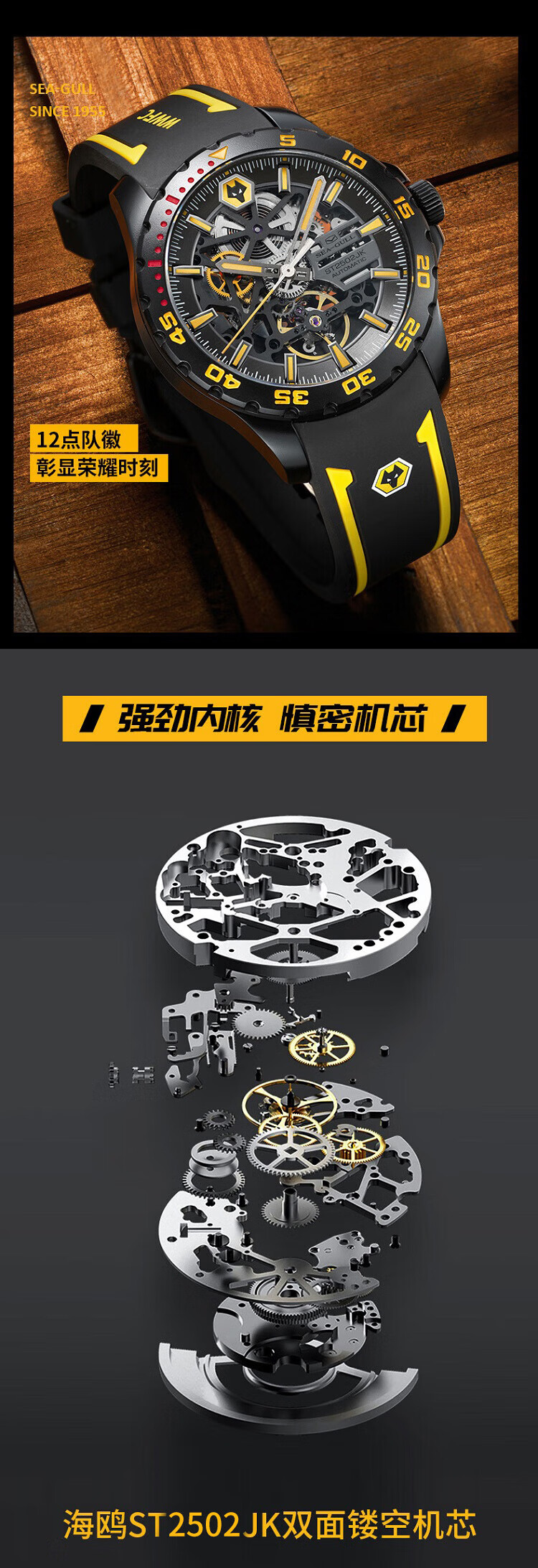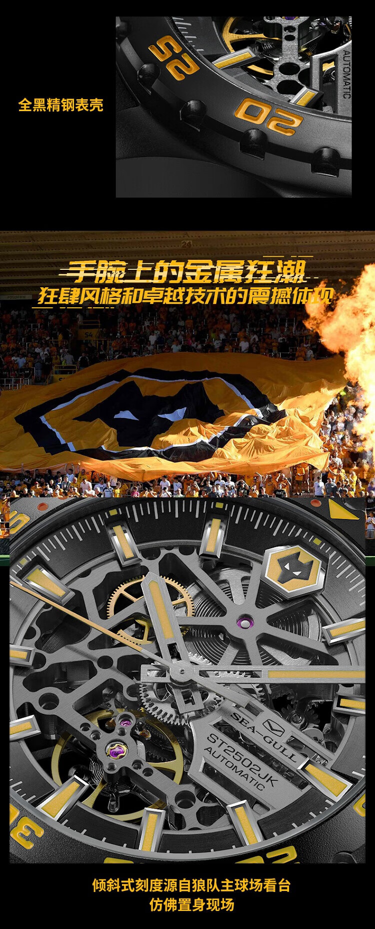 海鸥(SEAGULL)手表男士自动机械表 狼队X海鸥匠心男士手表生日礼物男表联名礼盒