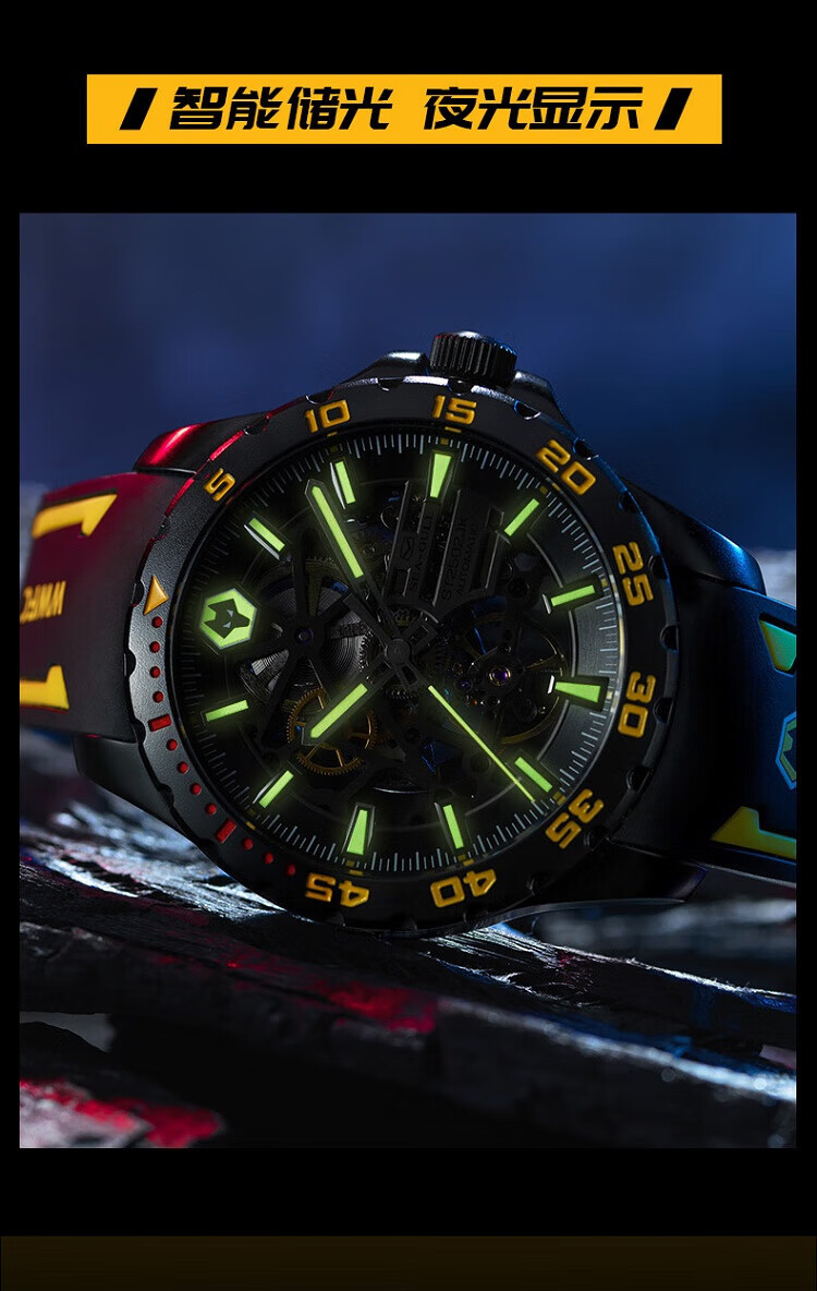 雷诺(RARONE)星际系列潮流镂空全自动男士机械表钢带腕表礼物