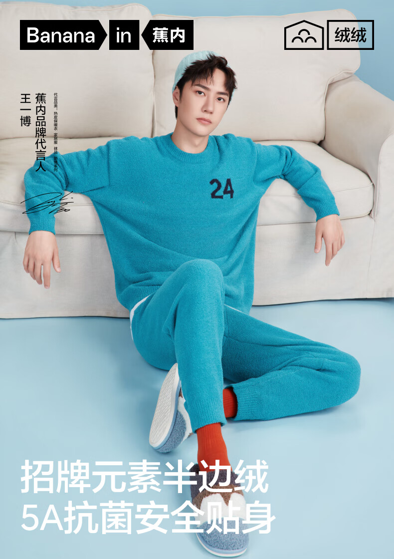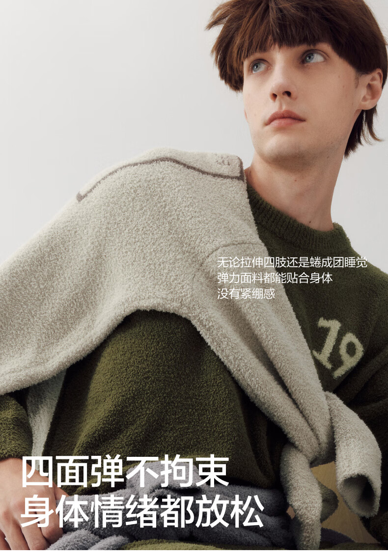 蕉内【王一博同款】绒绒5系睡衣男士保暖情侣装秋冬家居服套装可外穿