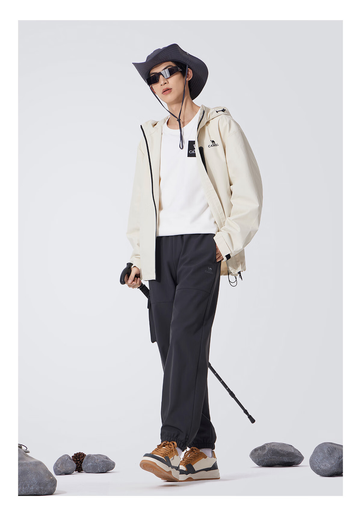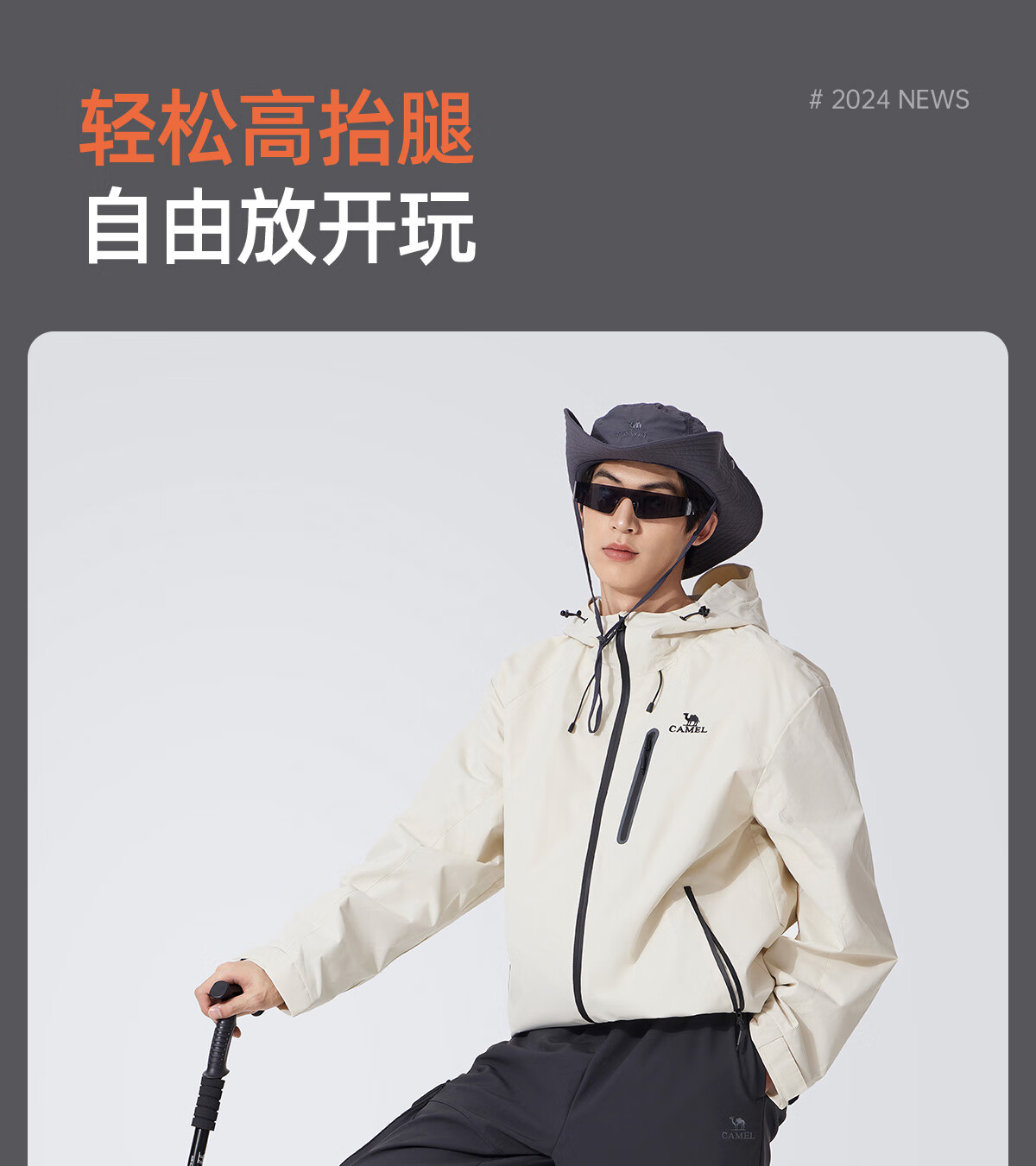 骆驼(CAMEL)冲锋衣硬壳单层男女外套中性风三防登山服女士短外套
