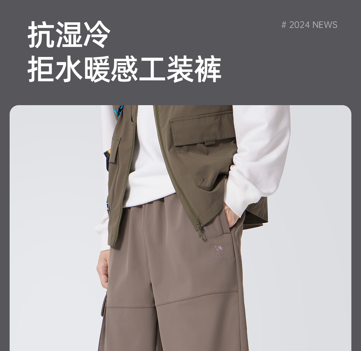骆驼(CAMEL)男装工装裤秋冬加绒保暖防泼水户外束脚休闲长裤子男M14CA66712