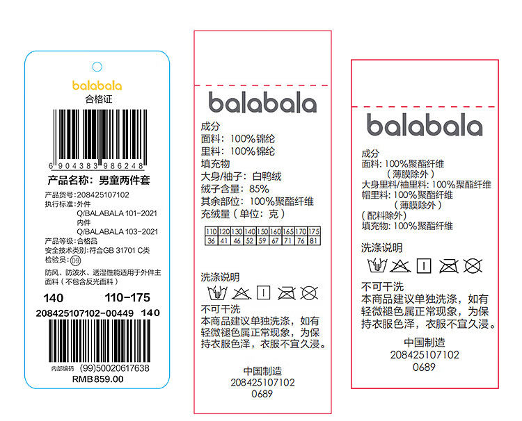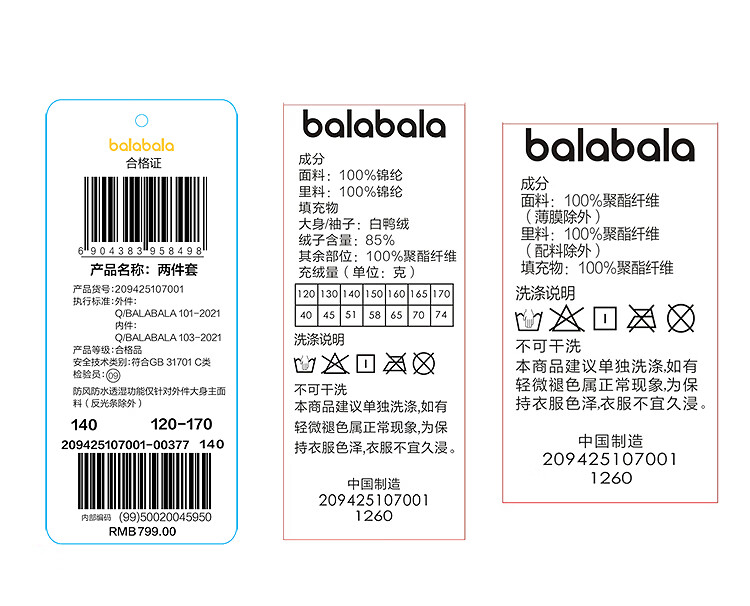 巴拉巴拉童装儿童羽绒服女童外套2025冬装加厚保暖防护两件套209425107001
