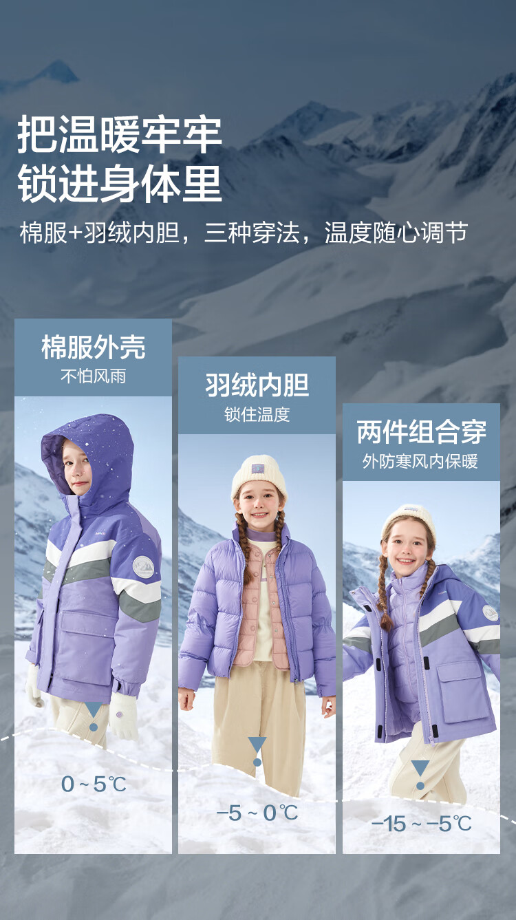 迷你巴拉【三防】冬季新款男女童双面穿羽绒服保暖羽绒外套