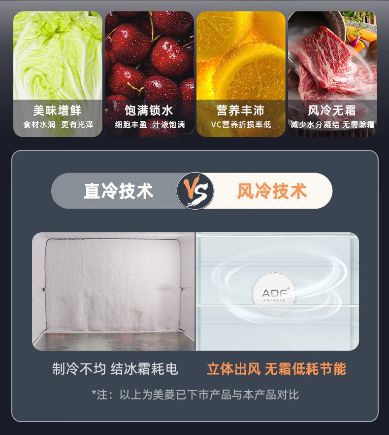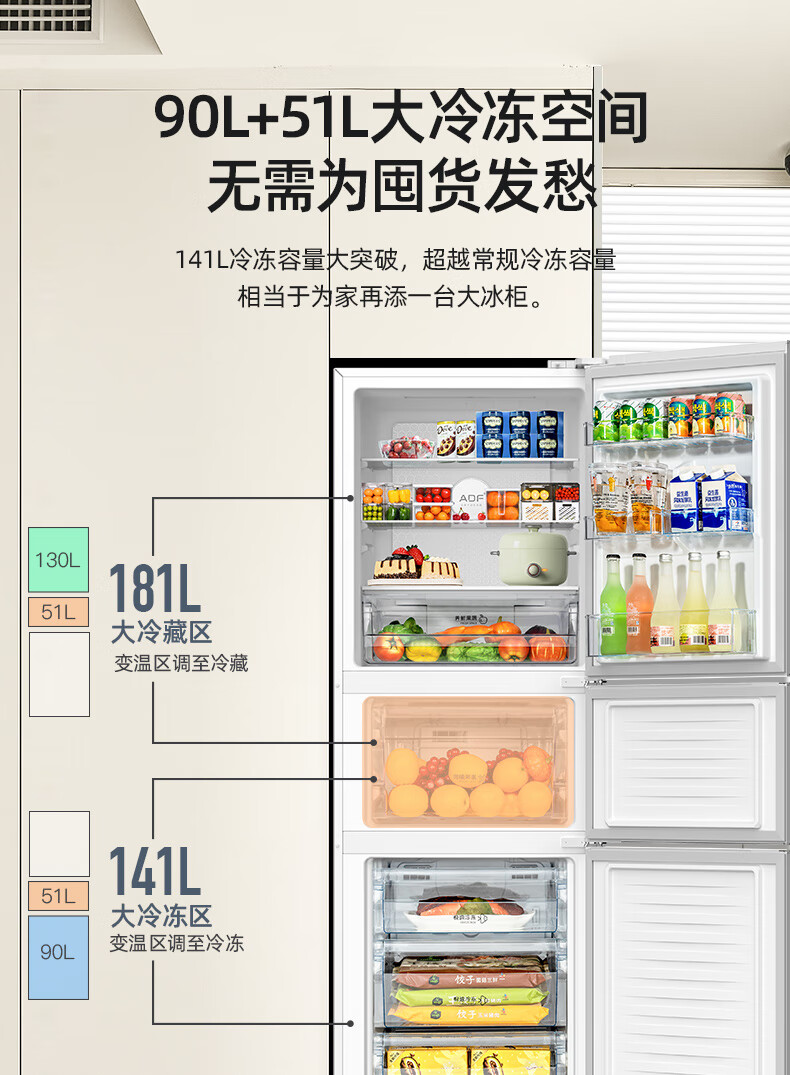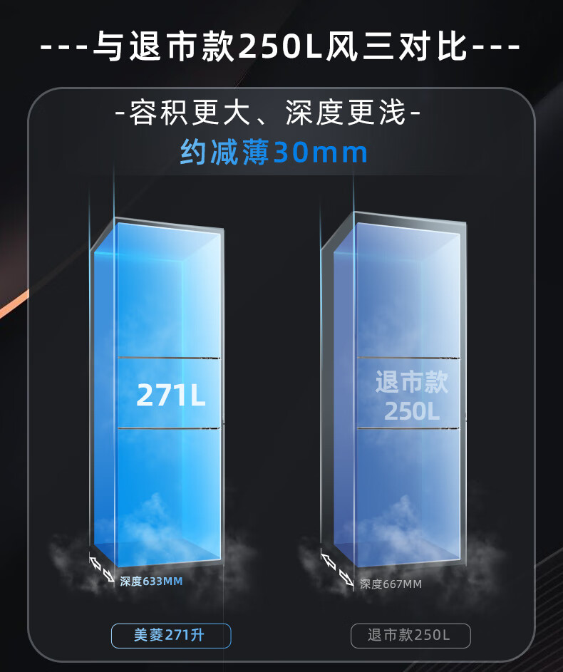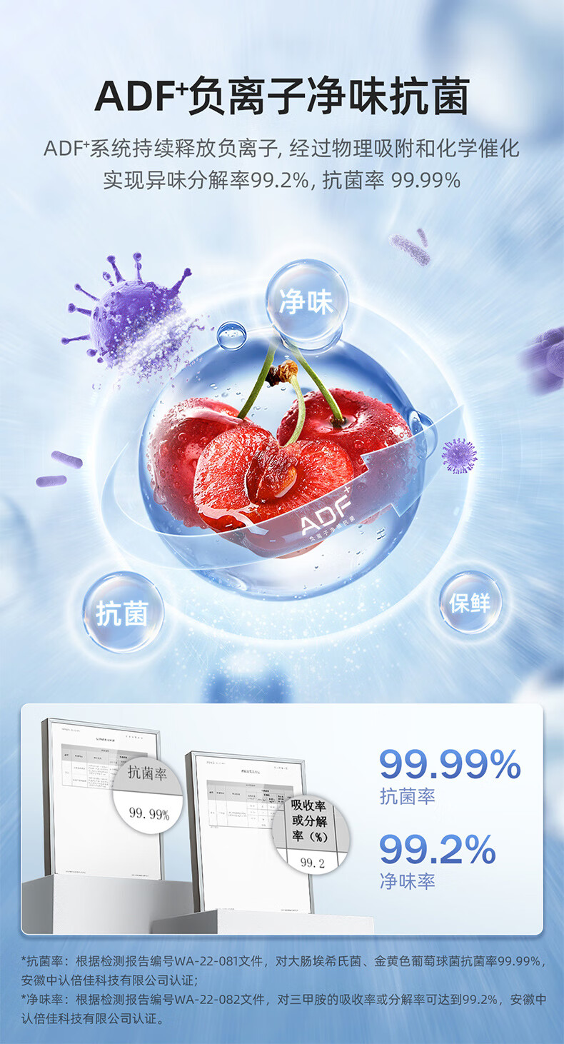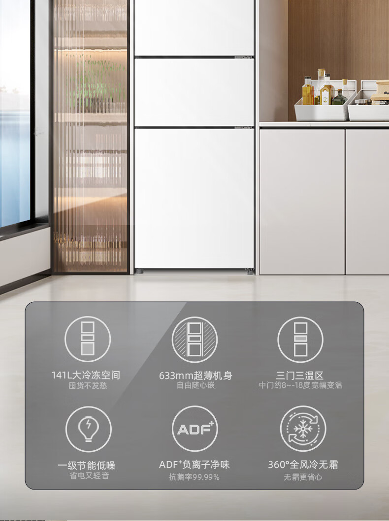 美菱(MeiLing)离子净271升三门冰箱三开门家用变频一级省电风冷无霜宿舍租房小户型冰箱BCD-271WP3CX白国家补贴