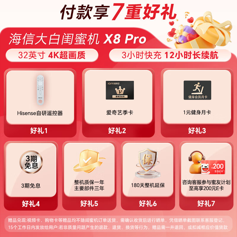 海信大白闺蜜机X8 Pro【国家补贴】32英寸4K 3h快充 12h长续航大平板 AI全新升级 智能交互 一屏多形态