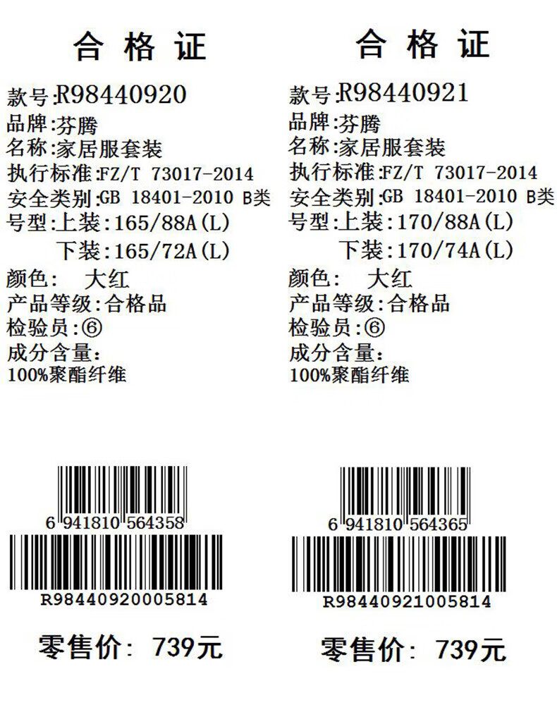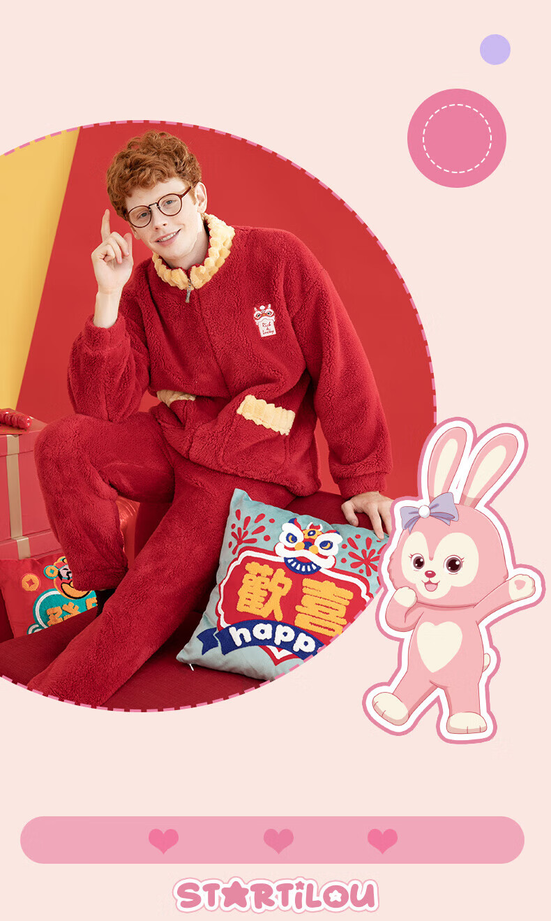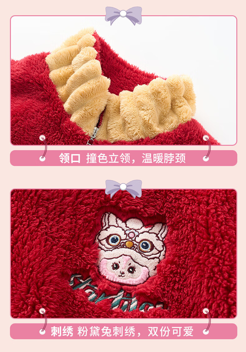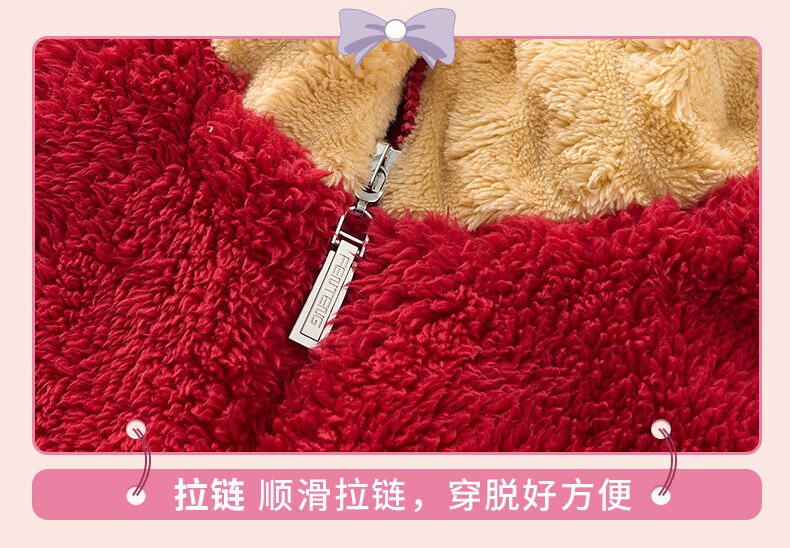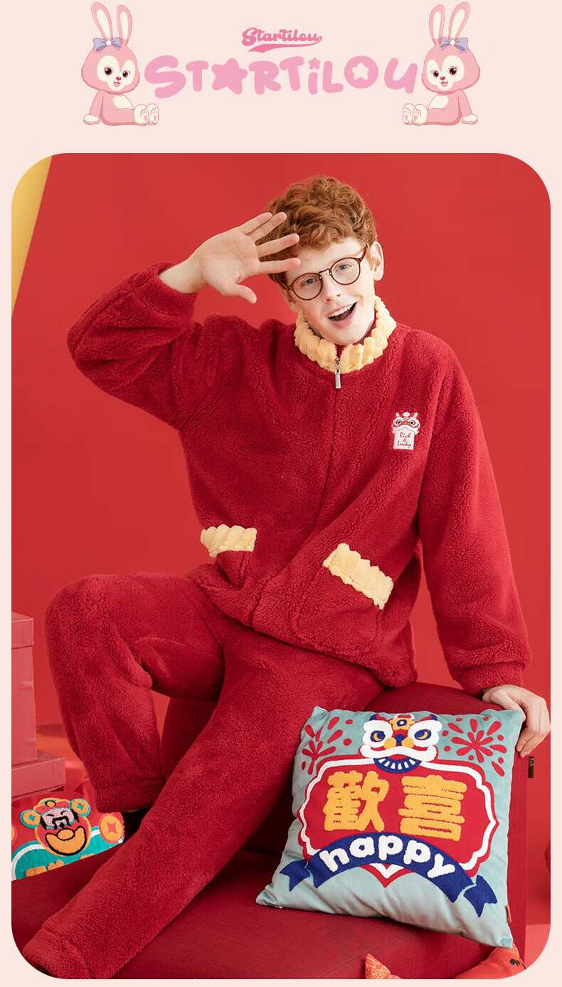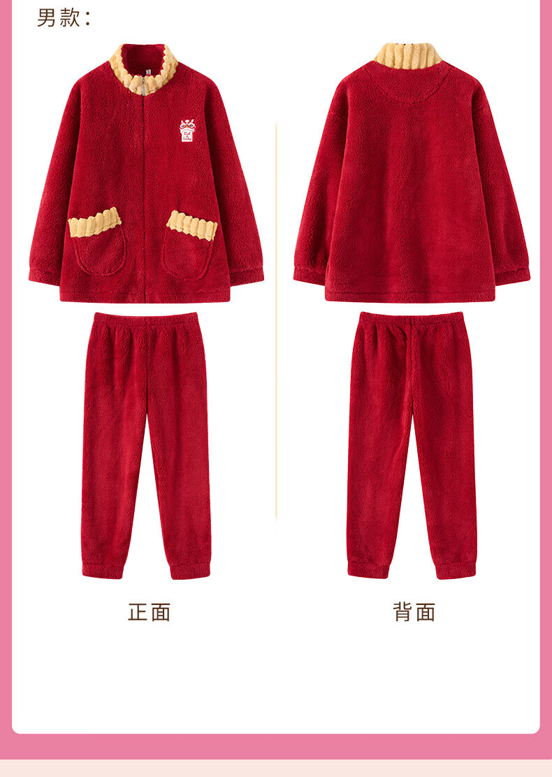 芬腾本命年蛇年秋冬喜庆立领南芙泡绒暖绒家居服套装 大红(女款) XL