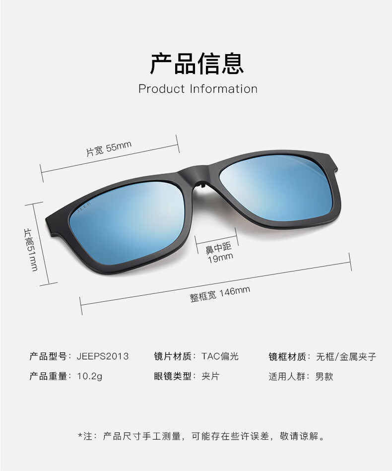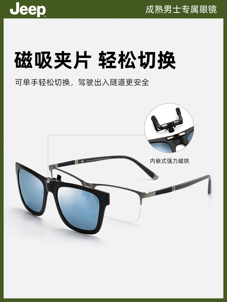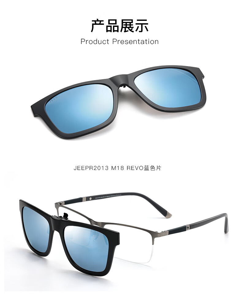 JEEPJEEP经典蓝金属夹片偏光太阳镜JSR2013-M18蓝片