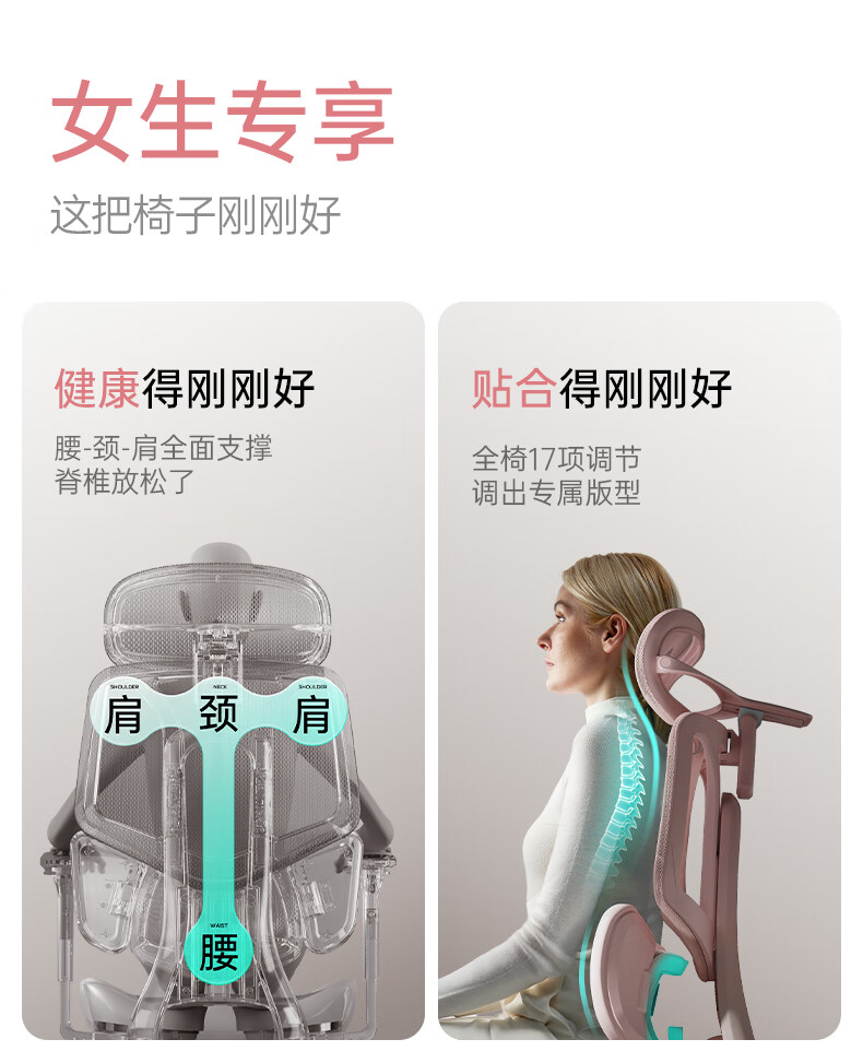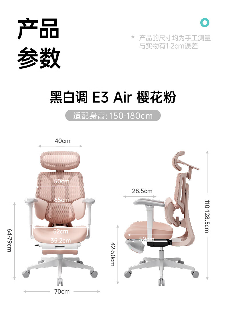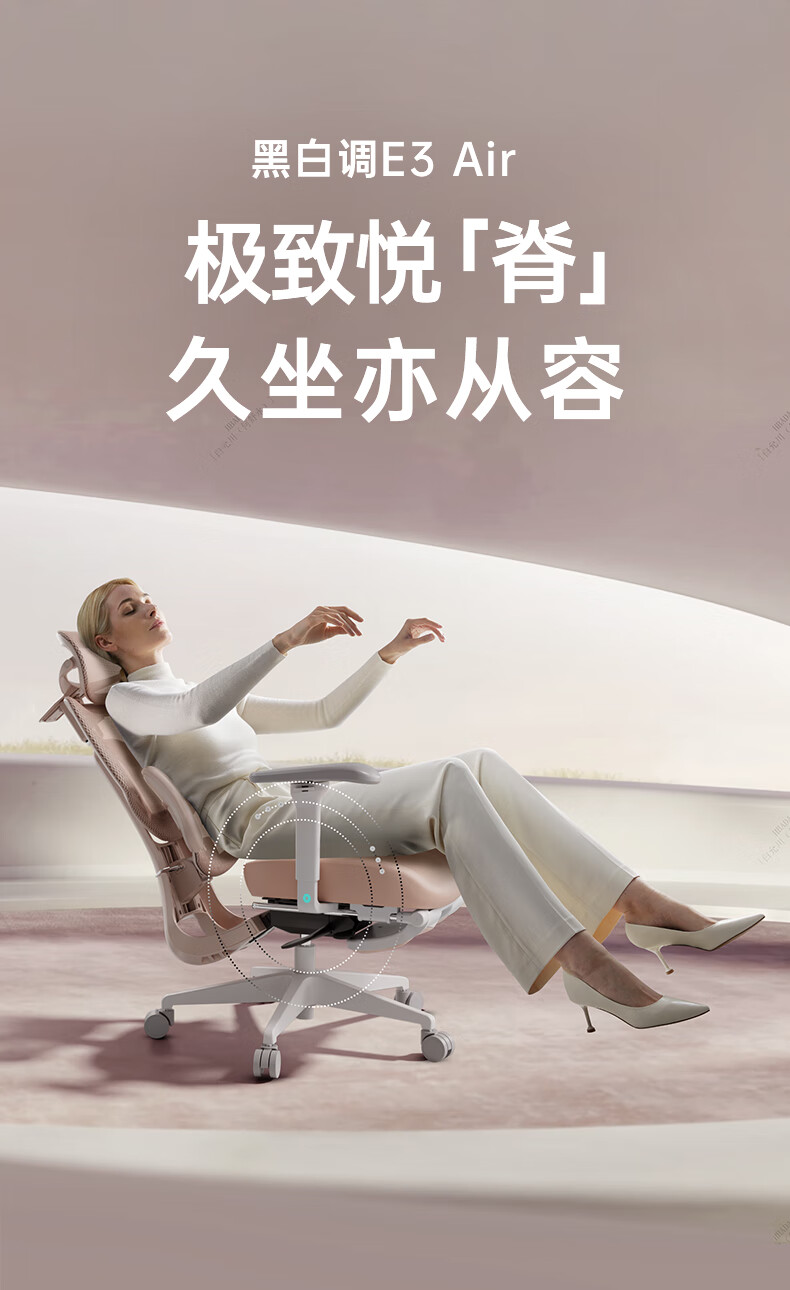 黑白调E3Air 樱花粉人体工学椅电脑椅子办公椅电竞椅人工力学座椅