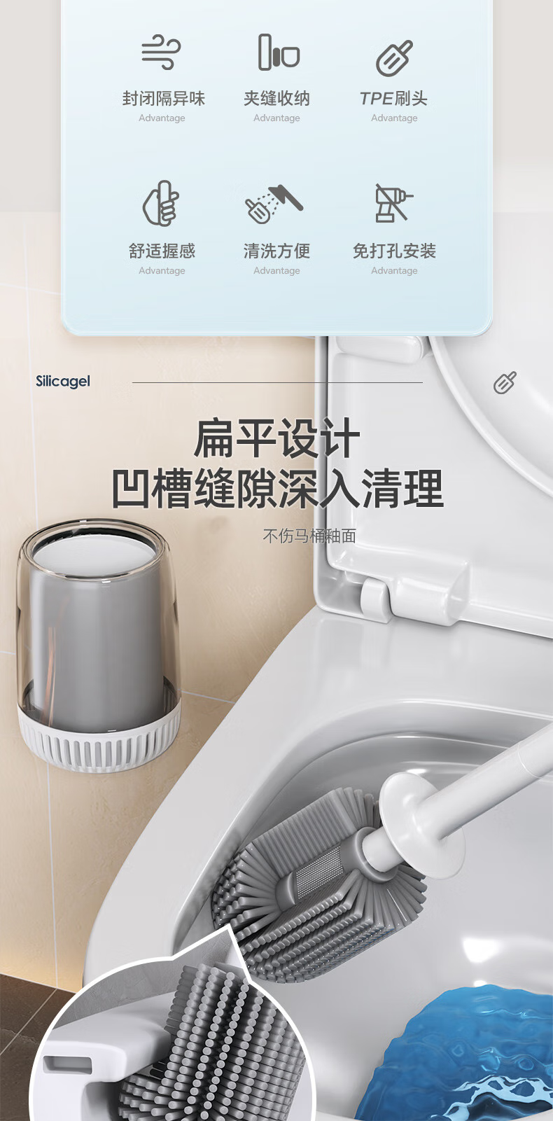 佳帮手马桶刷子套装免打孔卫生间清洁刷具浴室马桶清洁神器壁挂款